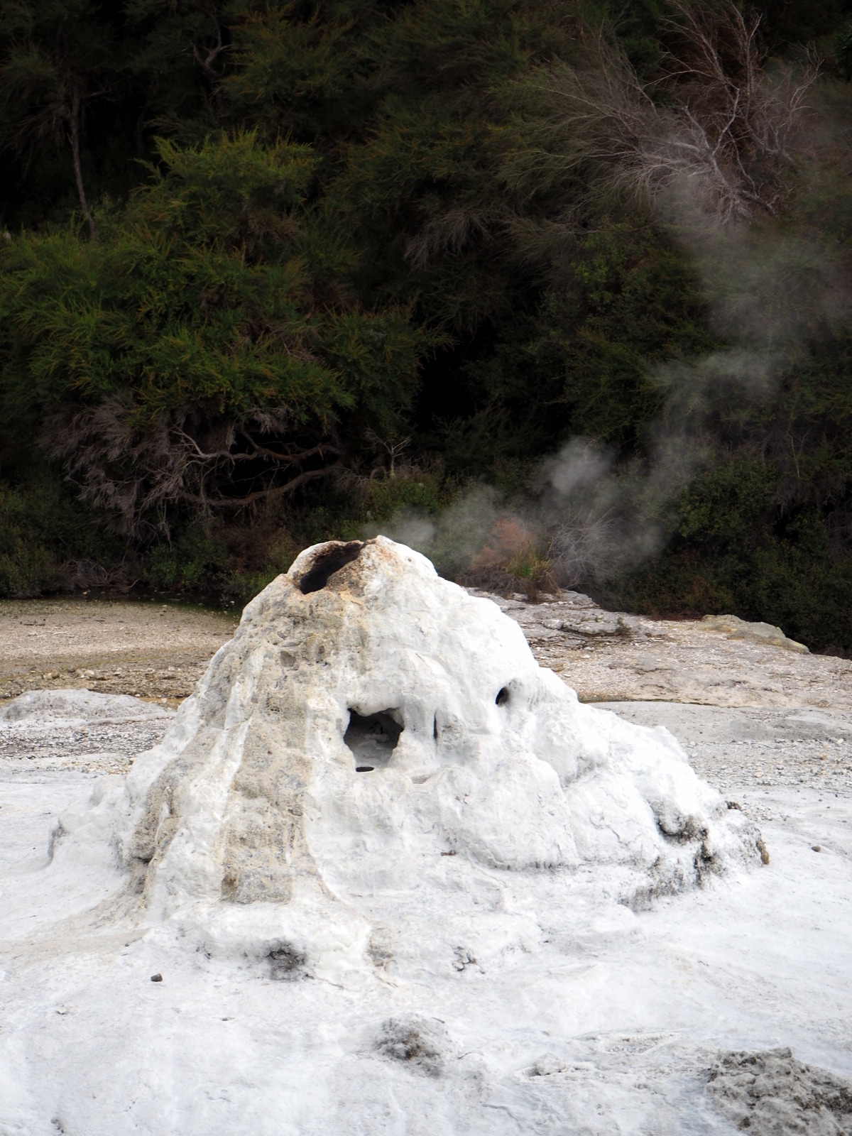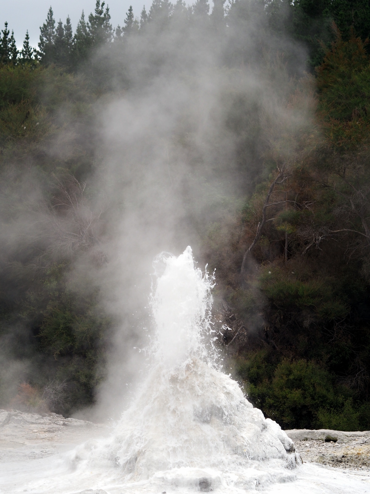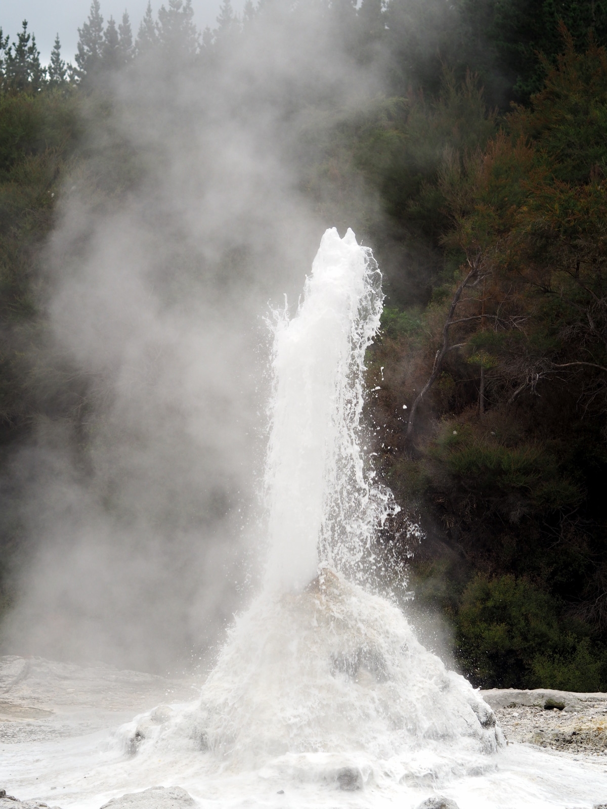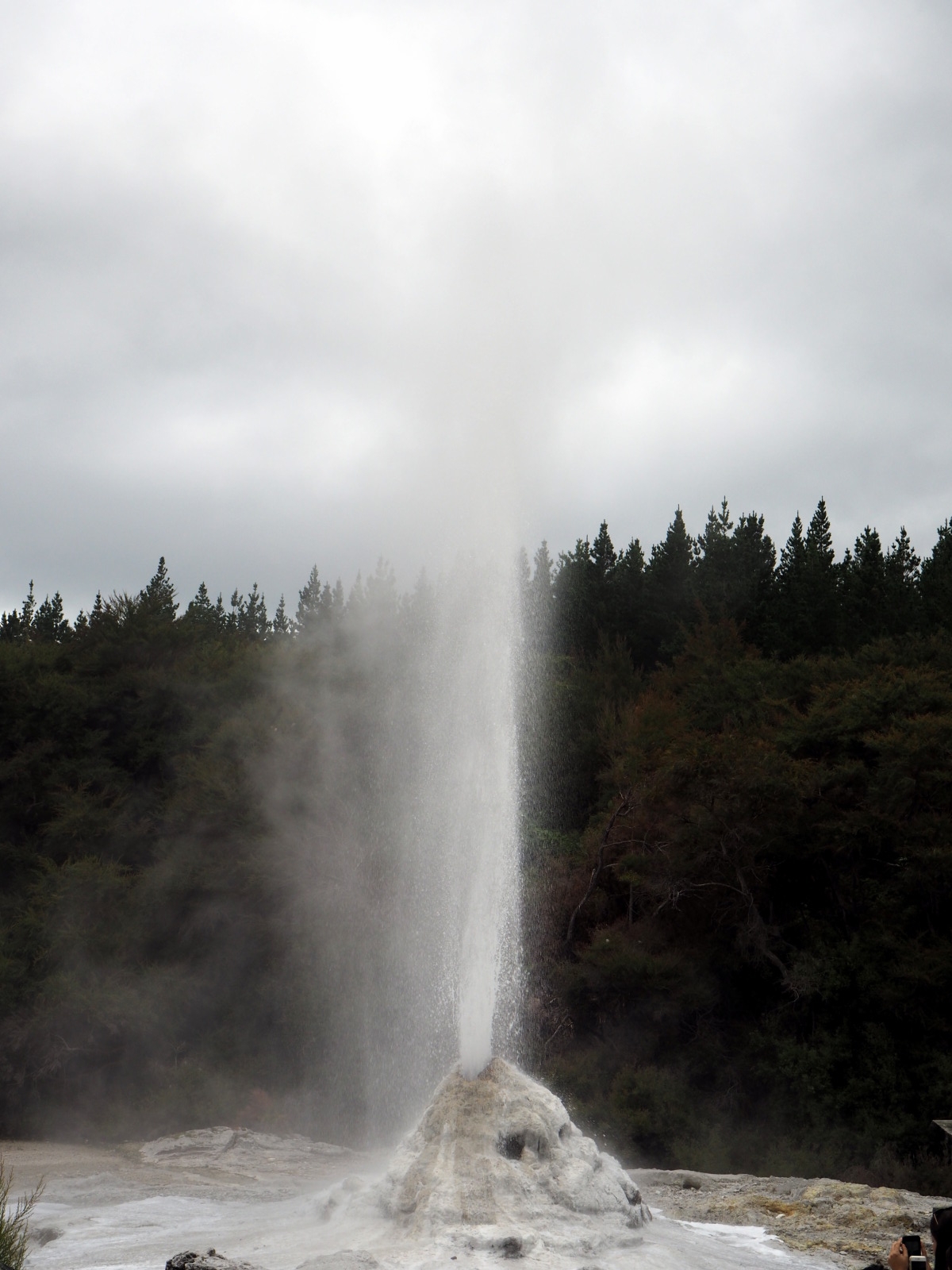A 10h15, le geyser « Lady knox » s’active. Ce geyser, naturel à la base, est « activé » pour les touristes à heure tapante, en mettant dans la bouche du cratère un composant chimique (à l’origine du savon, désormais un tensioactif biodégradable) qui vient rompre la tension superficielle de l’eau, ce qui fait « monter la mayo » ;) Le geyser crache alors durant plusieurs dizaines de minute.