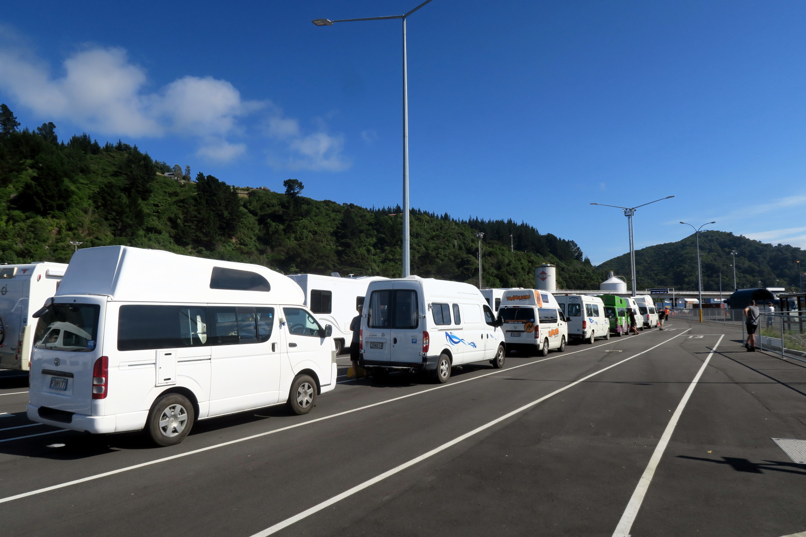 La différence entre un véhicule self-contained (« SC ») et non self-contained (« NSC ») est importante. Un self-contained dispose d’un réservoir d’eau fraîche, d’eau grise, et d’eau « noire » (des toilettes chimiques – nous on n’a pas touché aux nôtres…). Vérifiez bien que votre véhicule est certifié (NZS 5465:2001), car aux yeux du Ranger, il n’y a que ça qui compte (il faut avoir le logo autocollant sur la voiture). Il est par ailleurs prévu (pour 2018 ?) que cette certification soit rendue plus exigeante, notamment avec l’obligation de pouvoir utiliser les toilettes à l’intérieur du van.