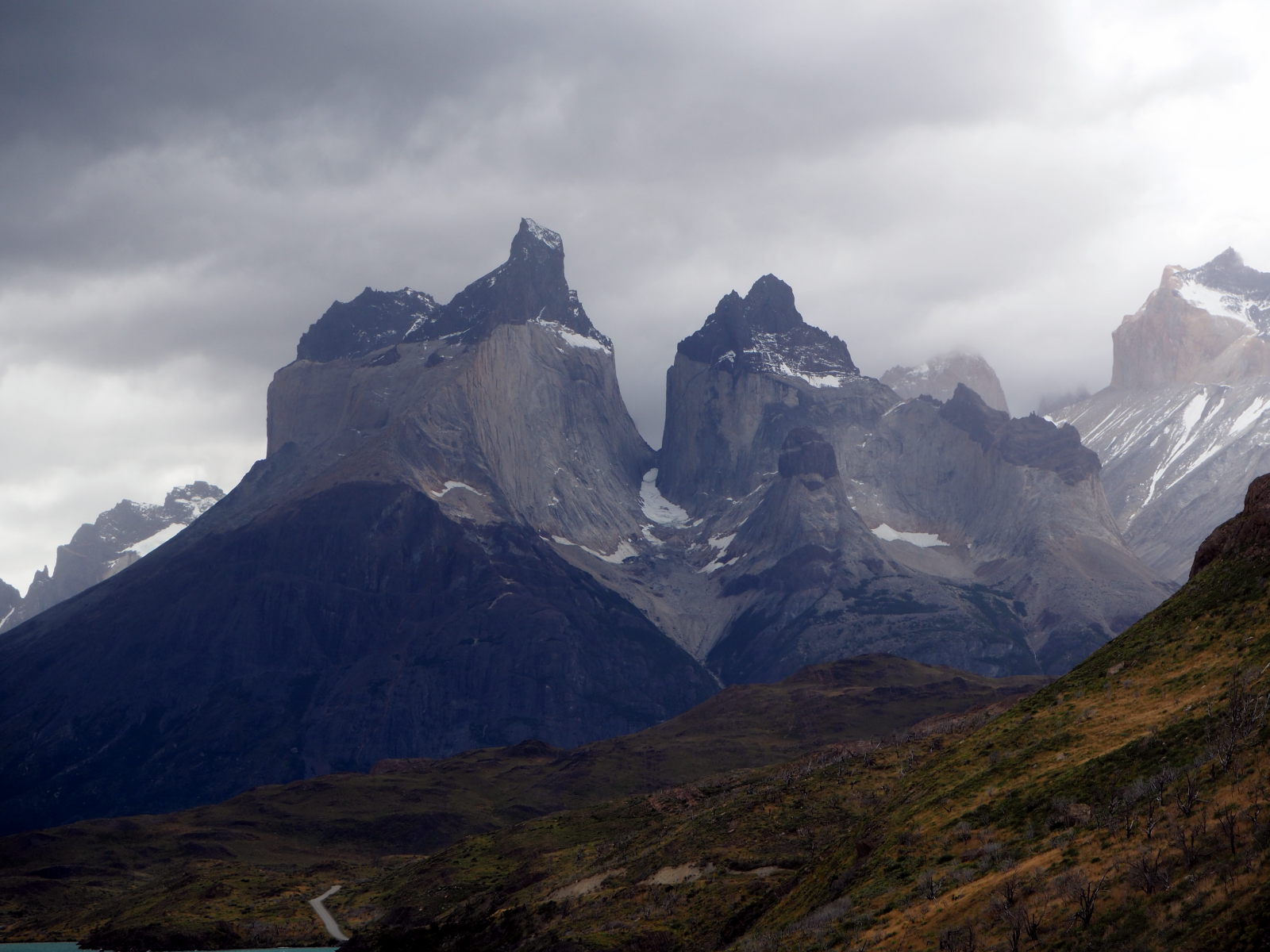 Puis à 13h30 nous avons repris le bus et avons beaucoup roulé pour finalement nous arrêter en « coup de vent » à 3 reprises pour faire des photos aux différents points de vue du parc. Dernier arrêt : la vue sur les Torres que nous avions vu la veille mais de plus près héhéhé, et cette fois-ci elles étaient entièrement sous la pluie et les nuages ! A 16h30, retour vers Puerto Natales.