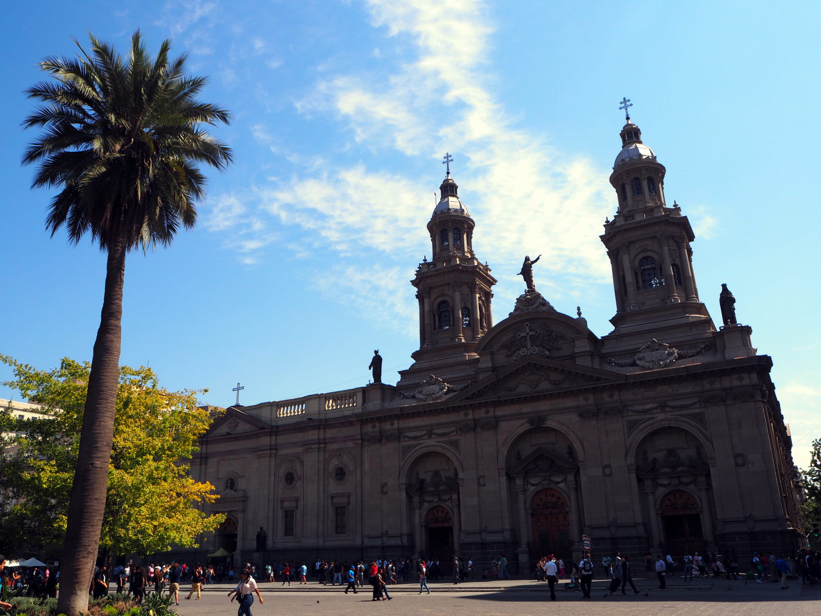 Départ au Museo Nacional de Bellas Artes. Fondé en 1880, c’est le premier musée au Chili, et l’un des plus anciens d’Amérique du Sud. Puis direction la magnifique Plaza de Armas. Celle-ci a été fondée en 1541 et est le berceau de la ville de Santiago. Autour on retrouve la Iglesia Catedral, le Palacio de la Real Audencia abritant le Museo historico nacional, la Municipalidad, le palais de l’archevêque et le monument aux peuples indigènes. C’est le cœur de la ville ici, toujours animé avec des marchands ambulants, des musiciens, des danseurs, des joueurs d’échecs, des cireurs de chaussures, des caricaturistes. La place est bien verte et abrite des jets d’eau.