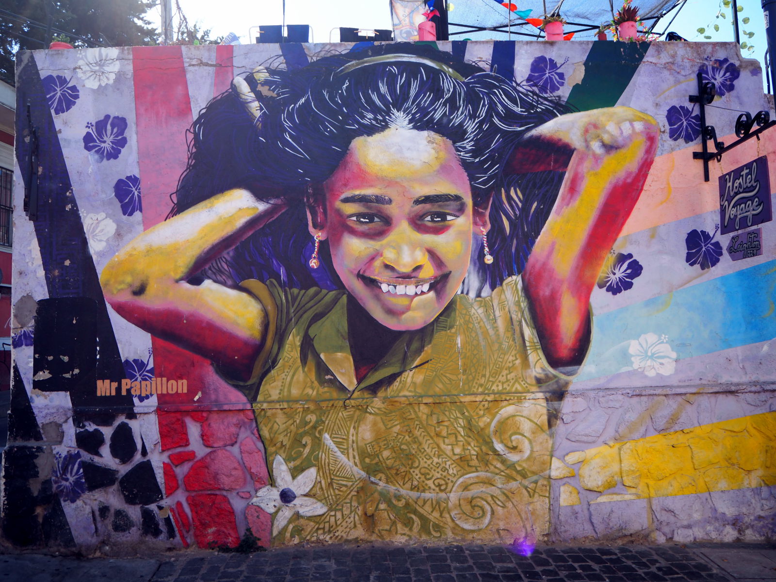 Nous n’avions encore jamais vu autant de graffitis dans les rues d’une seule et même ville. A chaque coins de rue, sur chaque mur il y a quelque chose de nouveau à découvrir. Il y a même des façades entières de bâtiments recouvertes de fresques ! Et ce ne sont pas des « tags » fait à la sauvette, ce sont de vraies œuvres d’art… Les mots “street art” prennent ici tout leurs sens. Du coup, chaque ballade dans les rues de Valparaiso en devient unique… On découvre toujours de nouveaux détails intéressants, une nouvelle peinture amusante.