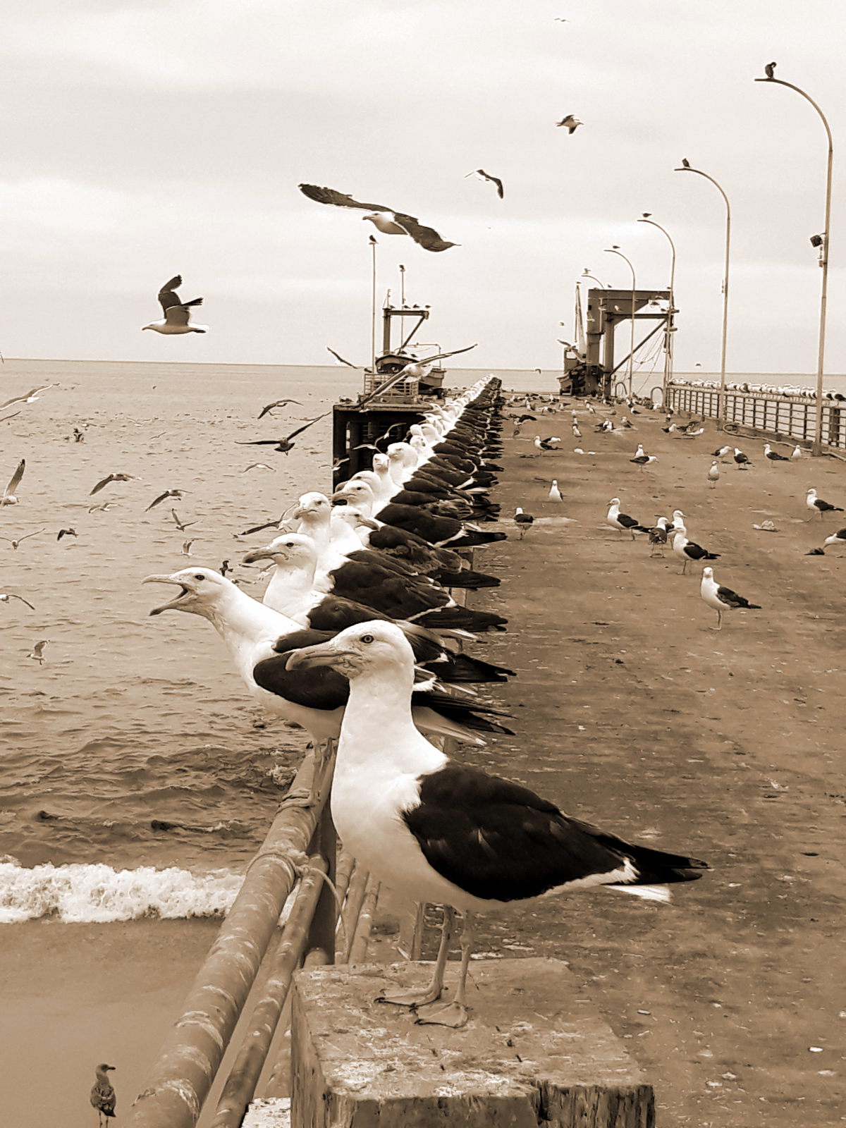 Le dernier jour, nous décidons d’aller faire un tour au port de pêche de Valparaiso, à 45 minutes à pied de là en direction de Vina Del Mar. La route n’est pas la plus agréable pour y aller mais la visite du marché des pêcheurs est très intéressante. Il est possible de déguster des Ceviches tout frais de la pêche, des oursins, des fruits de mer. Les pécheurs jettent leurs restes des poissons préparés, ce qui attire les pélicans, les mouettes et les lions de mer ! Un vrai spectacle !