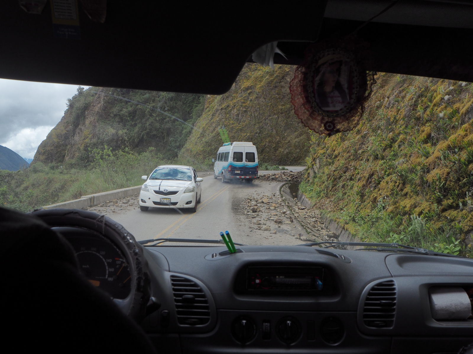 Au delà de la météo, la route est très sinueuse de Ollyntatambo à Santa Maria, puis la route se rétrécit et devient de la piste de Santa Maria à Hydroelectrica. En ajoutant à cela la conduite débile des chauffeurs, le tout donne un résultat relativement stressant.