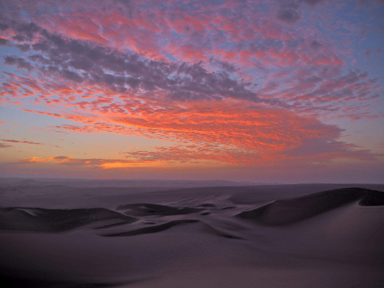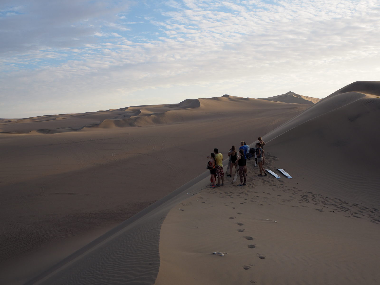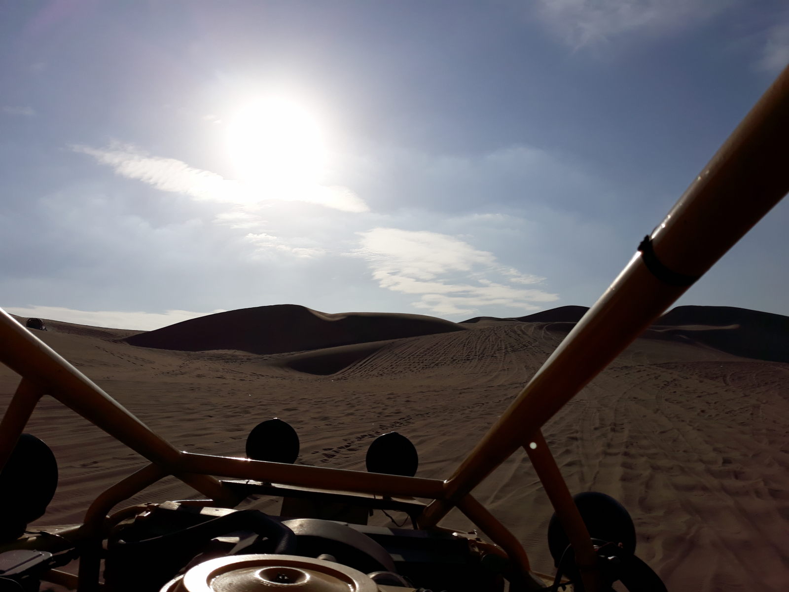 Nous avons testé le buggy et le sandboard (45 Sol pour 2 heures), avec départ en fin de journée pour assister au coucher du soleil. Et c’était génial ! Sensations fortes garanties… Les dunes sont tellement hautes que quand le buggy les redescendait, nous avions l’impression d’être dans un manège à la foire, avec les tripes et le cœur qui se soulèvent…