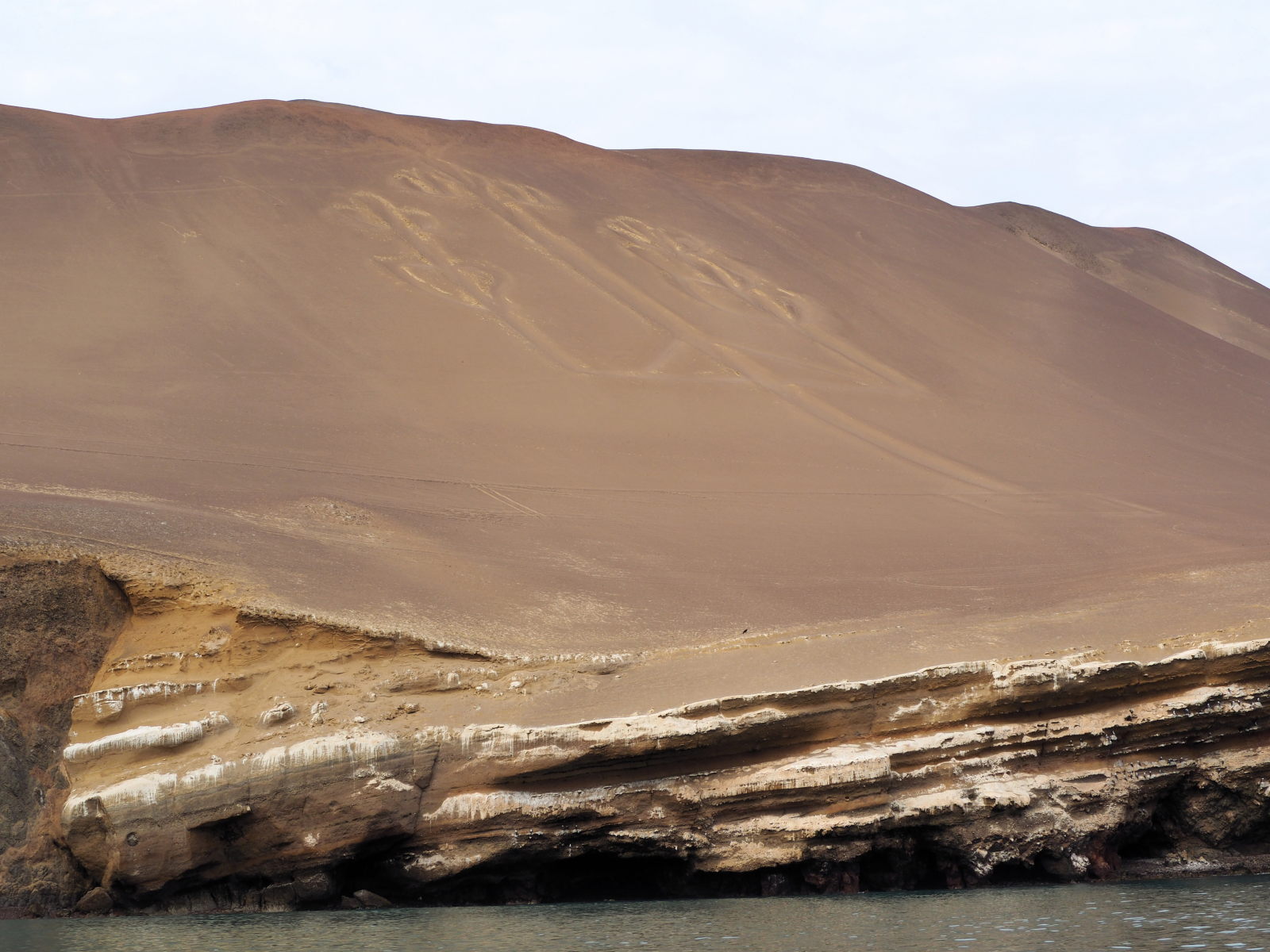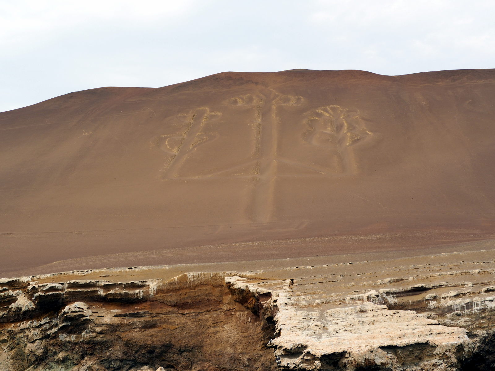 Sur la « route » du retour, on passe devant le fameux « Chandelier ». C’est un géoglyphe de grande dimension (un peu comme les lignes de Nazca), dont l’origine, l’ancienneté et la signification sont encore un mystère. Serait-ce la représentation d’un bâton de Viracocha, dieu de la mythologie inca et pré-inca ? Serait-ce le motif de l’arbre-monde mésoaméricain ? Toujours est-il que cette importante figure est observée uniquement depuis la mer, l’accès par la terre étant interdit.
