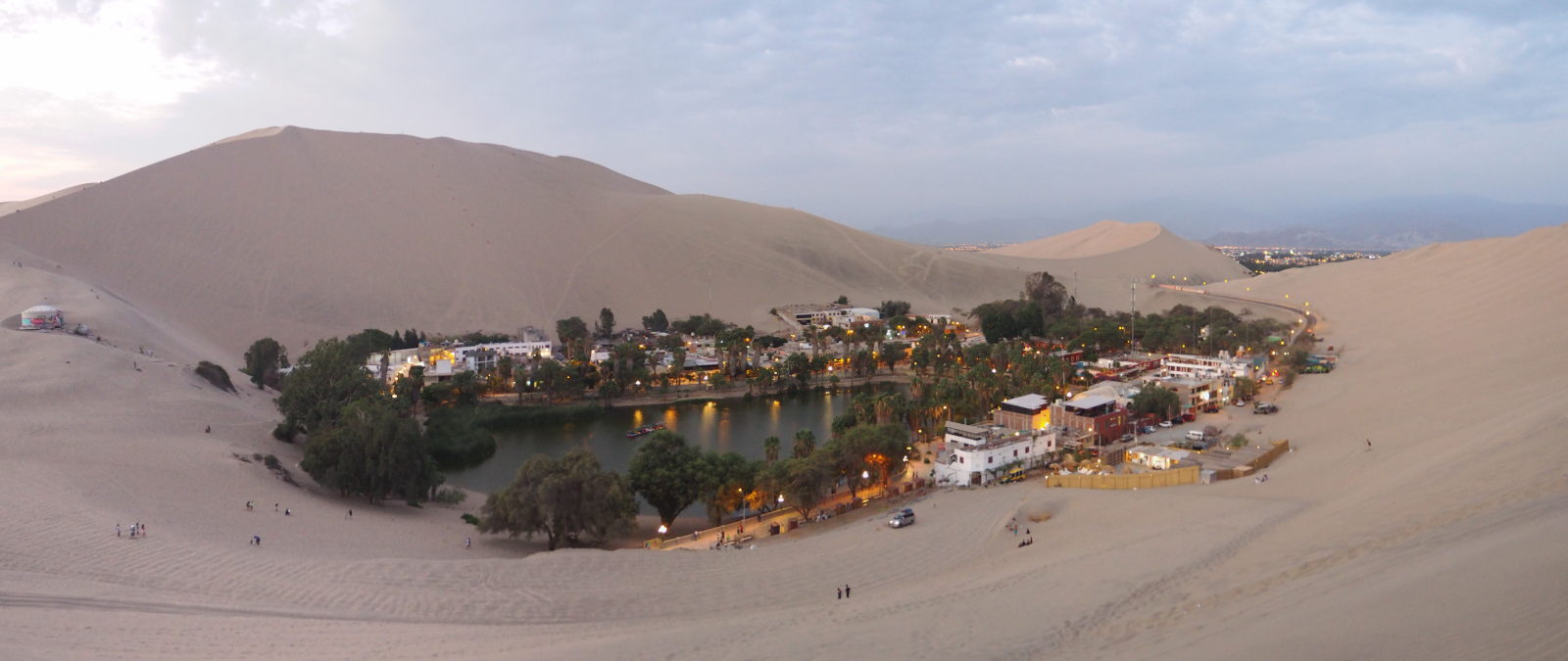 Située à quelques kilomètres seulement d’Ica, cette oasis est constituée uniquement d’hôtels, d’agences et de restaurants disposé autour d’un petit lac (dont les eaux sont polluées). Les activités principales sont d’aller se promener dans les dunes à bord de buggy, de pratiquer le sandboard et d’observer les couchers de soleil. Présenté comme cela, ce n’est pas très attractif on en convient. C’est d’ailleurs probablement pour cela que la plupart des personnes ne restent que 24h sur place.