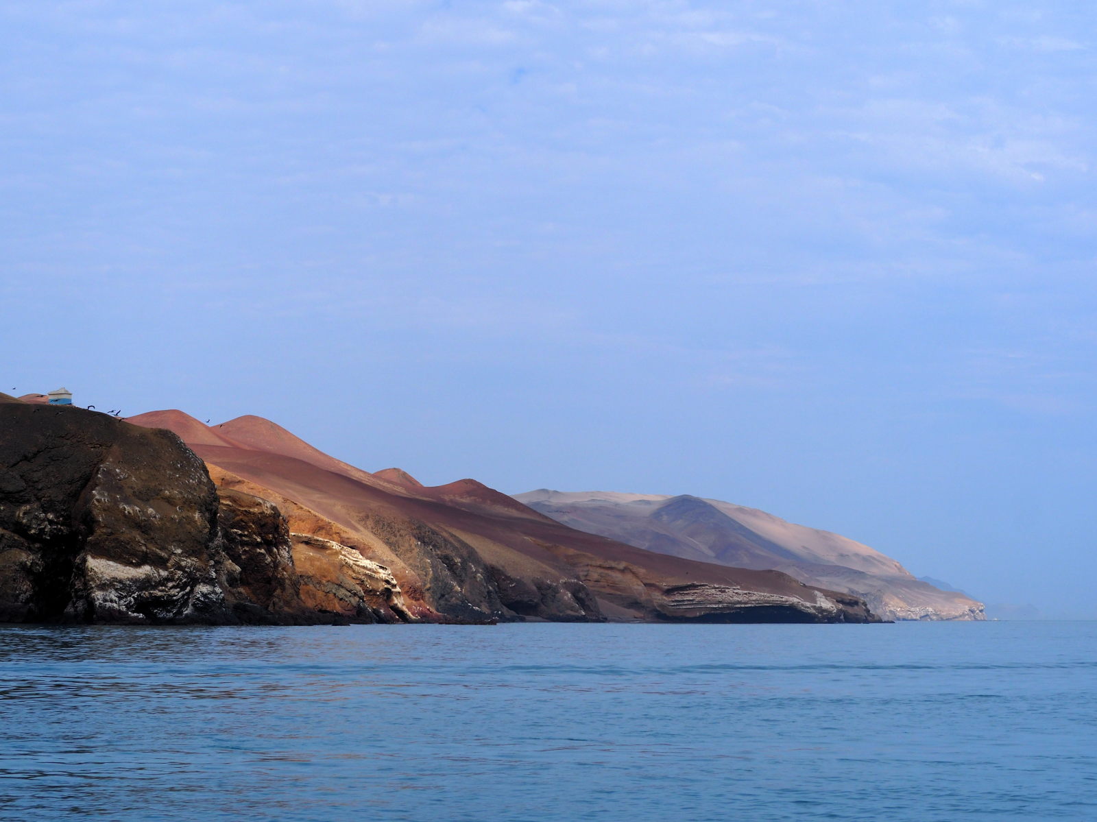 Les îles Ballestas sont situées à 40 minutes au large de Paracas, et sont connues pour leur… guano ! (vous commencez à en sentir l’odeur là ?) Car le guano (du quechua wanu, excrément) est un des meilleurs engrais « organiques » au monde. C’est encore ce fameux courant de Humboldt qui attire plancton, poissons, et des oiseaux donc ! Et comme ils se remplissent bien la panse, et que le climat désertique ne produit pas de pluie susceptible de « laver » le guano, et bien vous obtenez un joli tas de merde qui se vend à prix d’or !