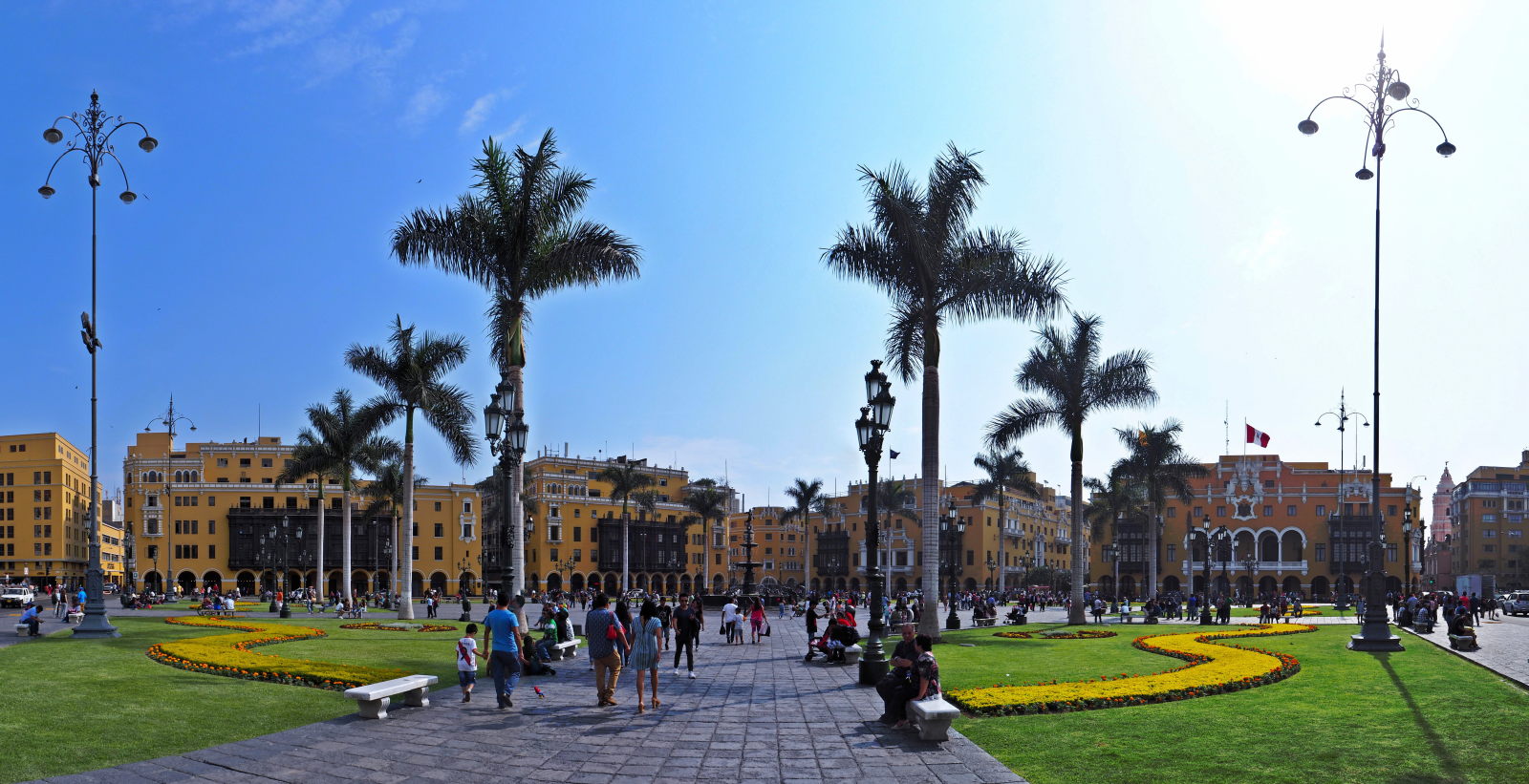 La Plaza Major a été entièrement rénovée en 1997 et est entourée de bâtiments néocoloniaux tels que la Municipalidad, le Palacio de Gobierno (la résidence du Président), ainsi que la cathédrale collée au superbe palais de l’archevêché (Palacio Arzobispal).