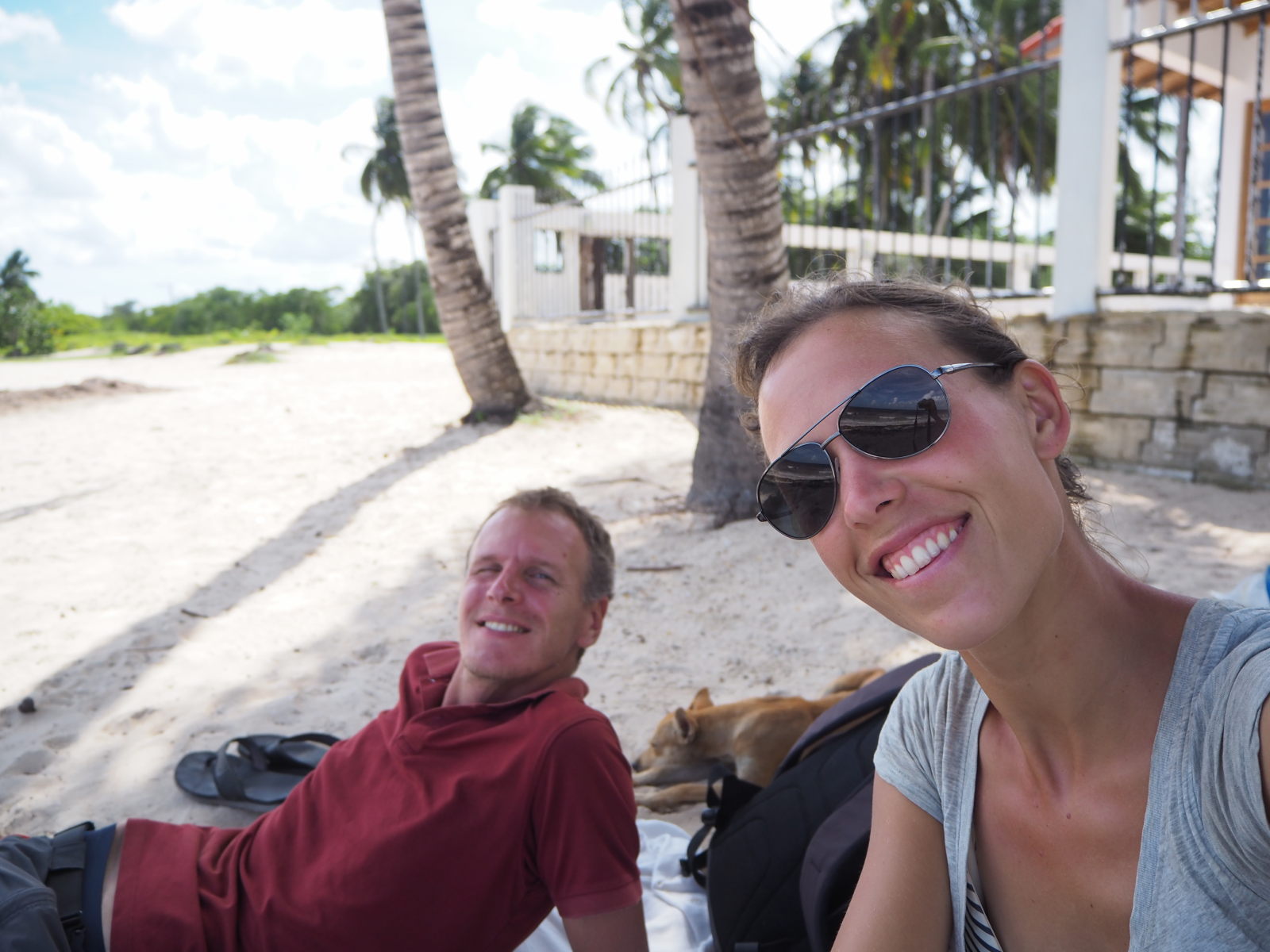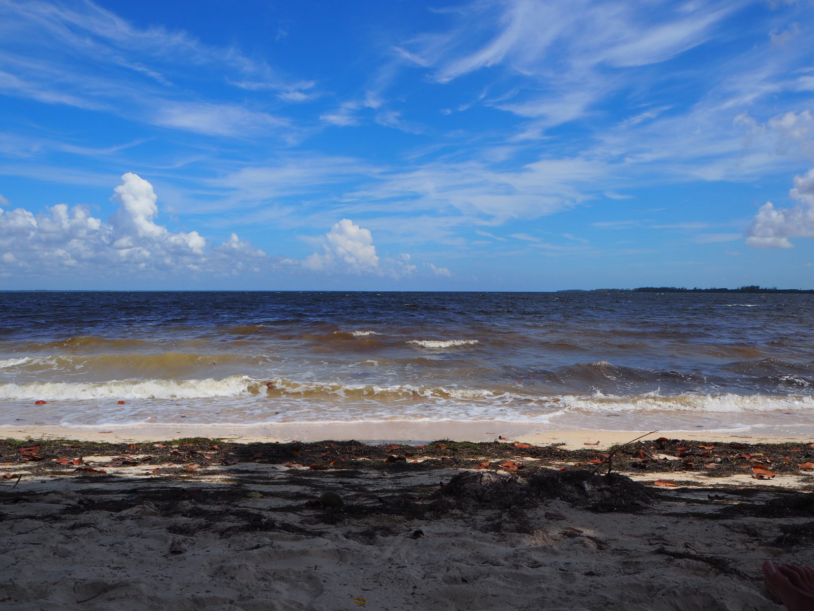 La plage est loin d’être paradisiaque avec son eau trouble et ses algues, mais il faut faire quelques kilomètres pour arriver à une mer d’un bleu turquoise incroyable.