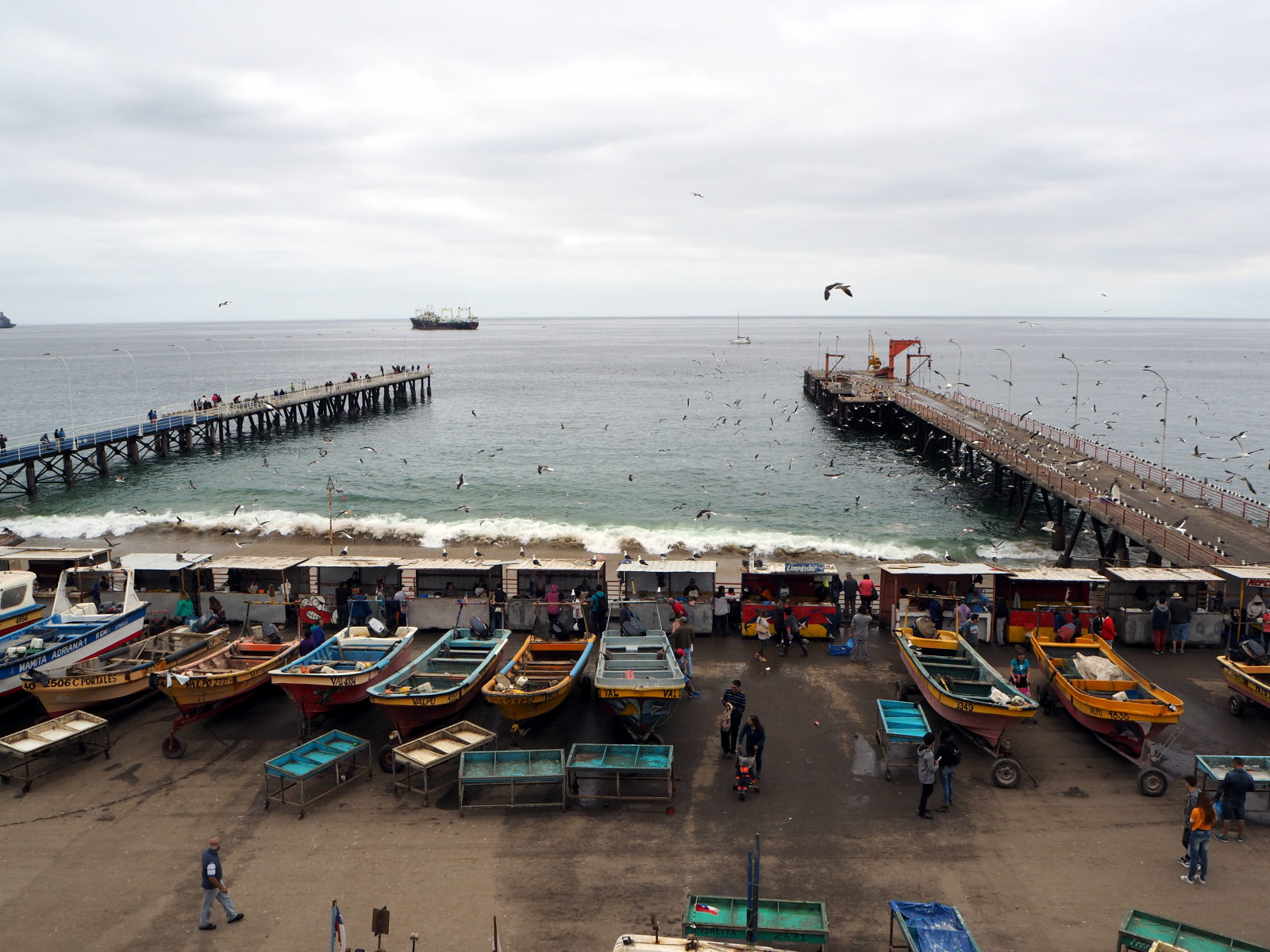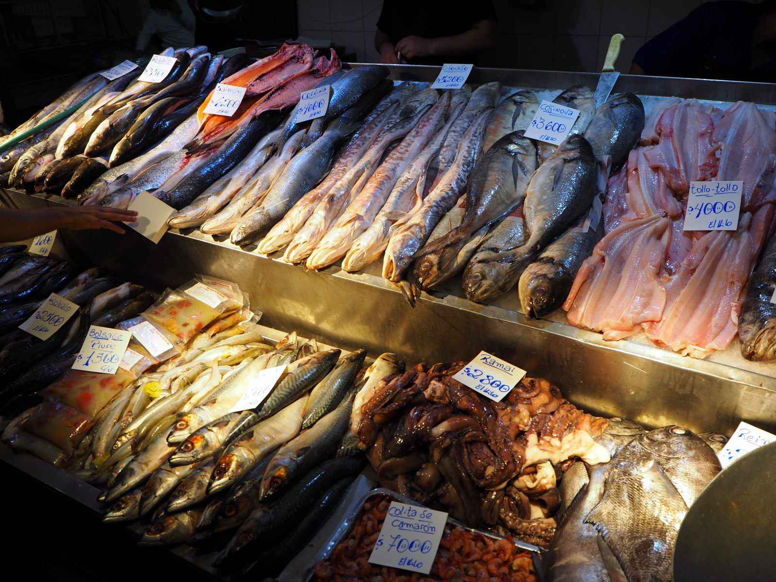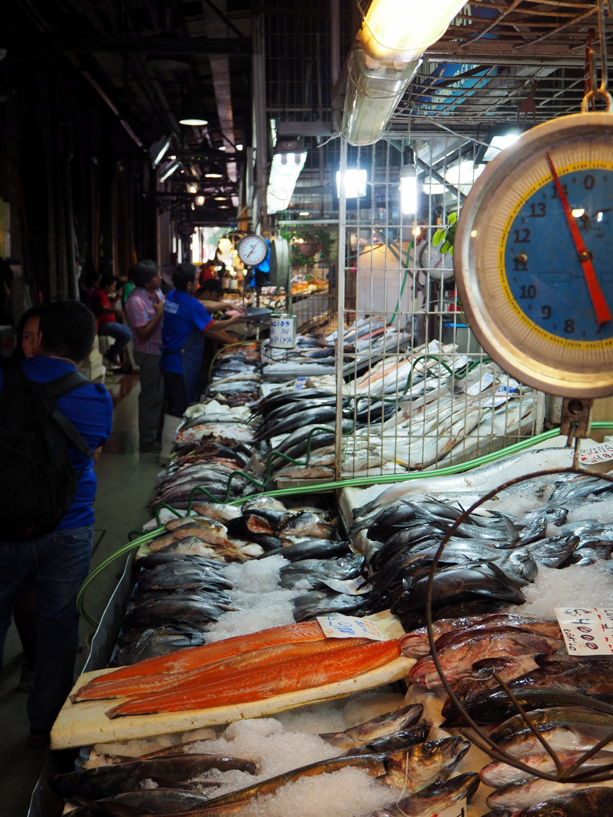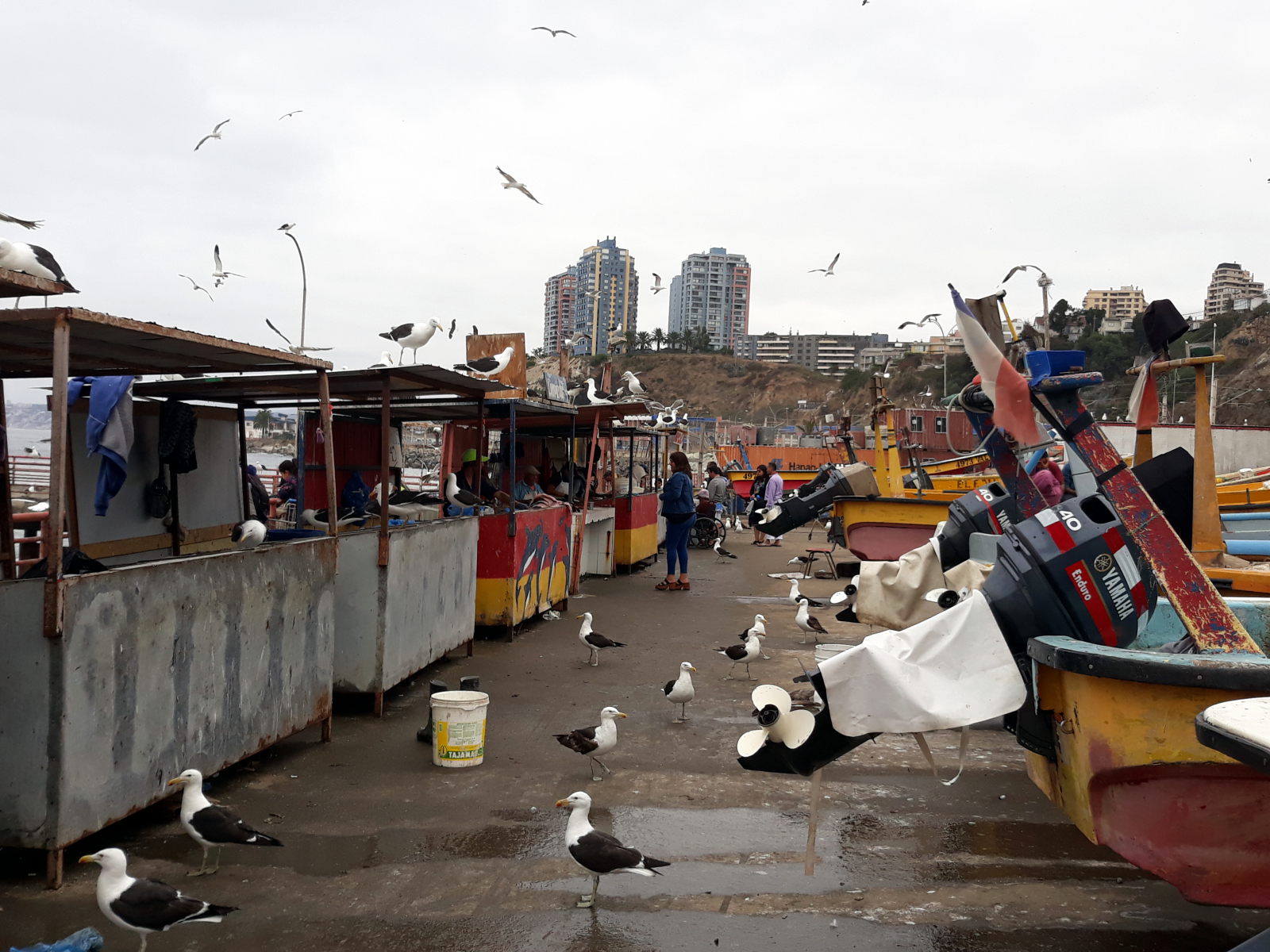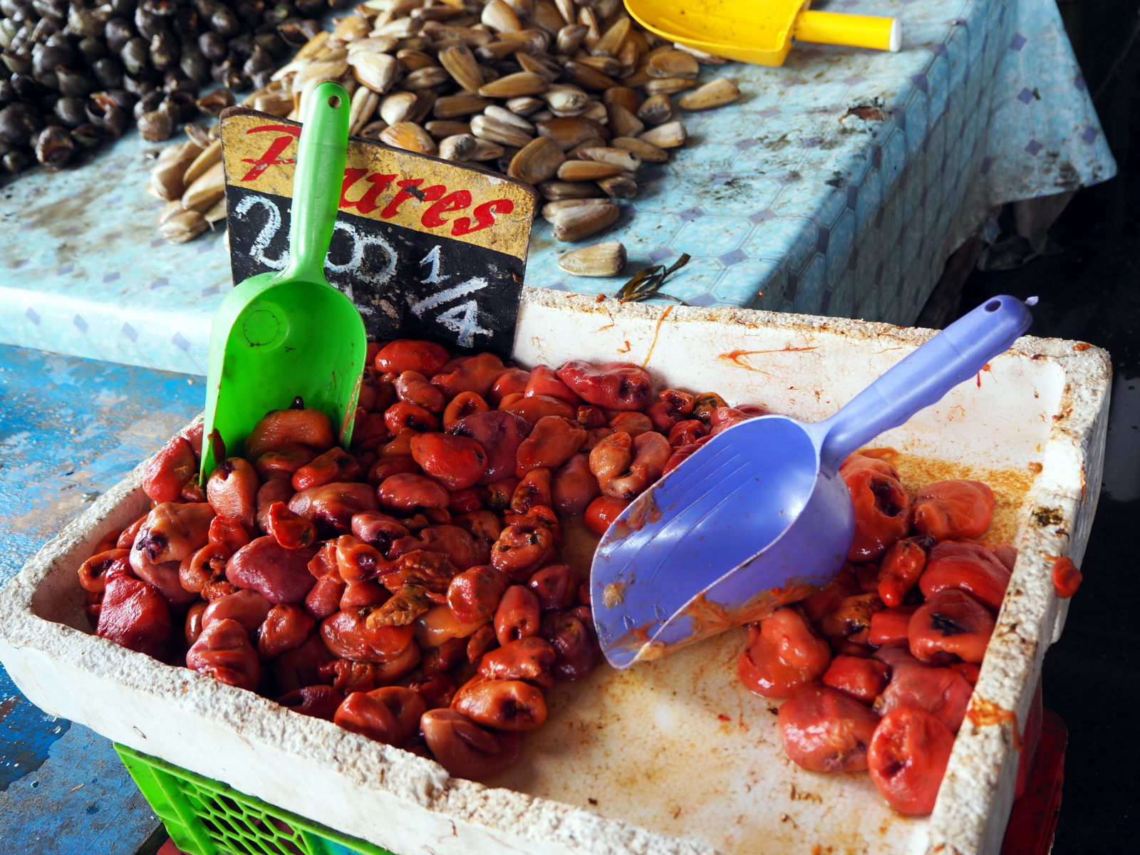 A la criée de Valparaiso, divers coquillages et fruits de mer en vente