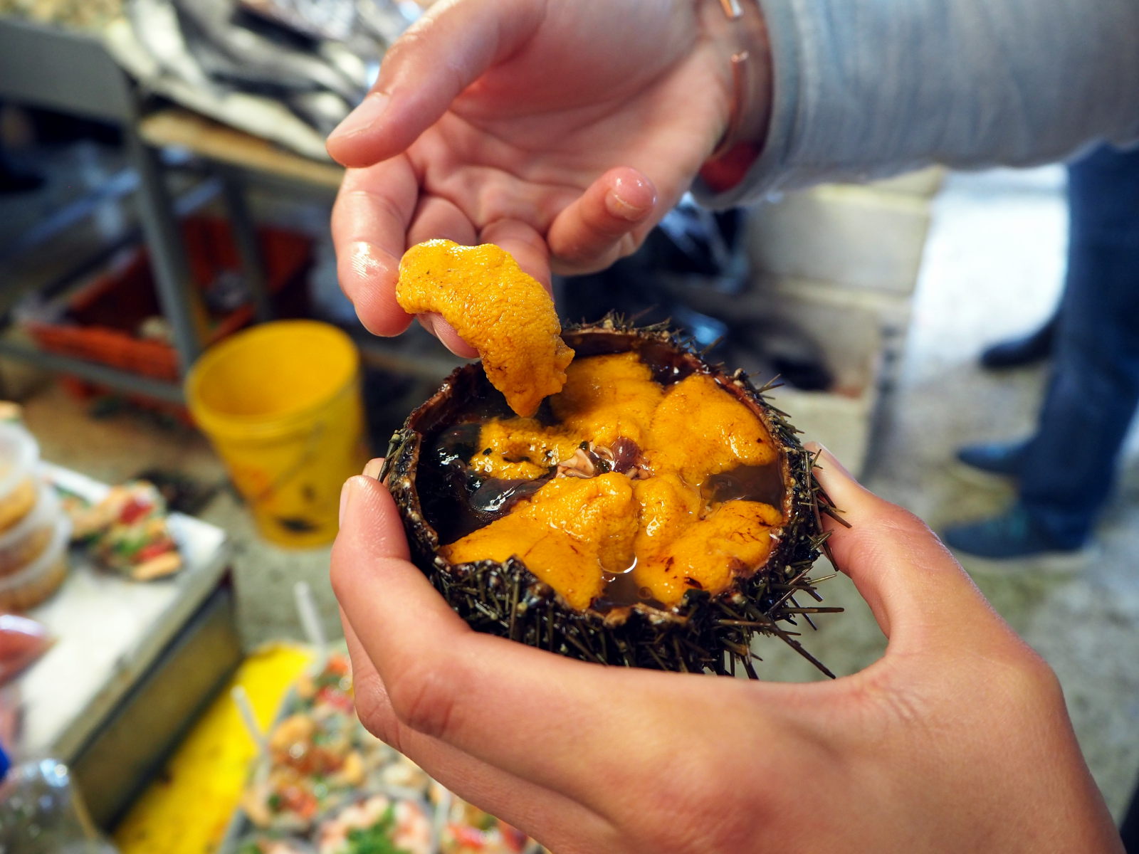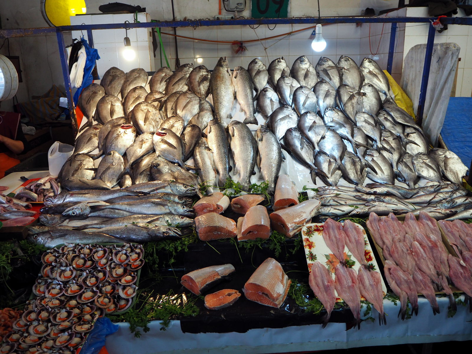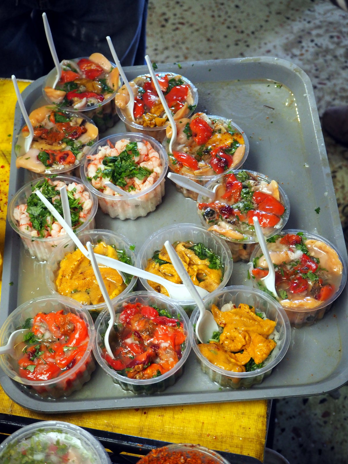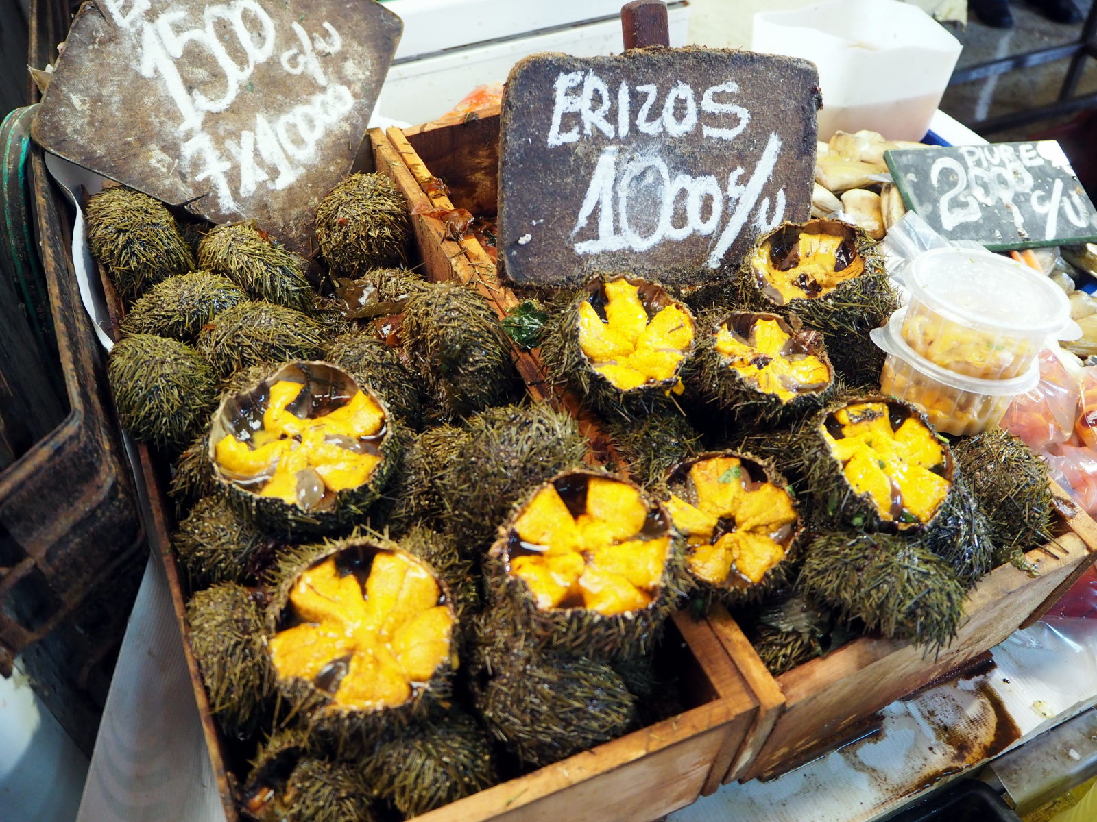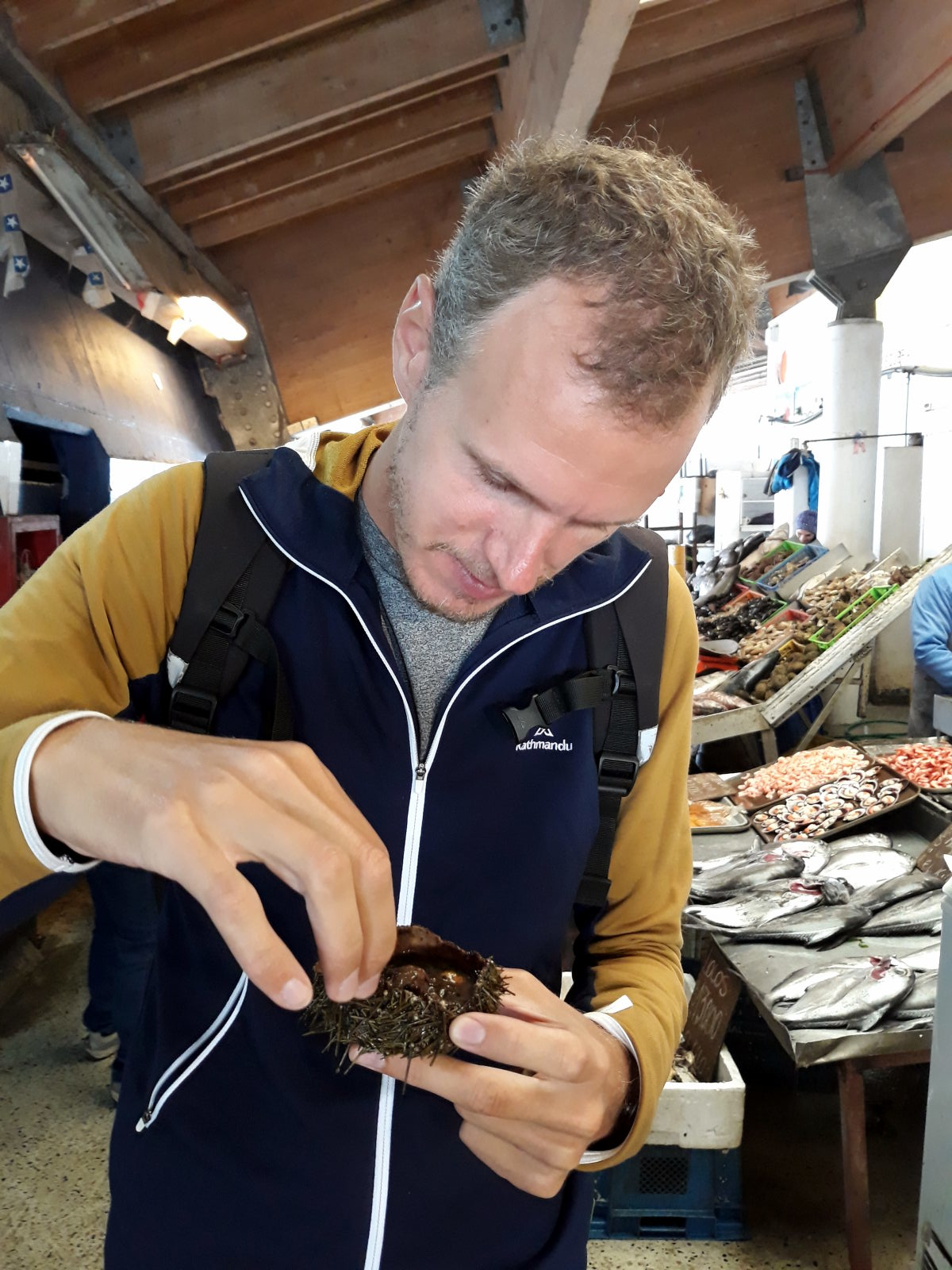 A la criée de Valparaiso, divers coquillages et fruits de mer en vente