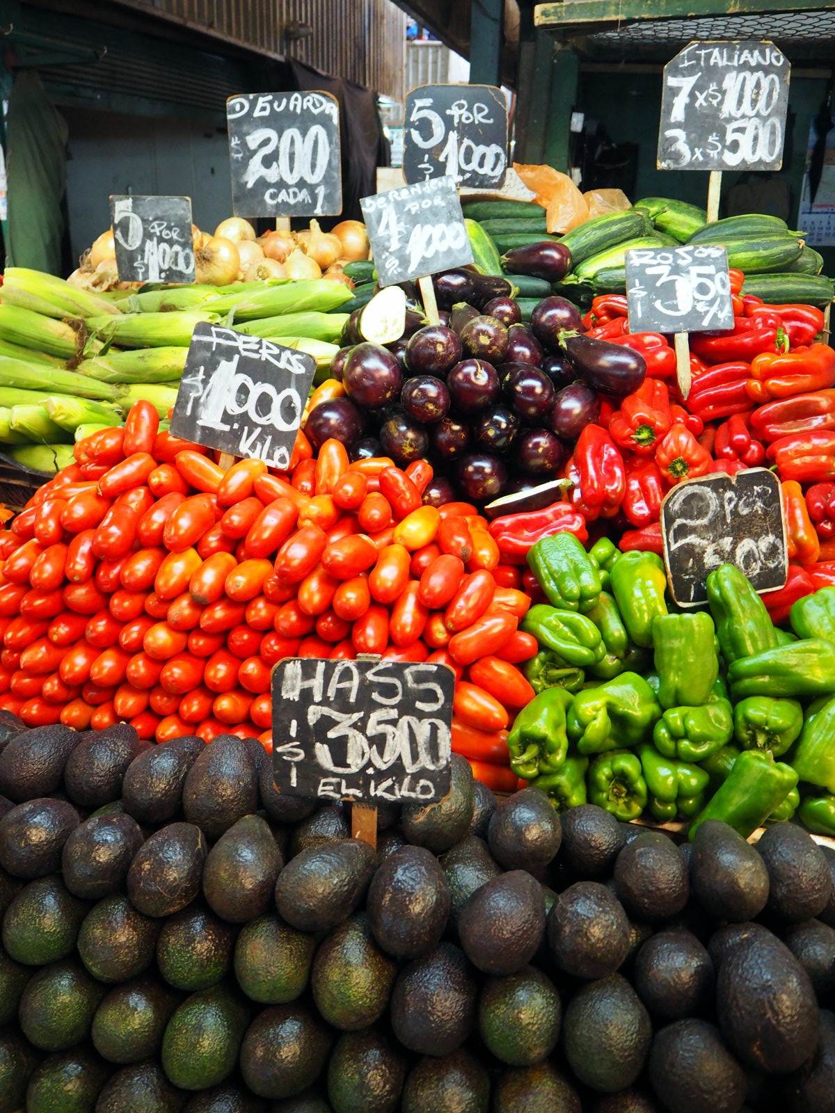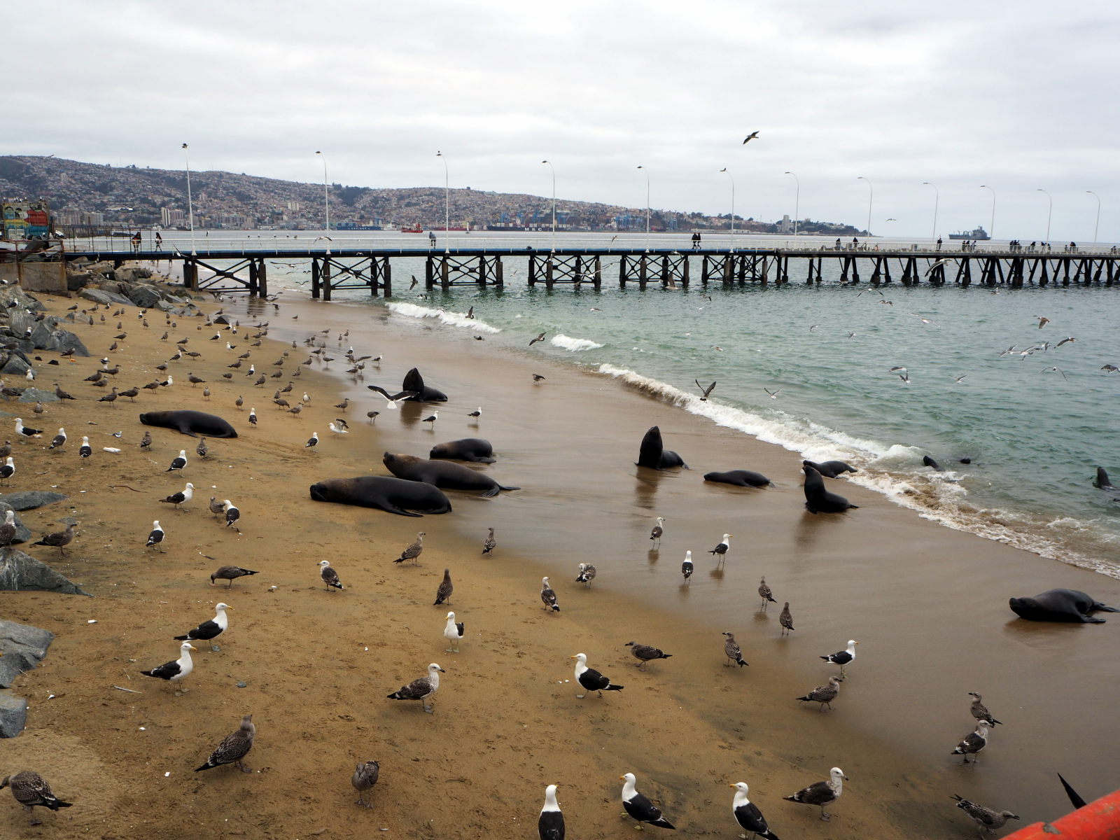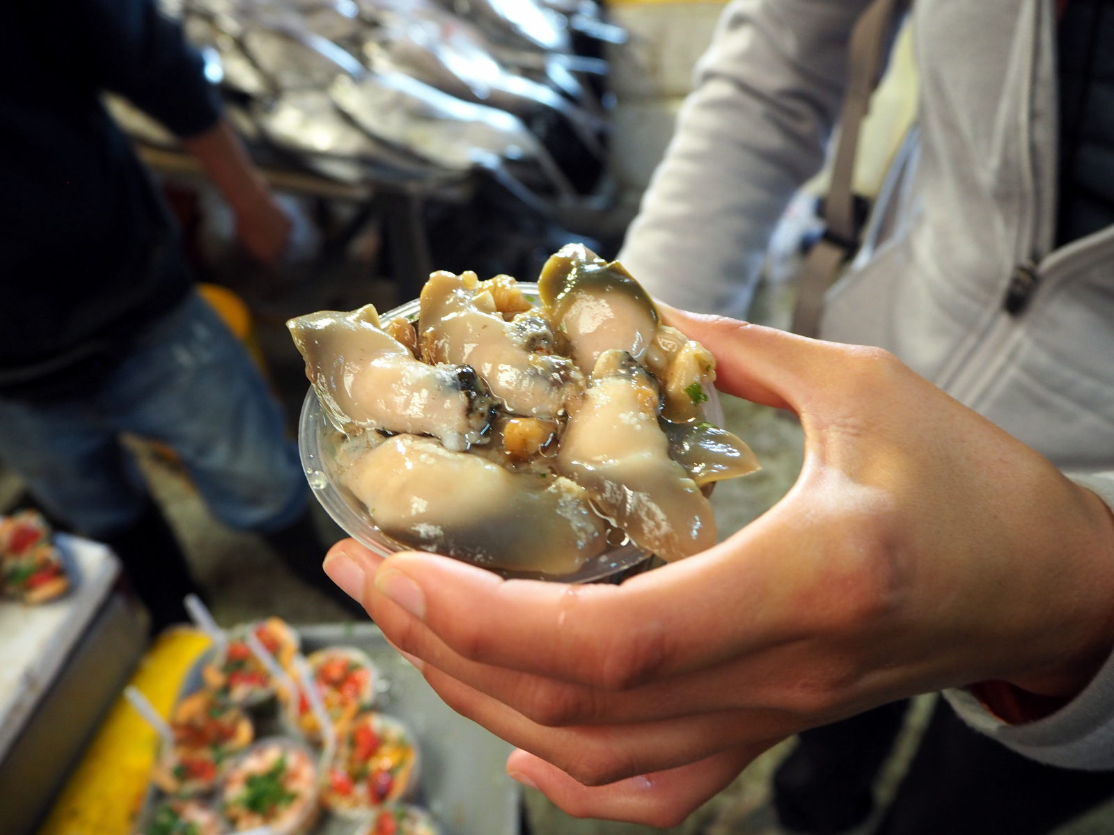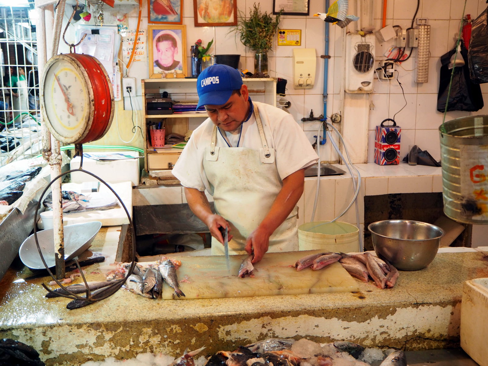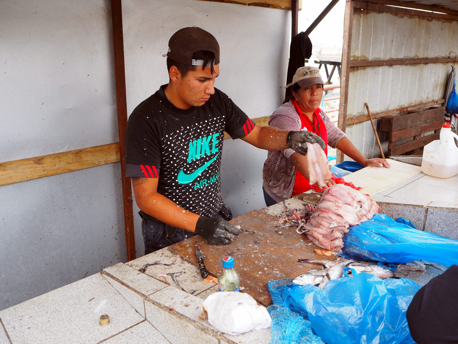 A la criée de Valparaiso, divers coquillages et fruits de mer en vente