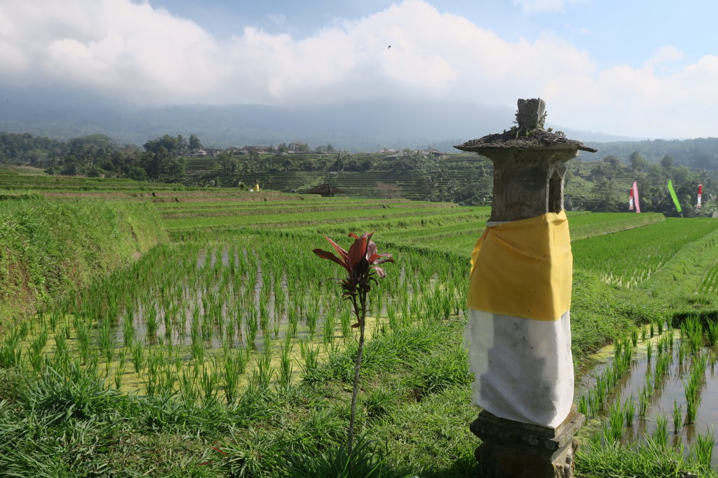 Au sein des rizières, la présence religieuse n’est jamais loin