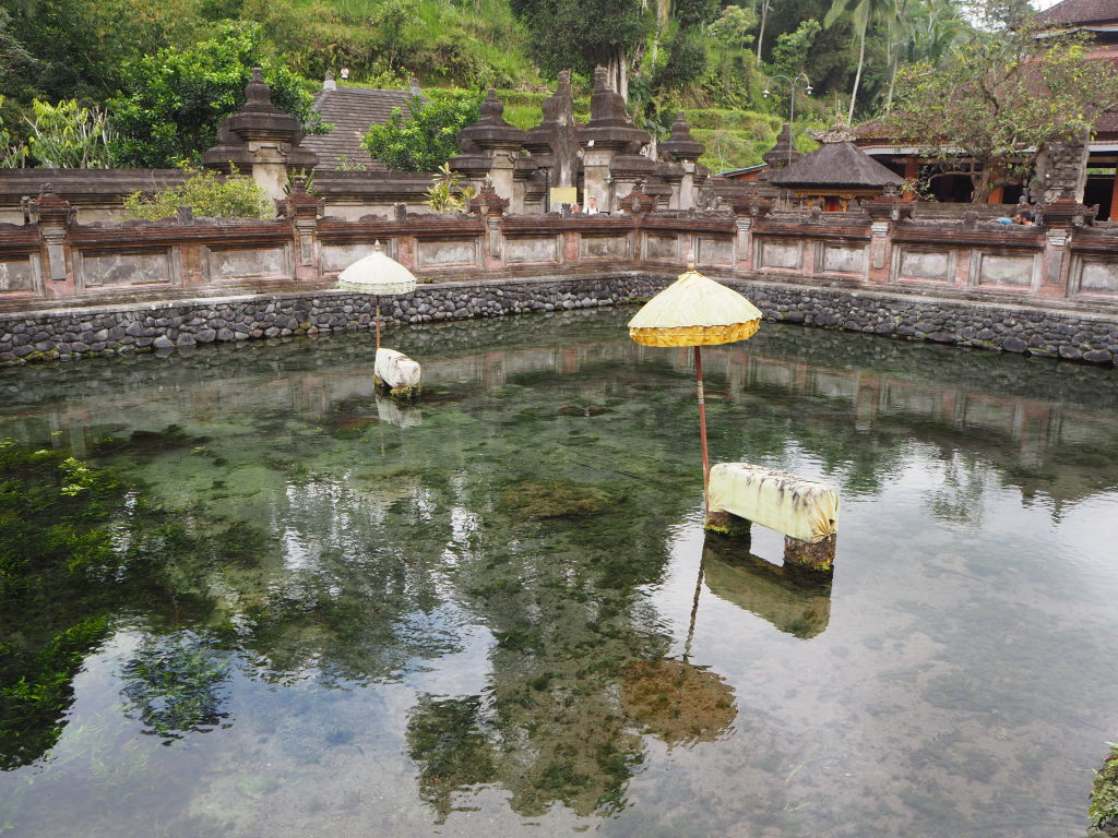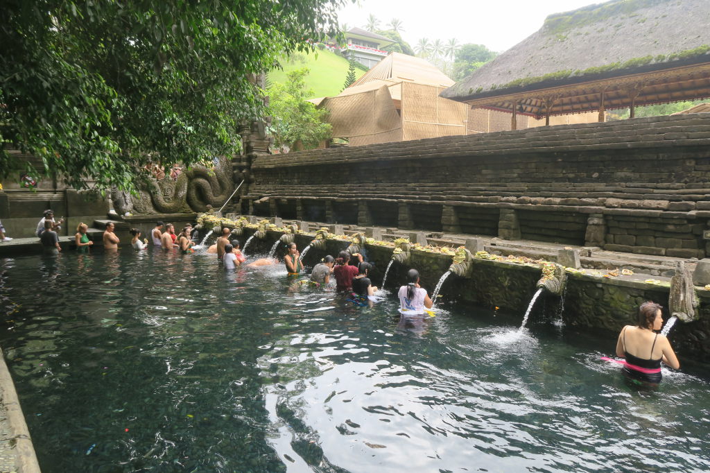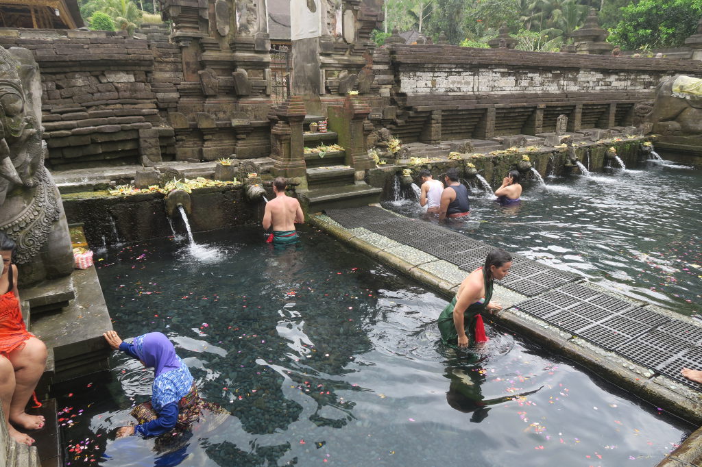 Les piscines d’eau sacrée du temple de Tirta Empul (ici la deuxième piscine, sur la droite)