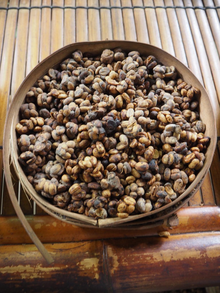 Déjections de luwak, qui inclue dans son régime des grains de café