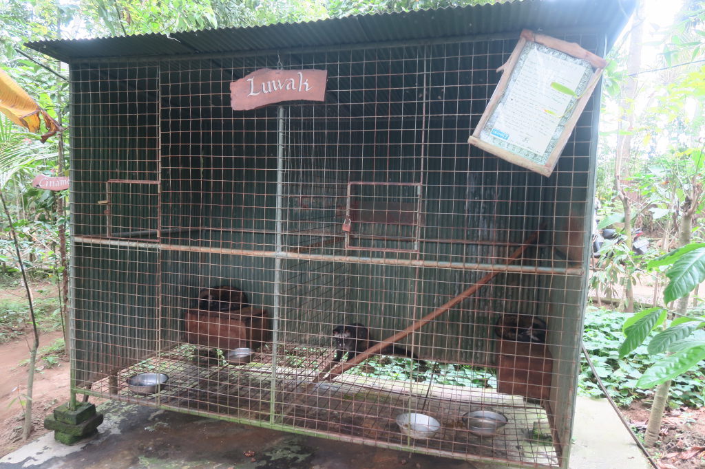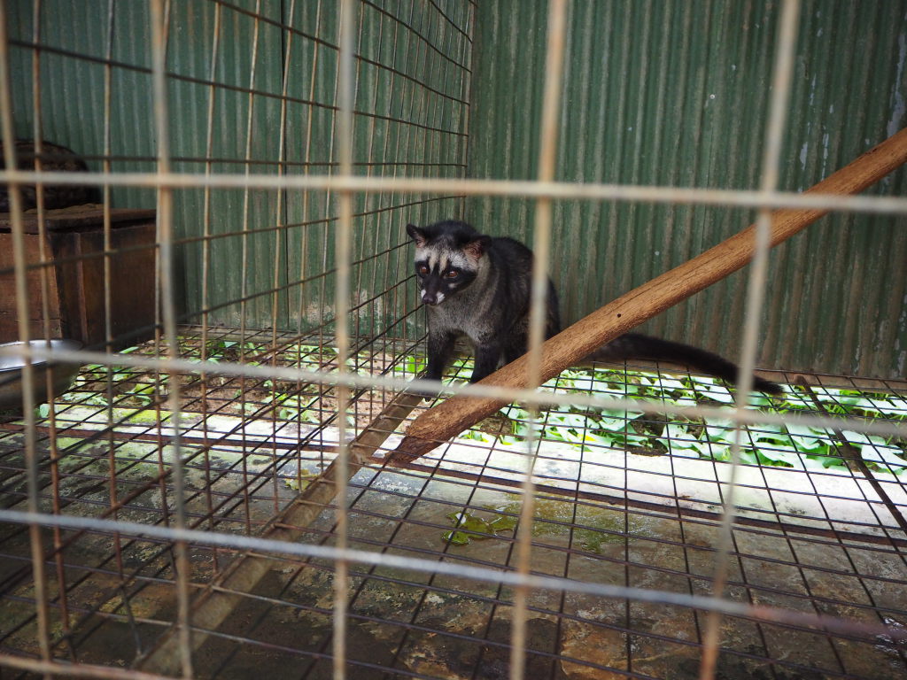Des « luwak » (civettes) en cage dans une « plantation » de café