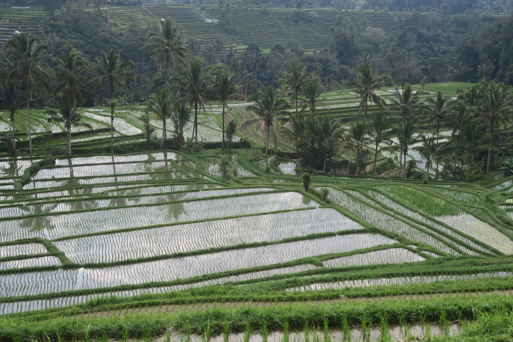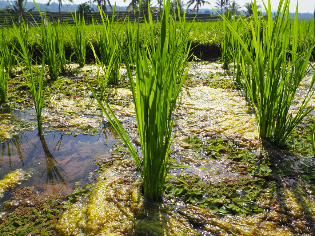 Vue le riz : pour info, l’eau n’est pas nécessaire pour faire pousser le riz, mais sert uniquement à lutter contre les parasites