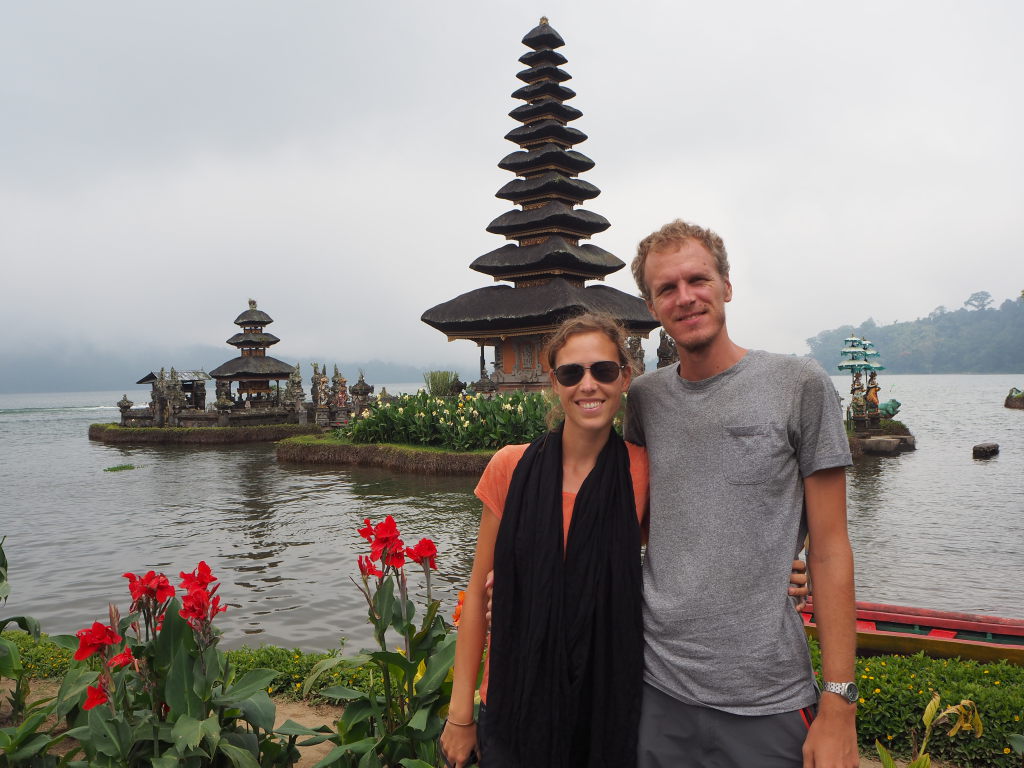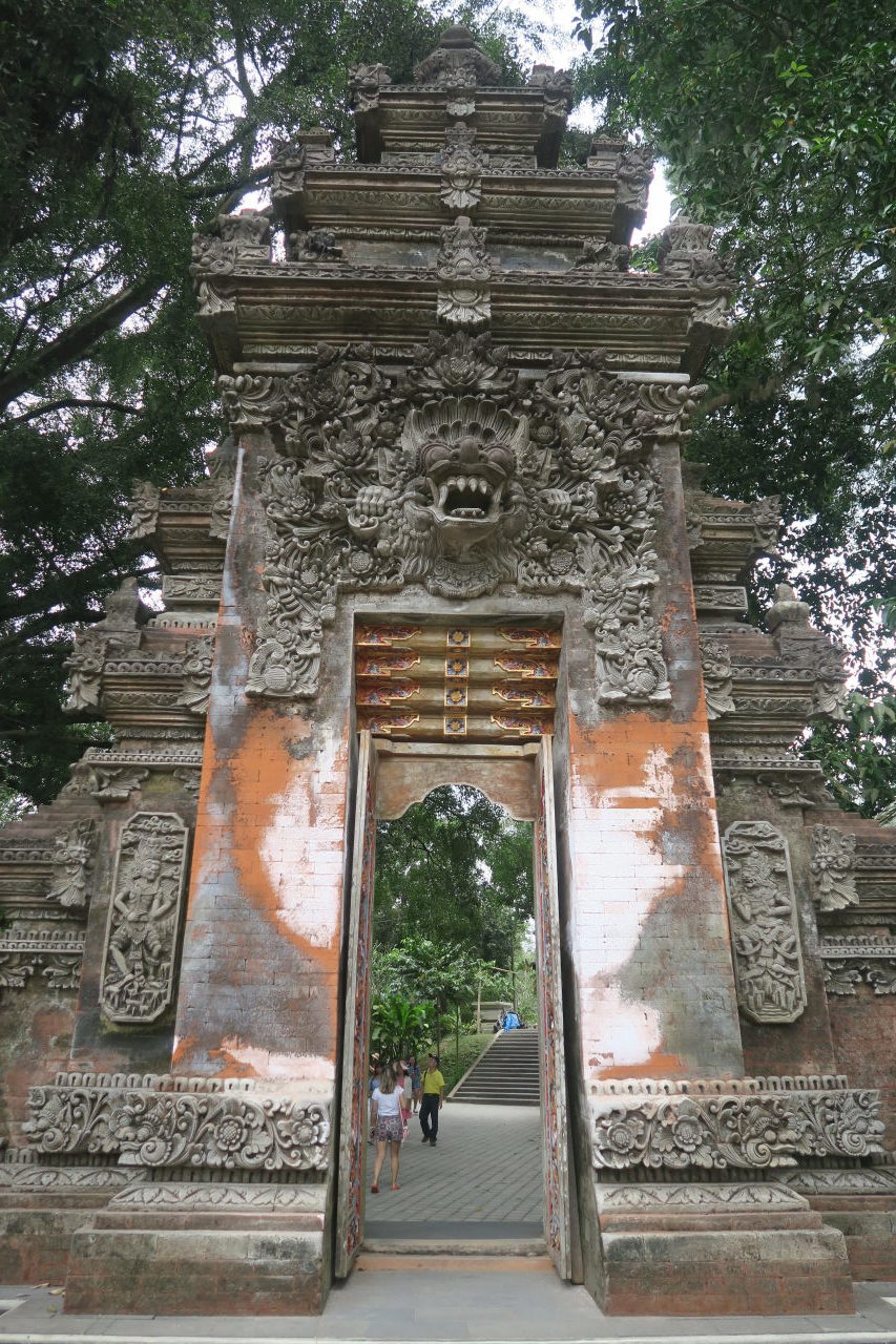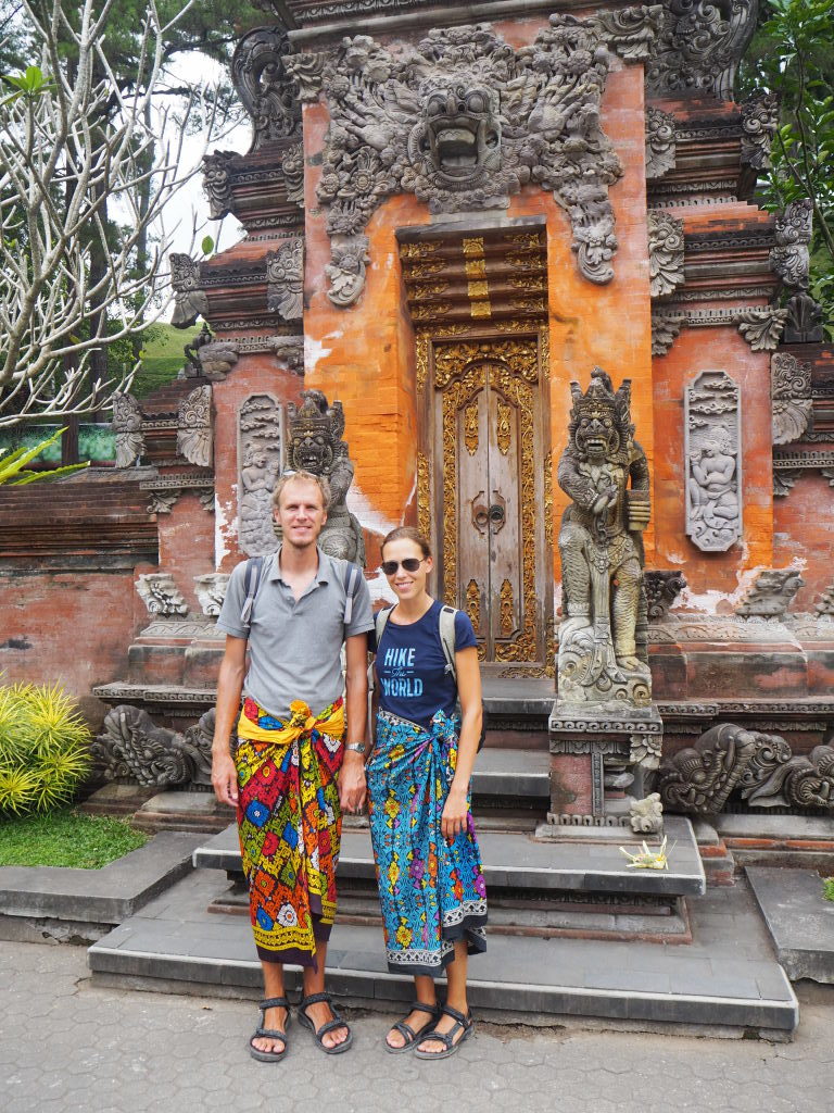 Elise et Julien devant l’une des portes du temple de Tirta Empul
