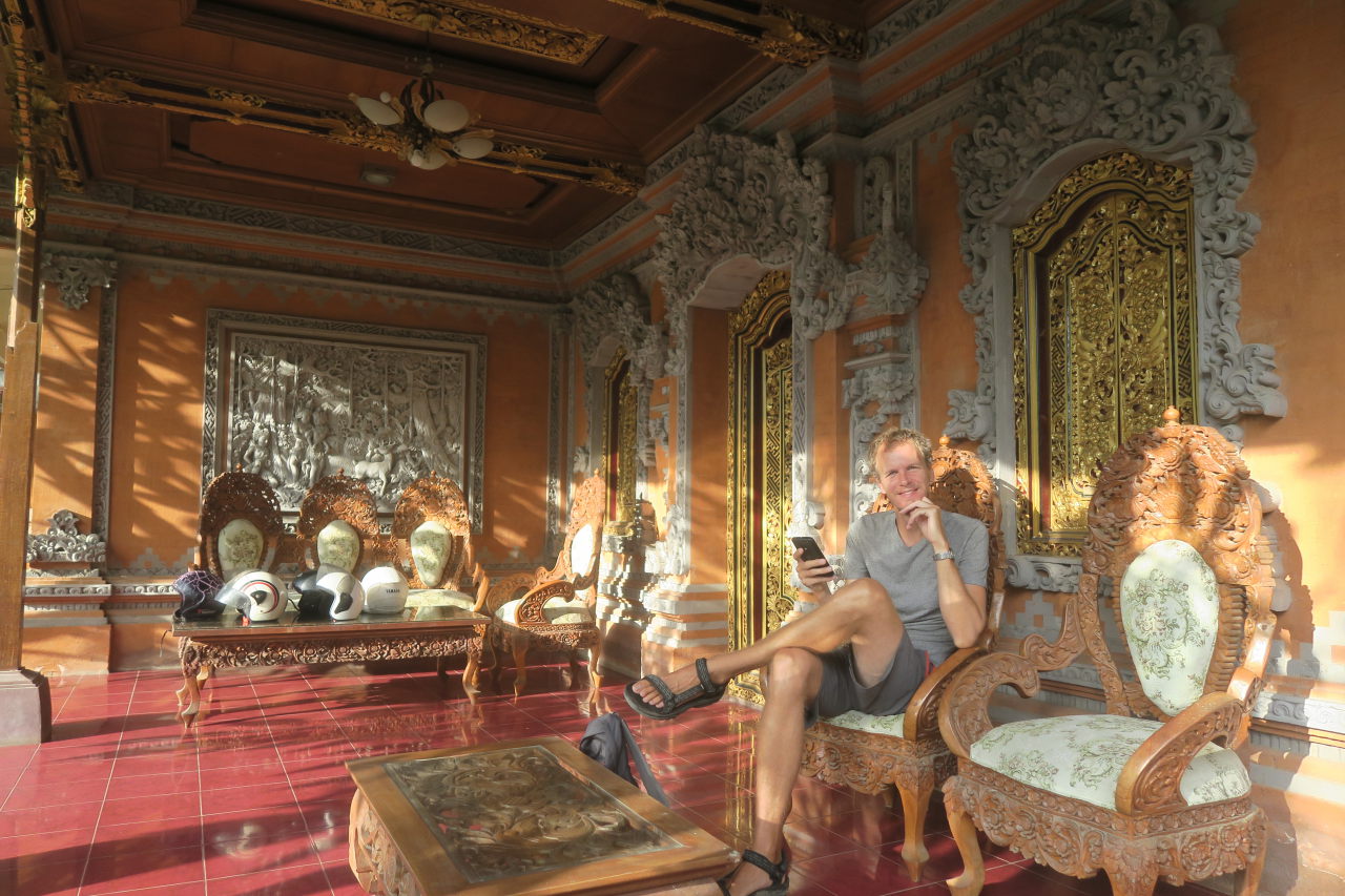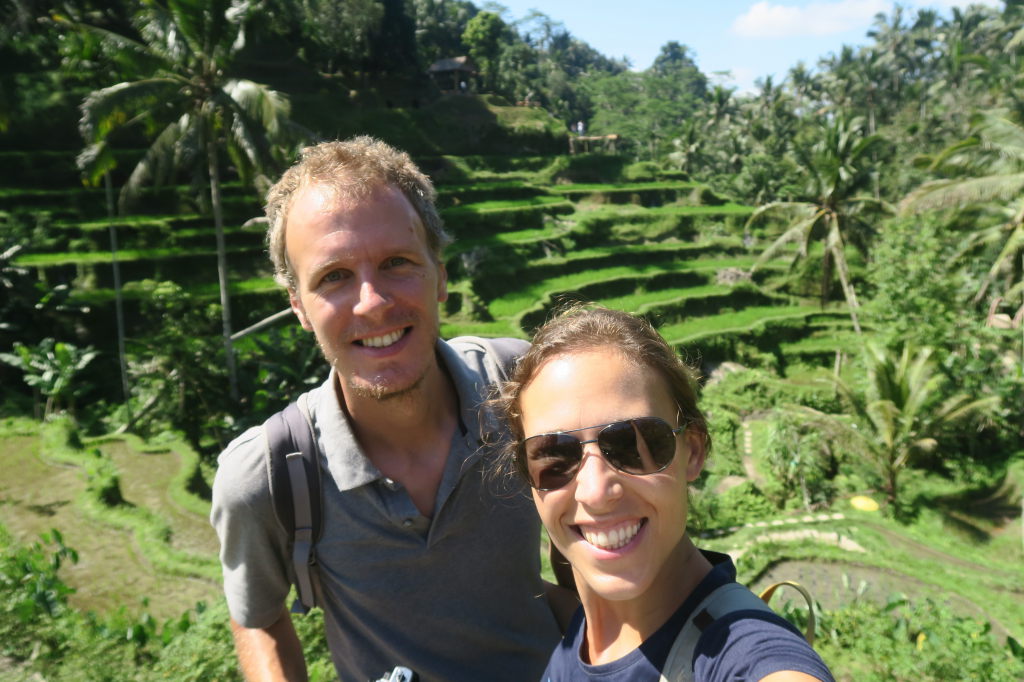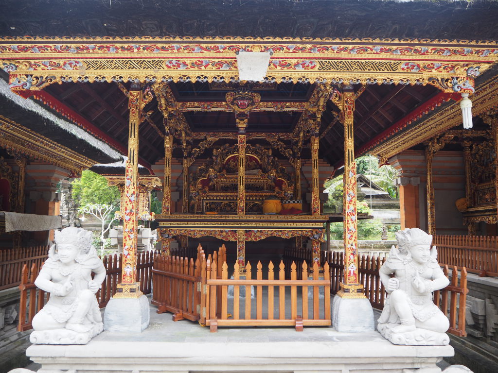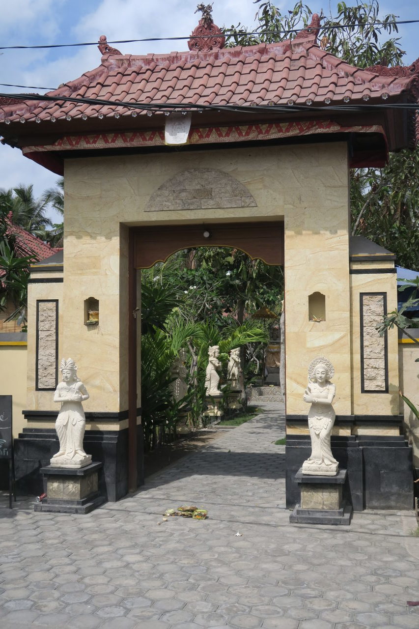 Elise et Julien devant l’une des portes du temple de Tirta Empul