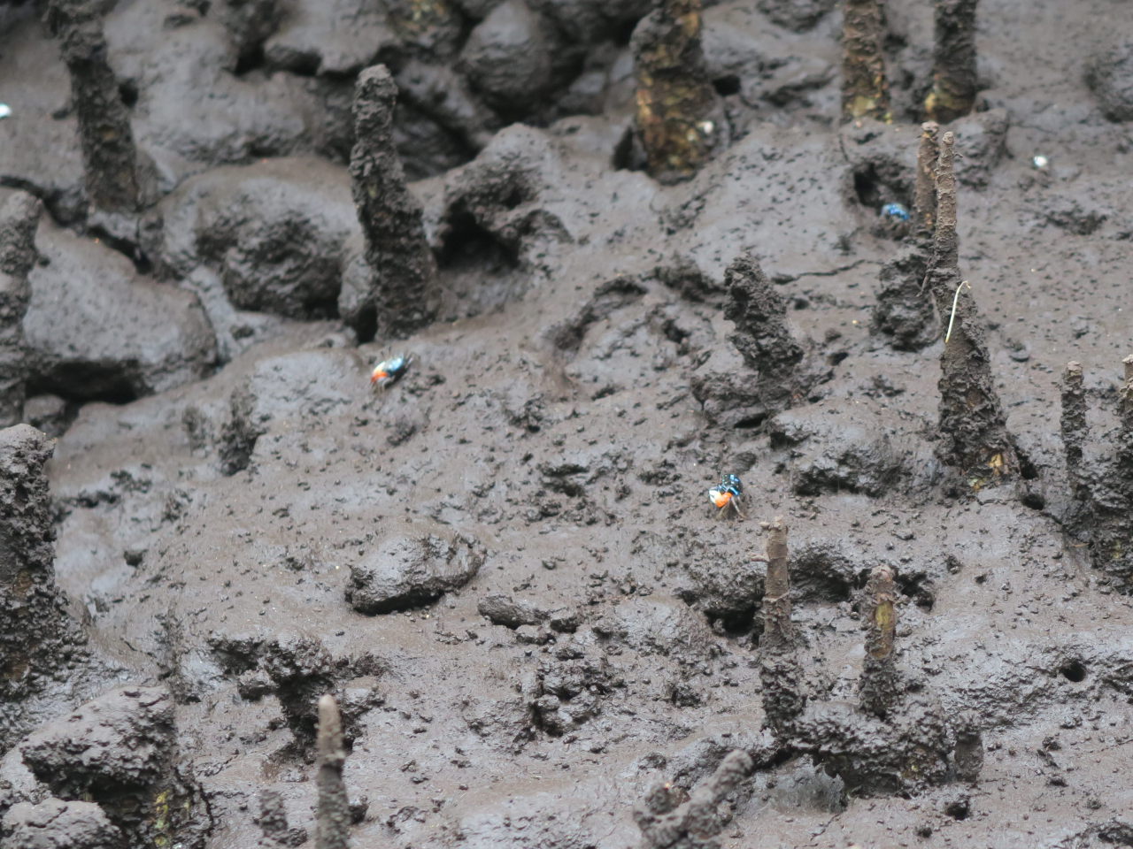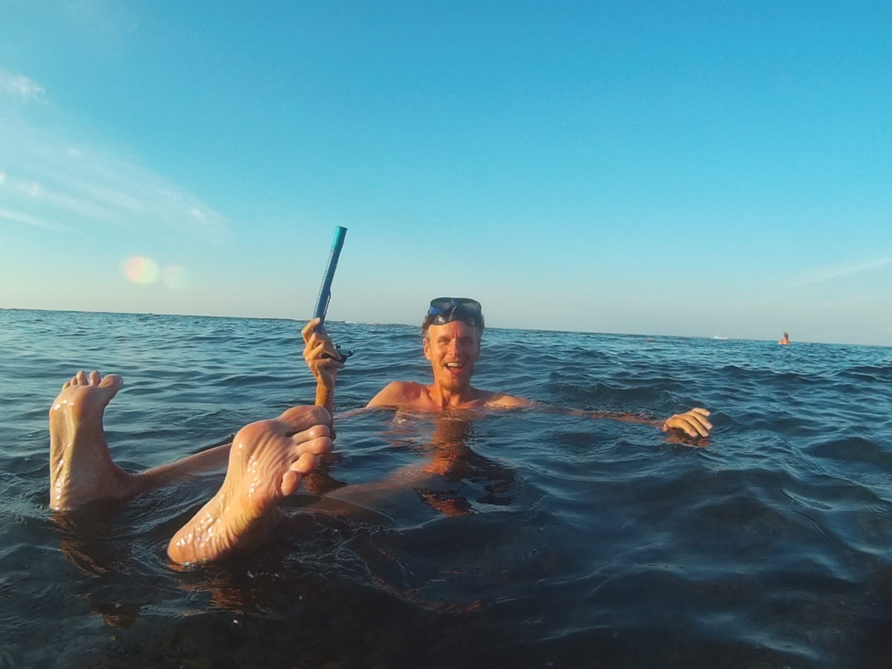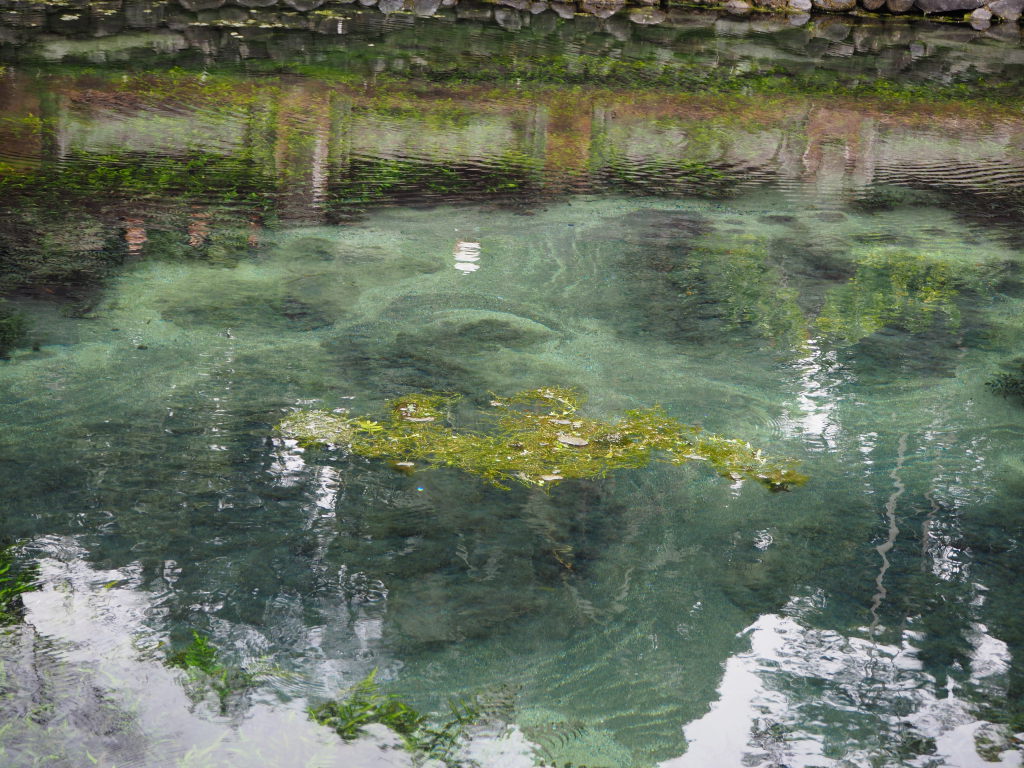 Sur le fond du bassin, le sable noir semble « bouillir »: c’est le point de sortie des sources