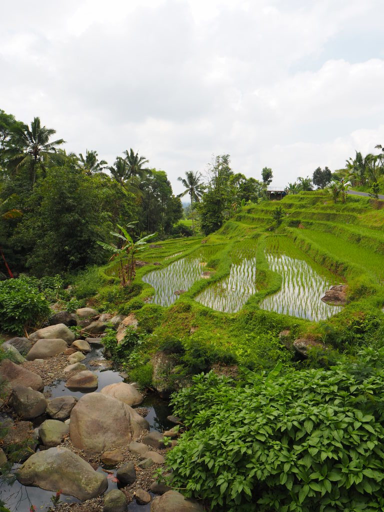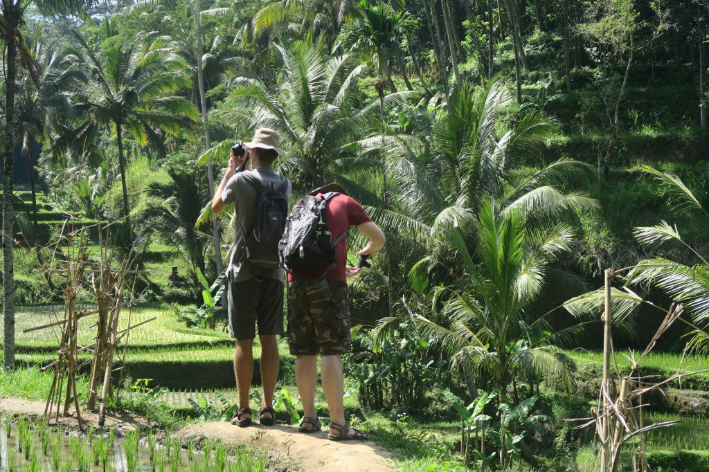 Un passage très étroit dans une rizière de Canggu. Le passage servait aussi pour les motos ! Dans les deux sens…