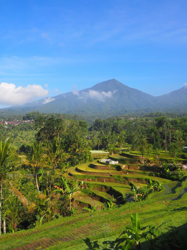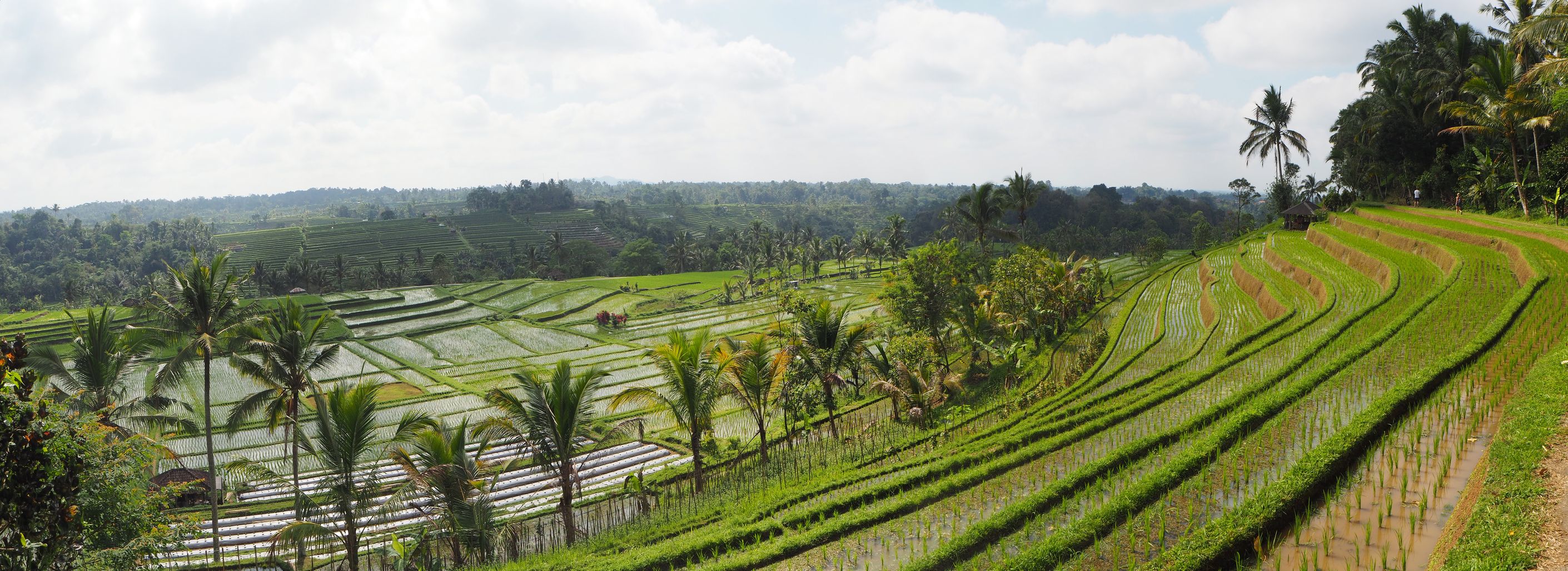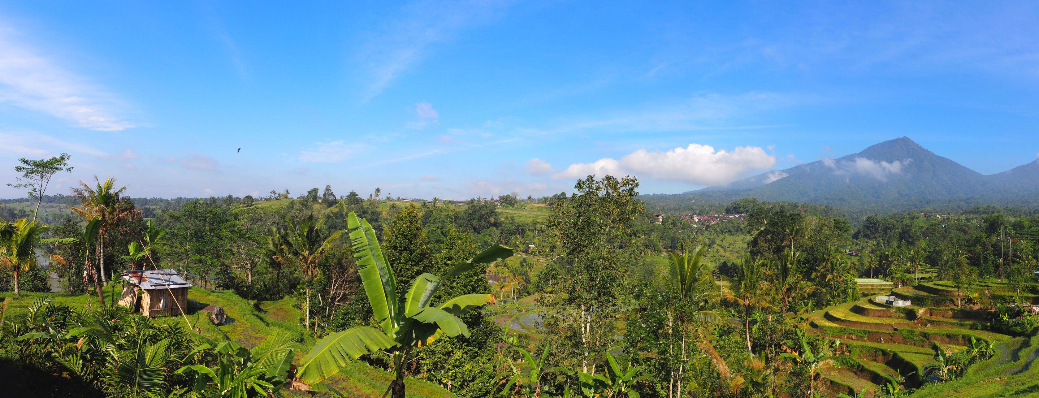 Panorama des rizières de Jatiluwih, avec les montagnes en arrière plan