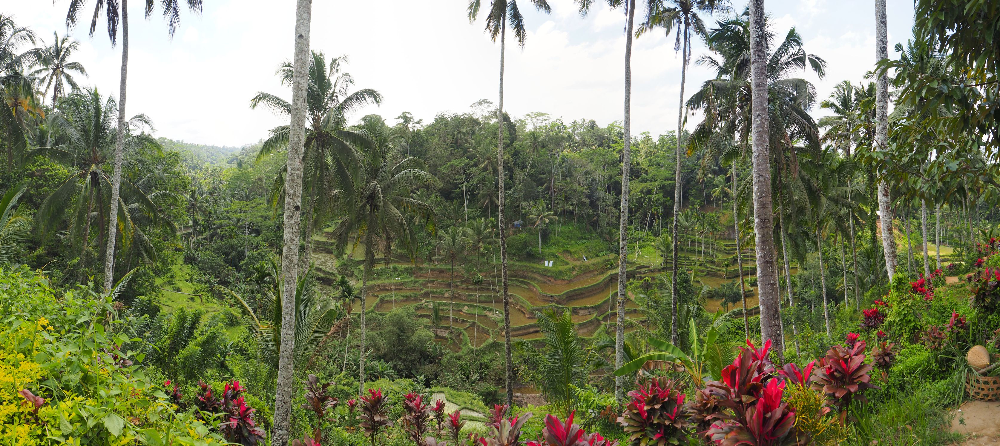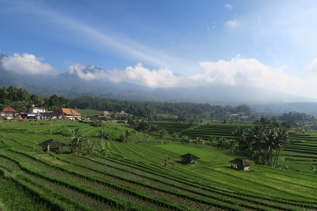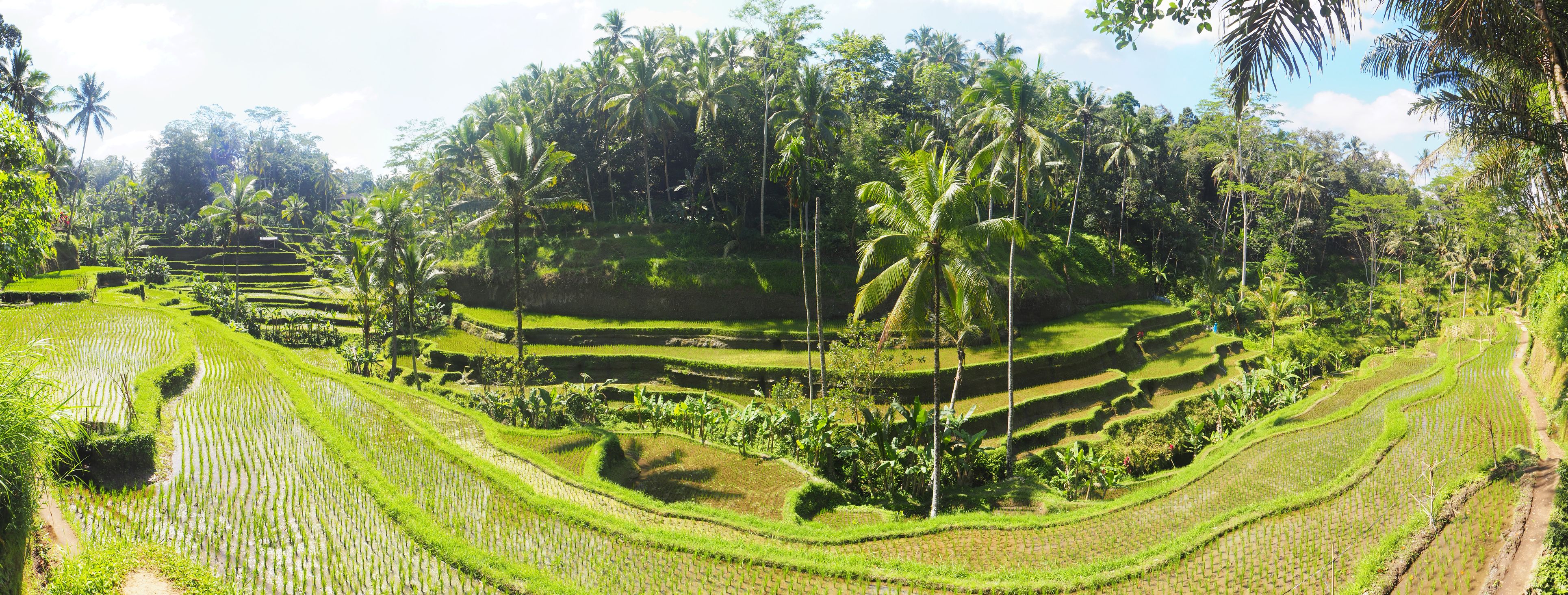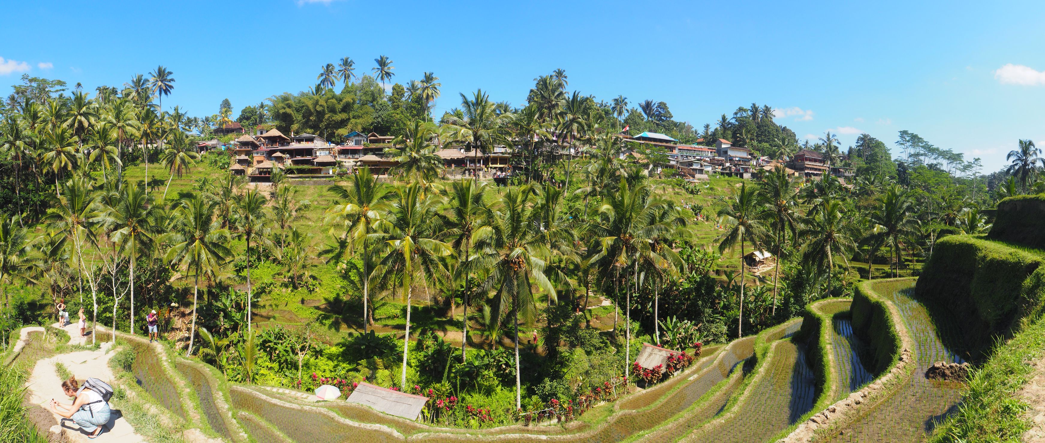 Panorama des rizières de Jatiluwih, avec les montagnes en arrière plan