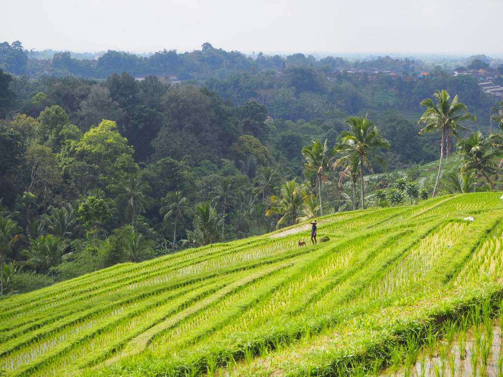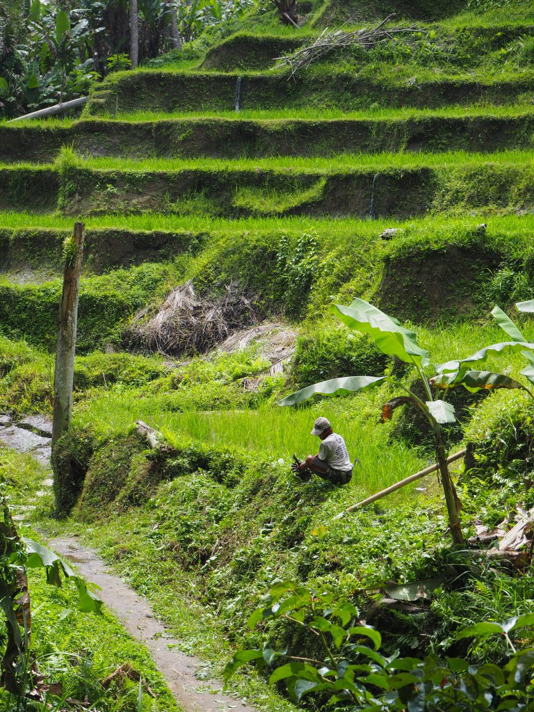 Rizières de Tegalalang, un paysan prends soin de sa parcelle