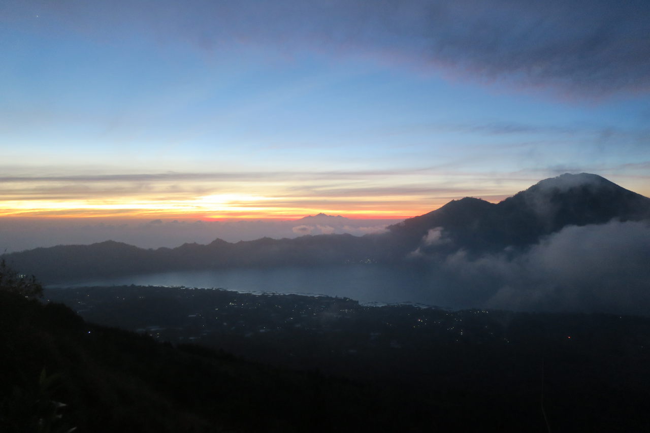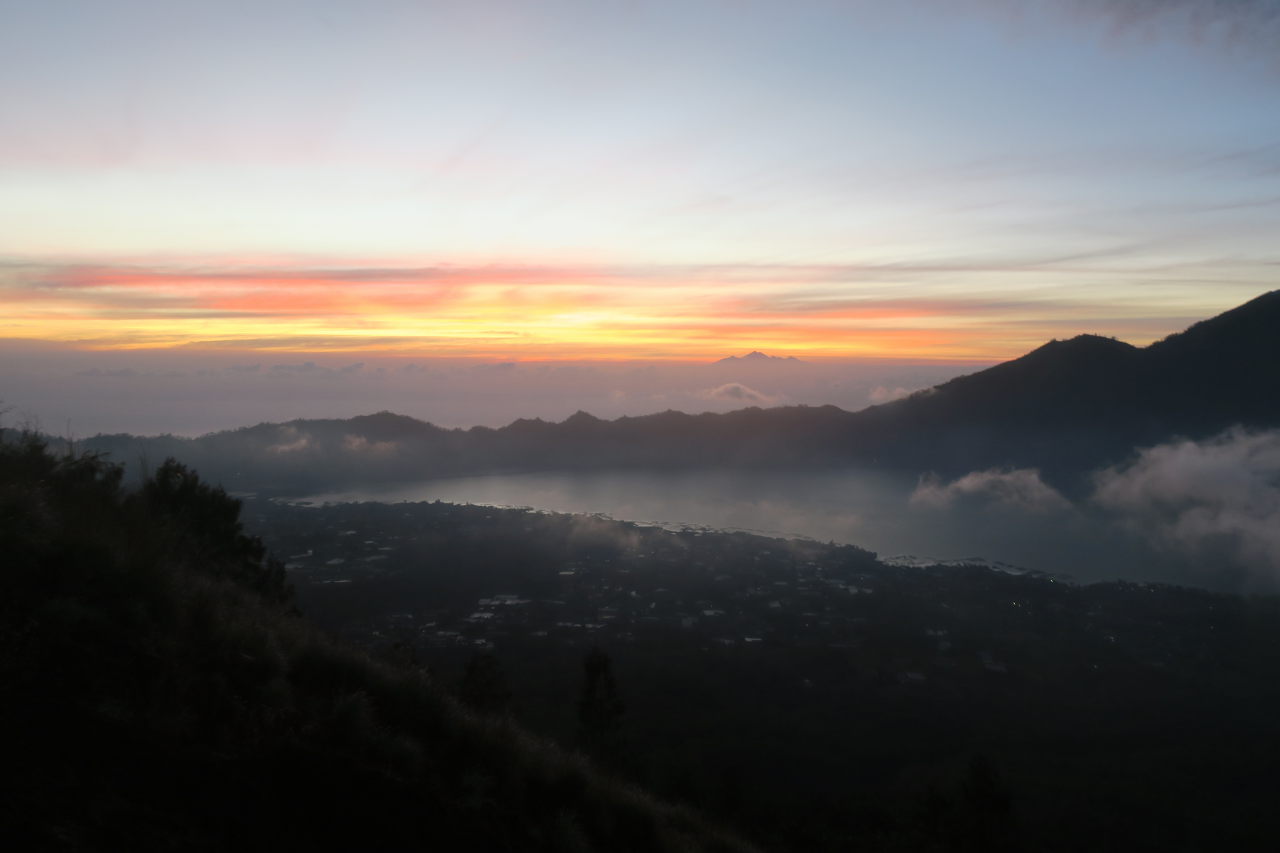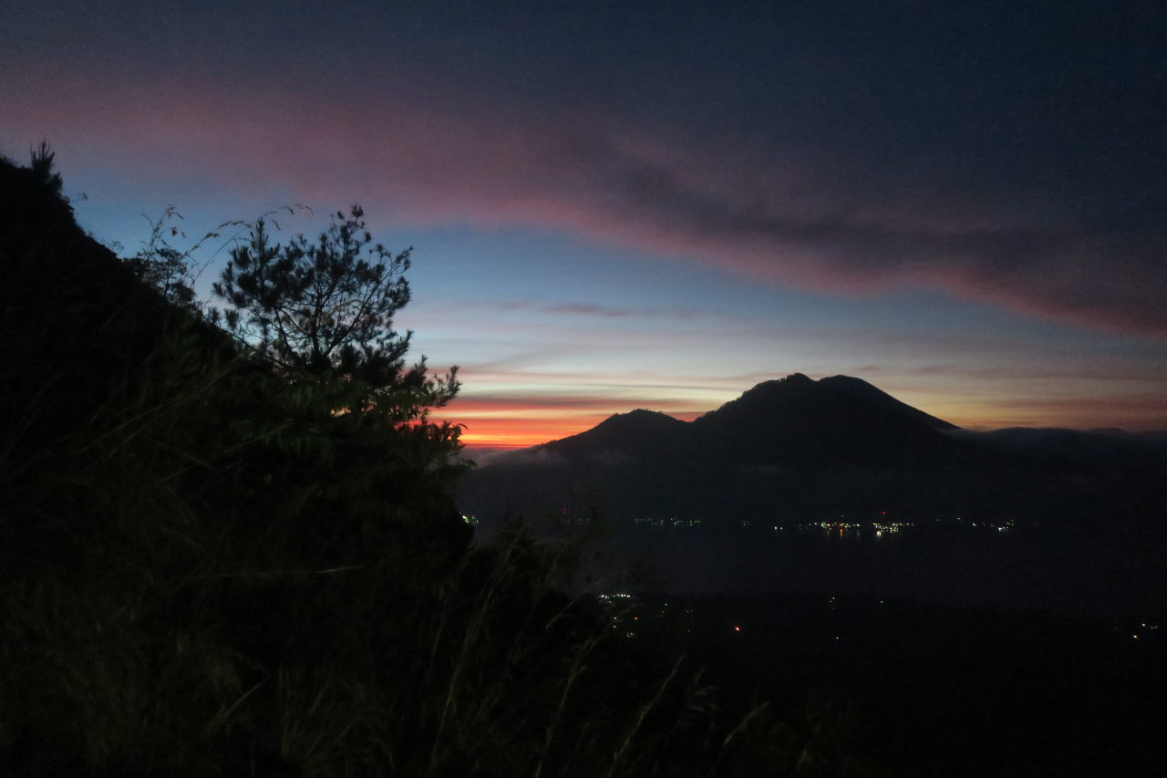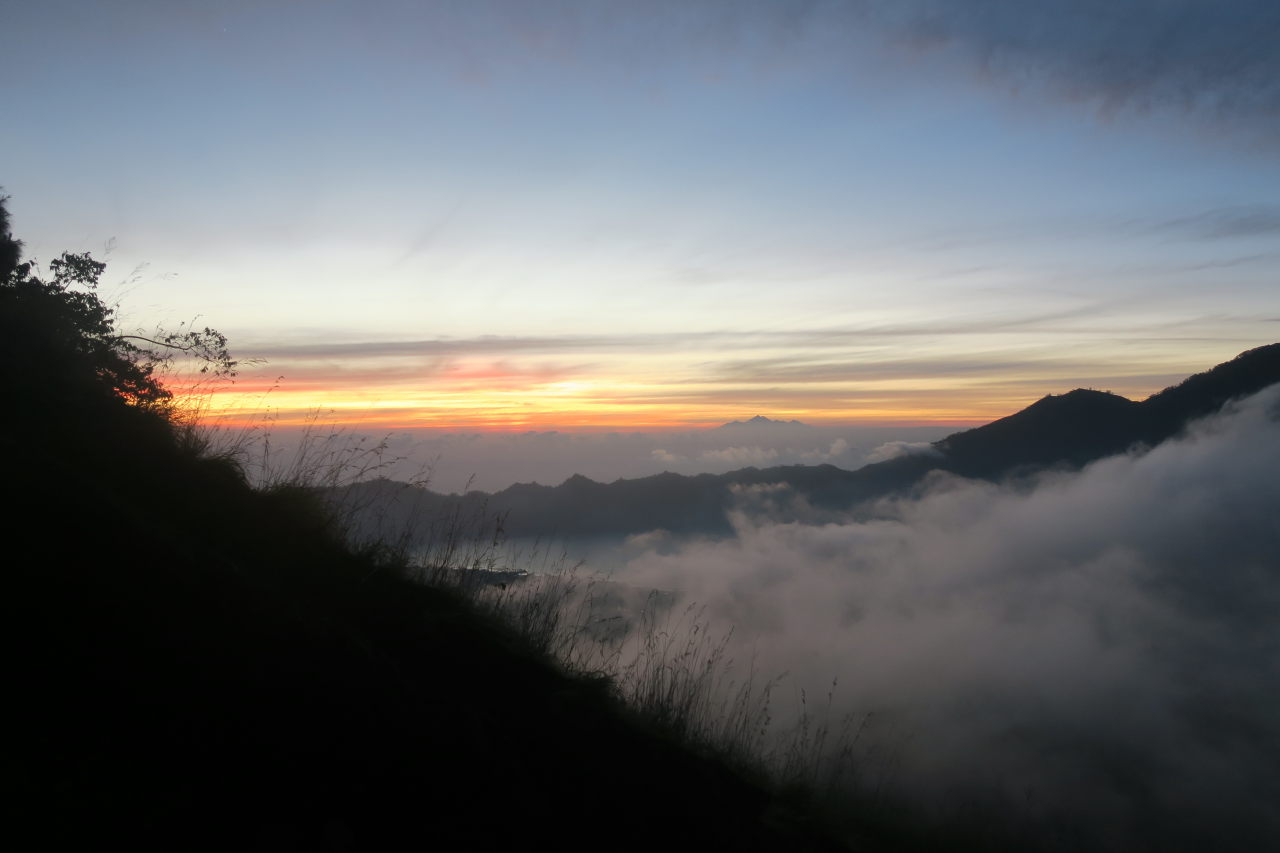 Premières lueurs de l’aurore durant l’ascension du Mont Batur