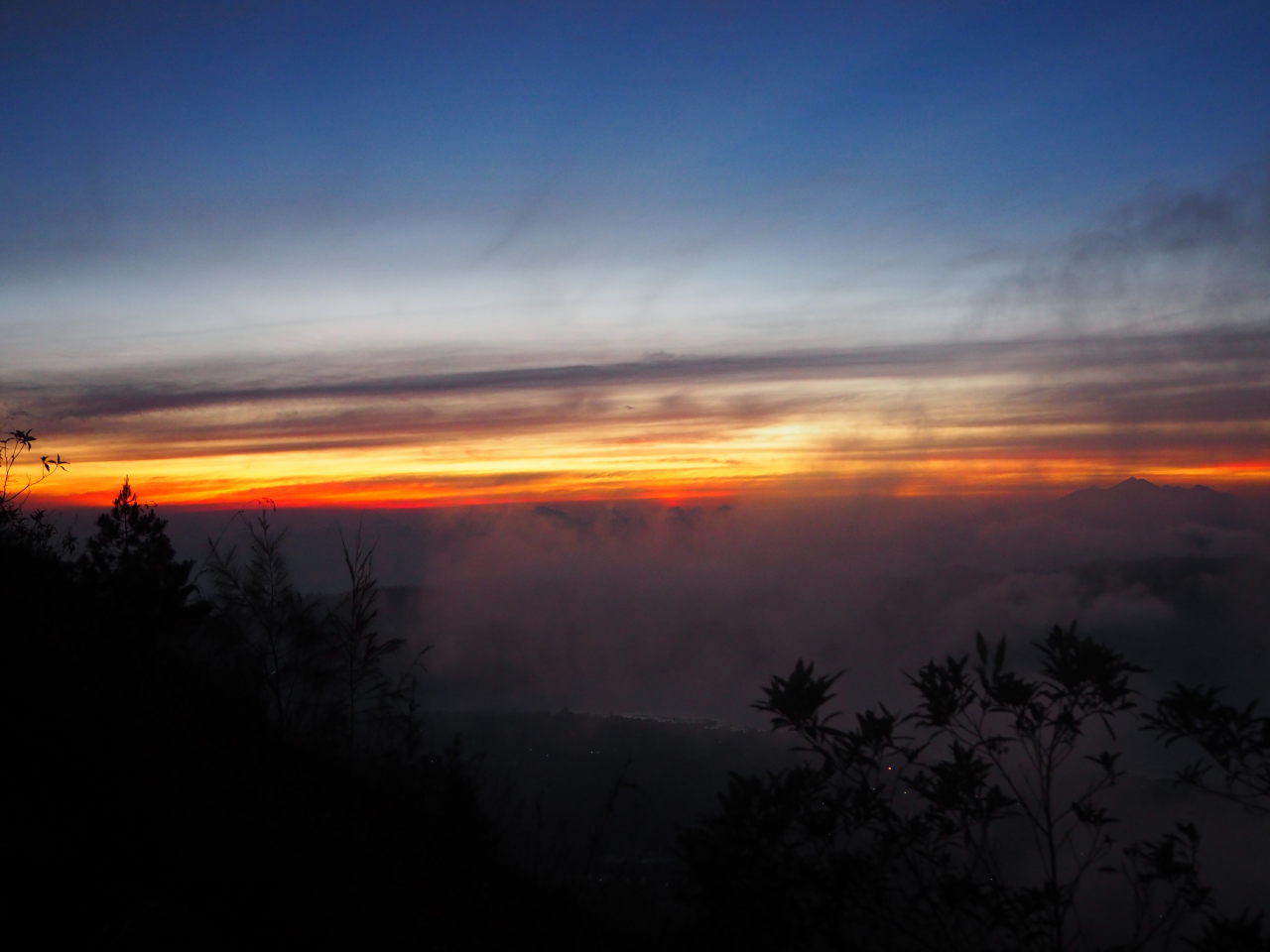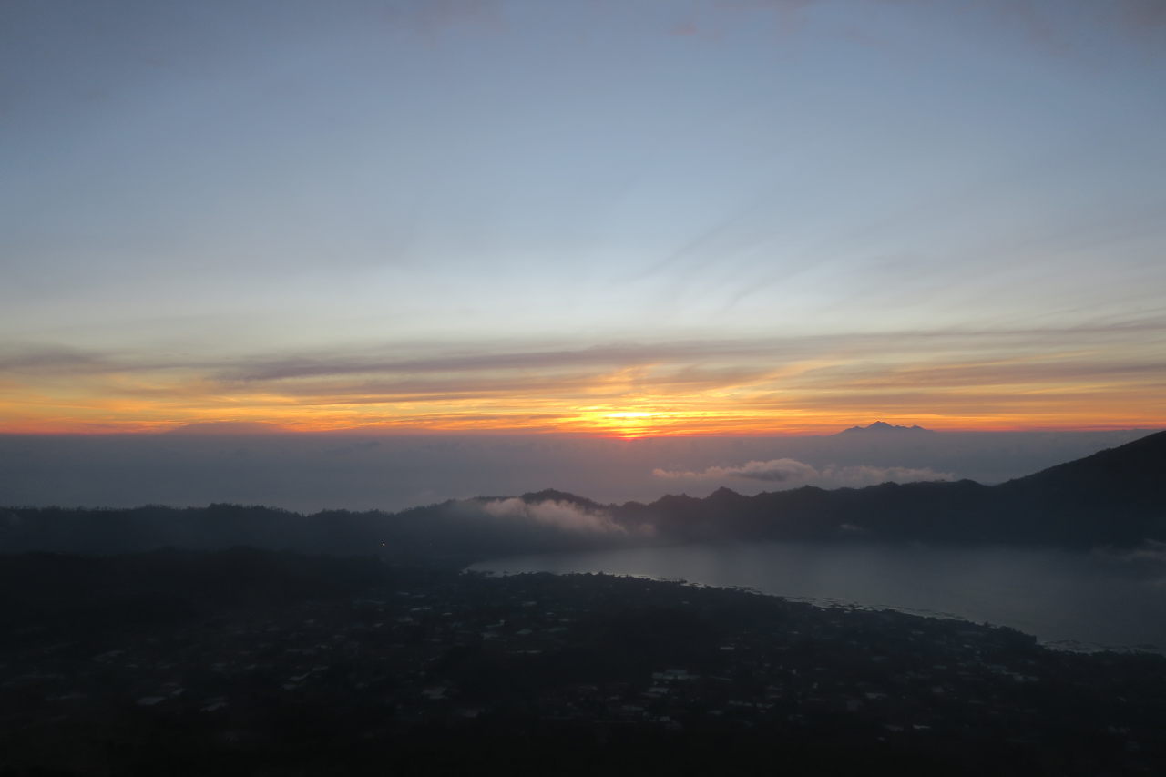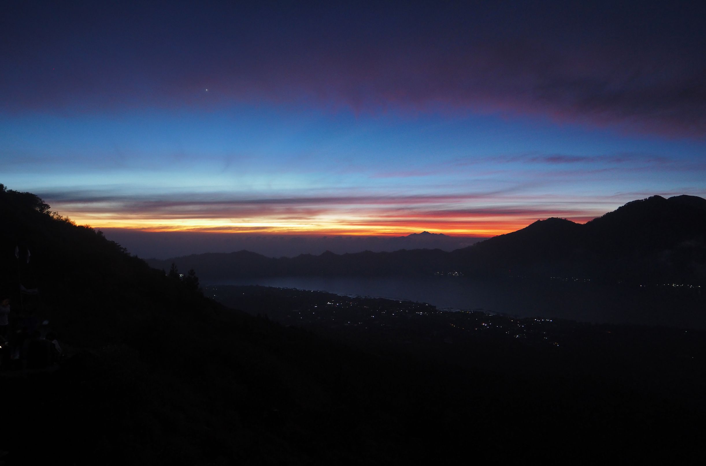 Premières lueurs de l’aurore durant l’ascension du Mont Batur