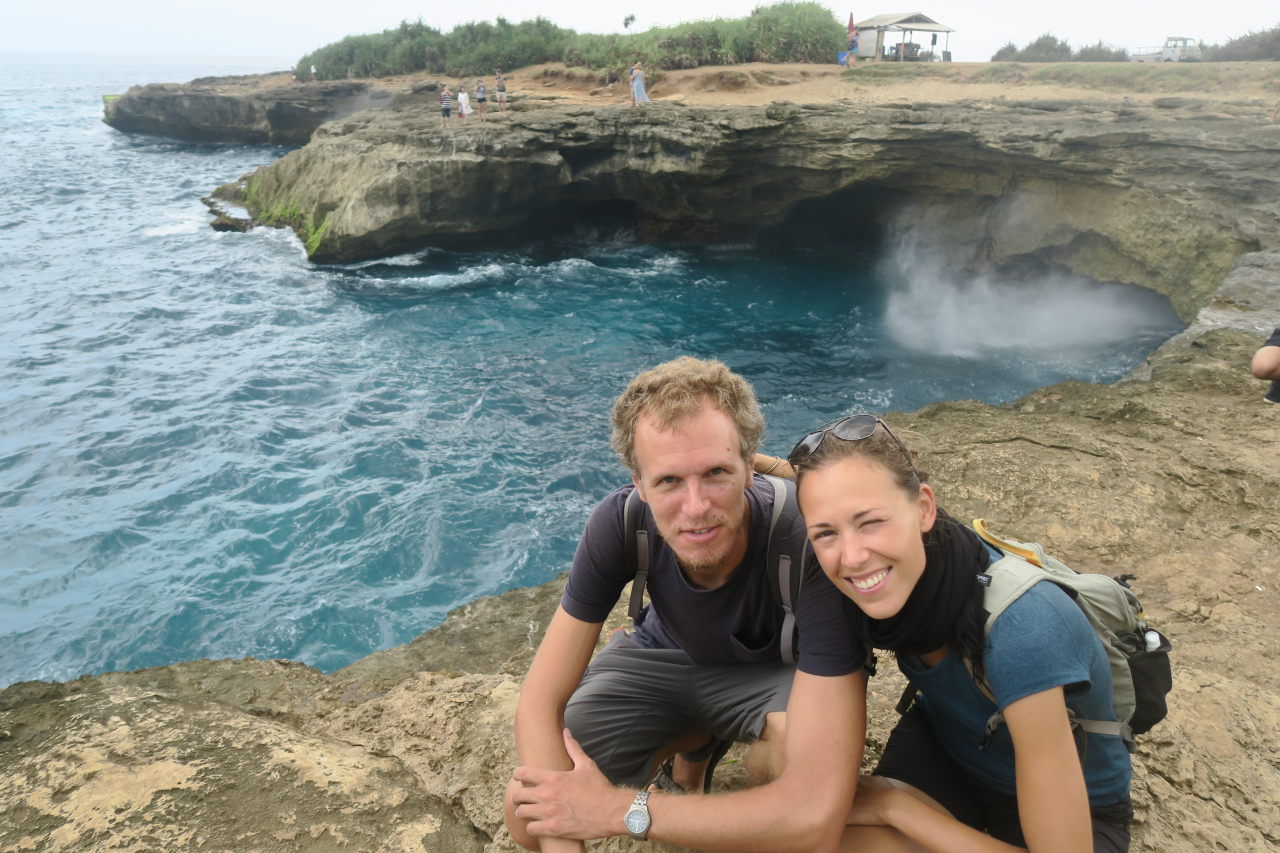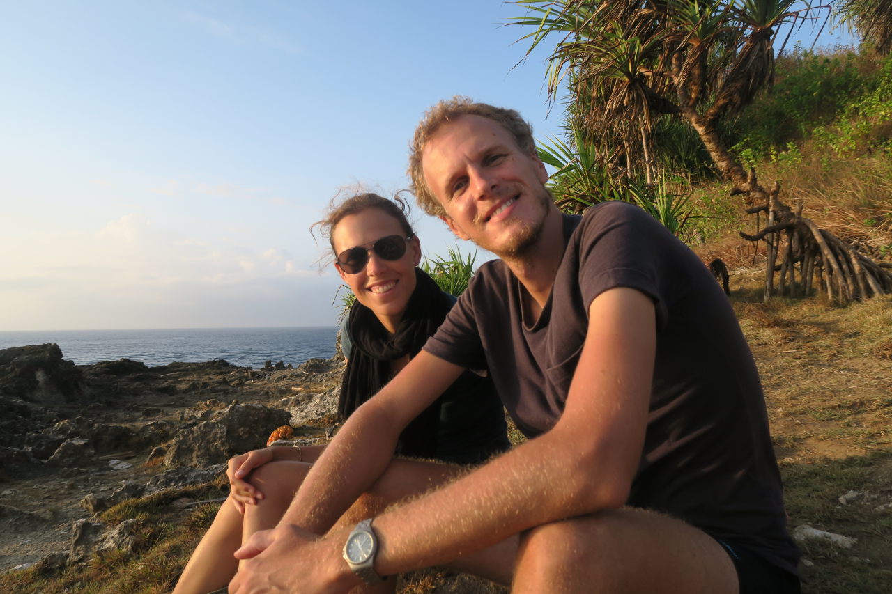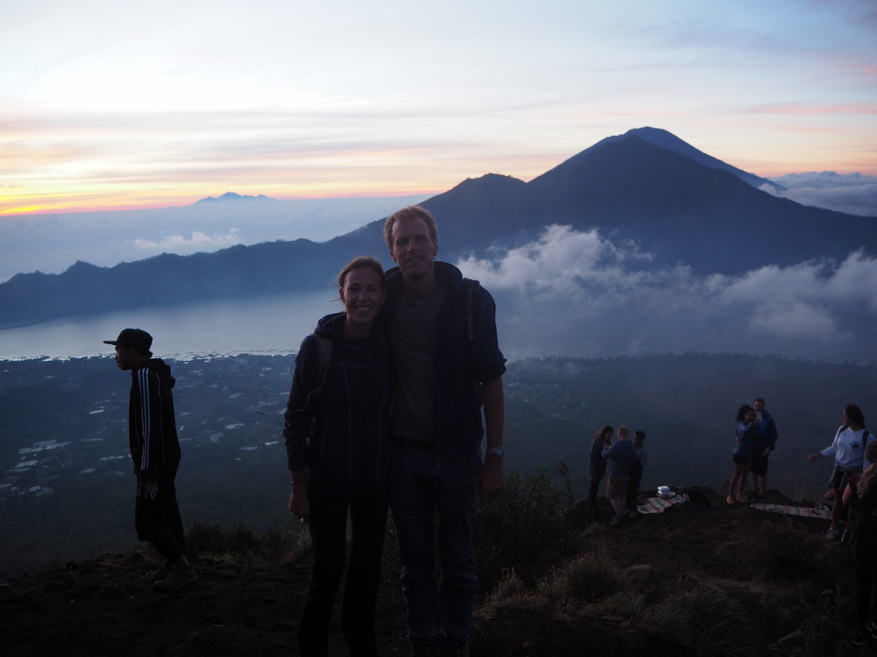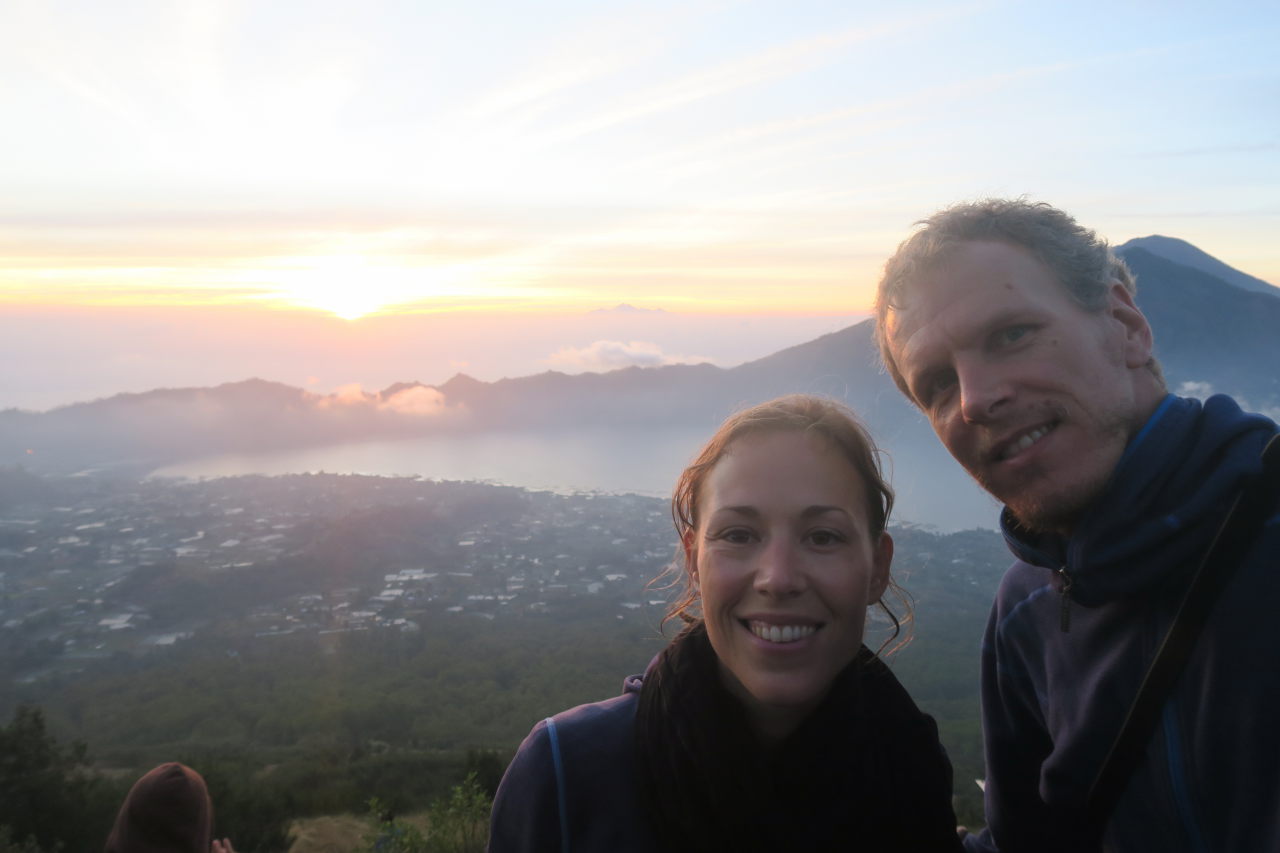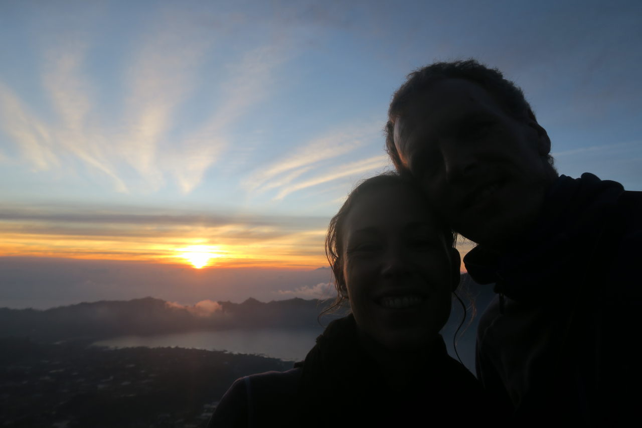 Elise et Julien au pied du Mont Batur. Il est 4h15