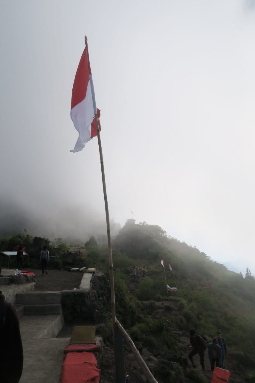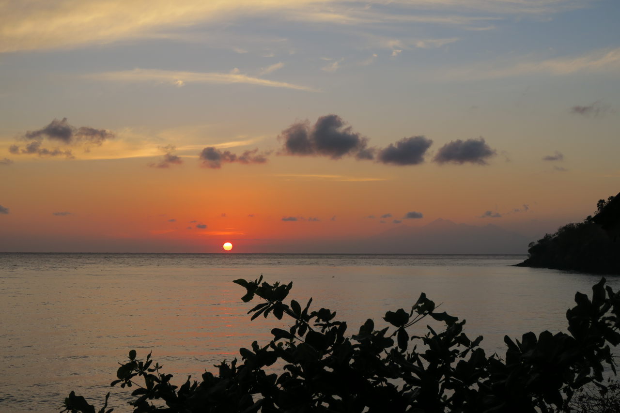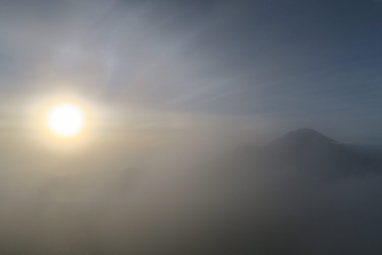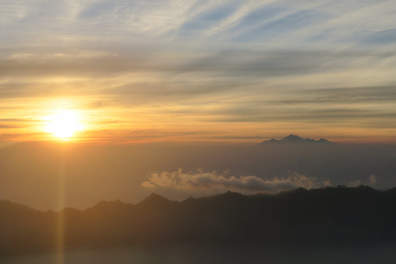 Le soleil, désormais entièrement levé, avec le Mont Rinjiani au loin