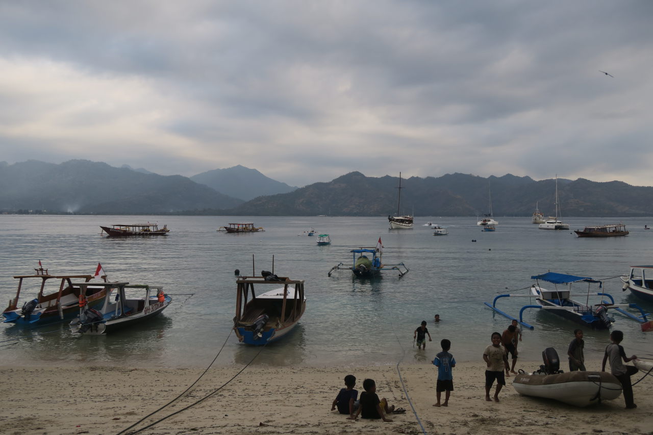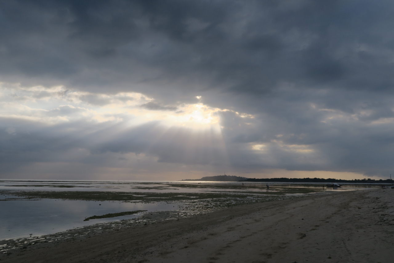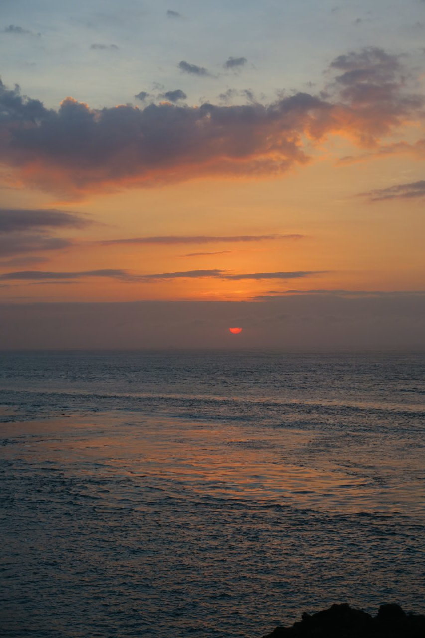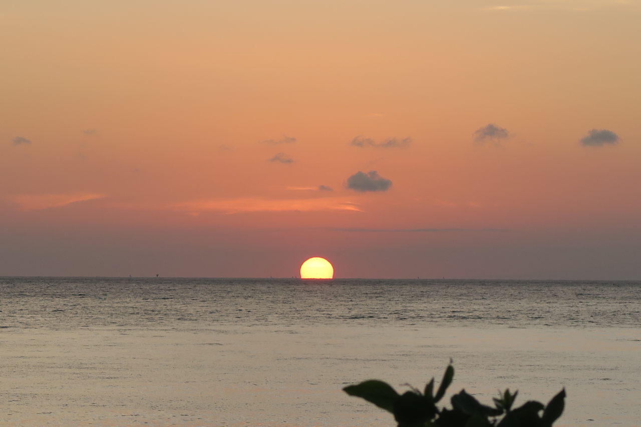 Le soleil, désormais entièrement levé, avec le Mont Rinjiani au loin