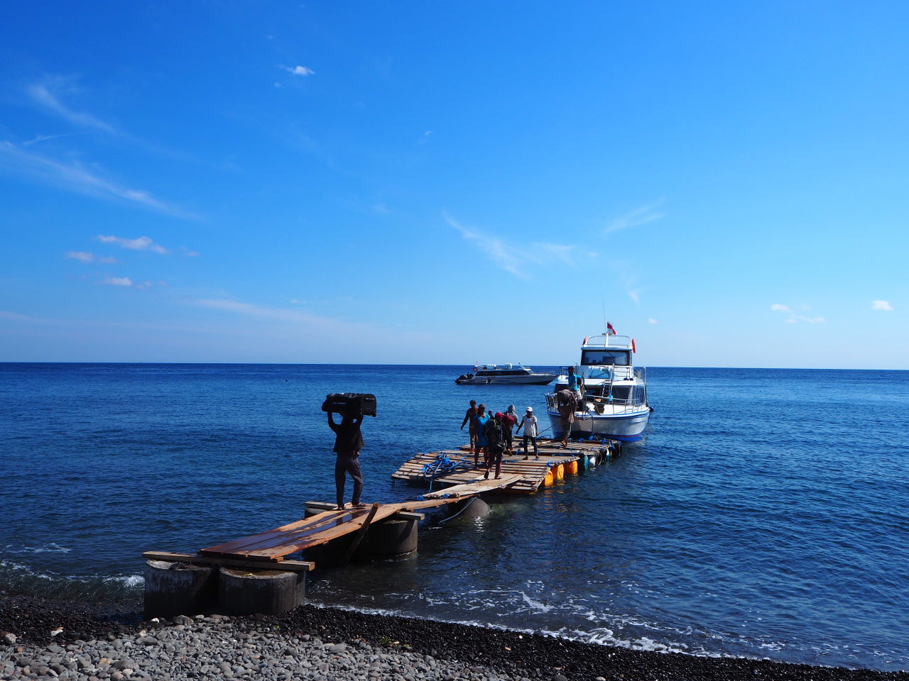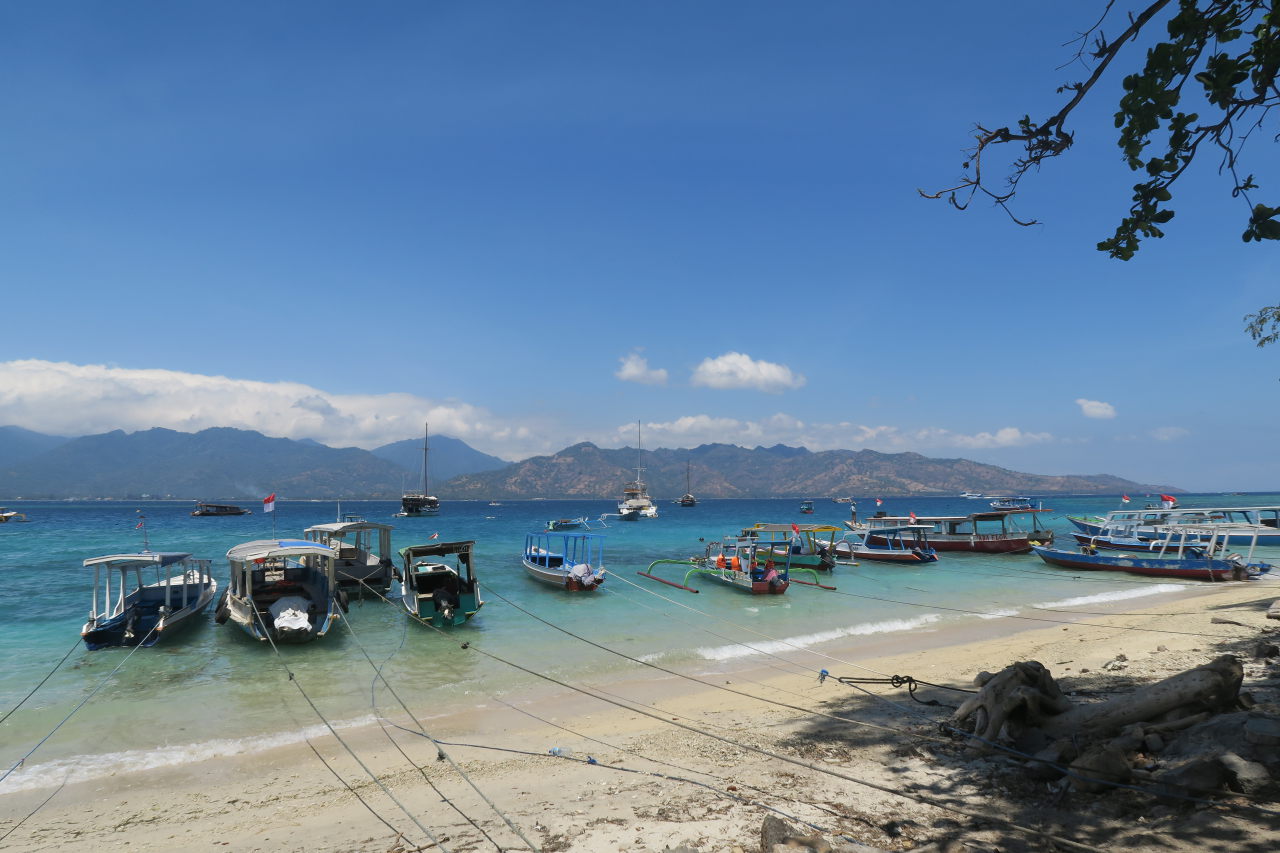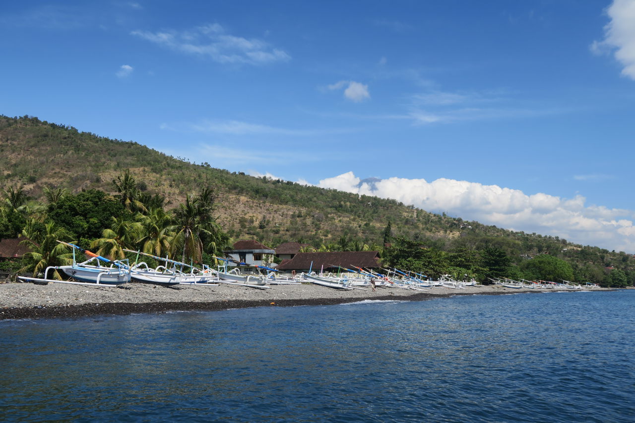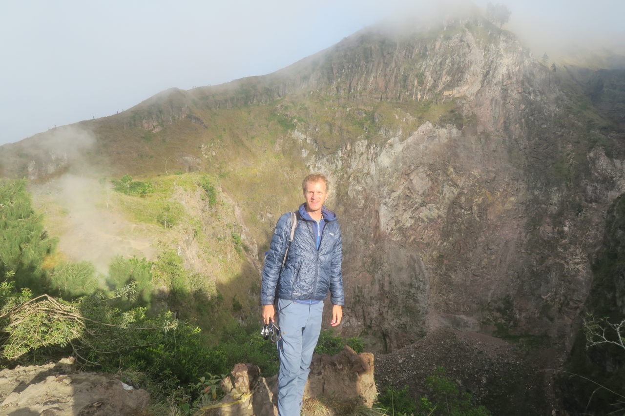 Le soleil, désormais entièrement levé, avec le Mont Rinjiani au loin