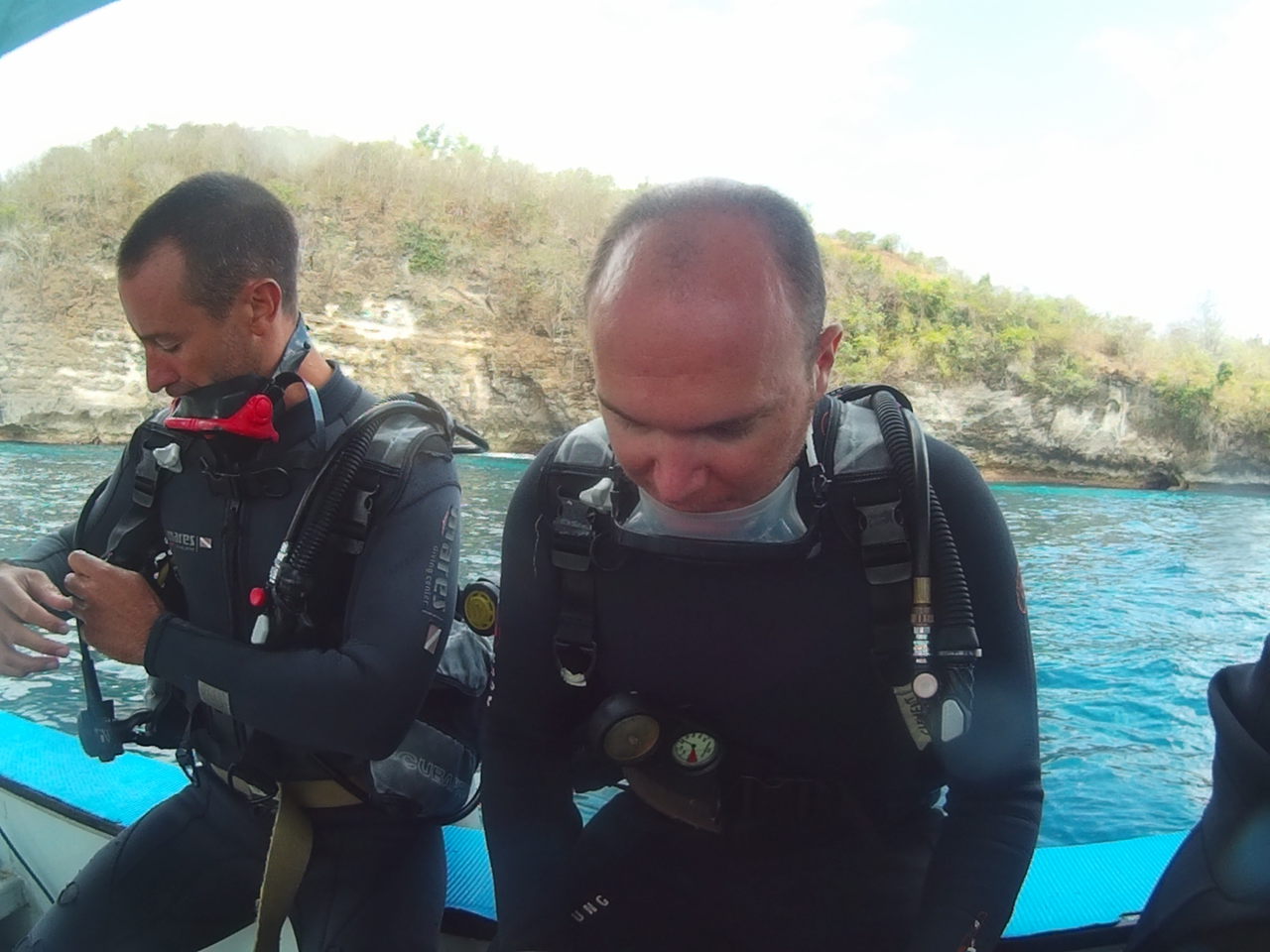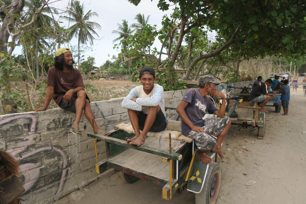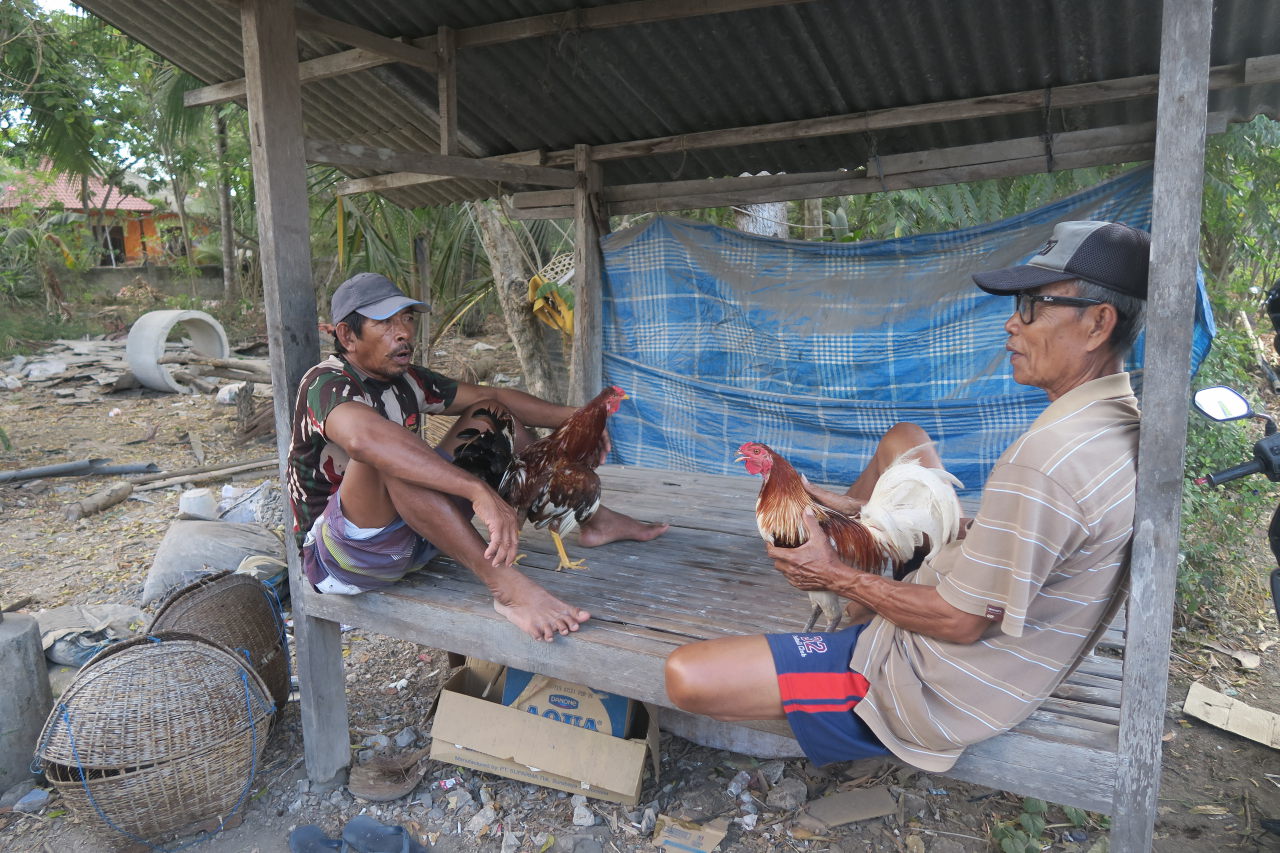 Deux hommes avec leurs coqs, Nusa Lembongan