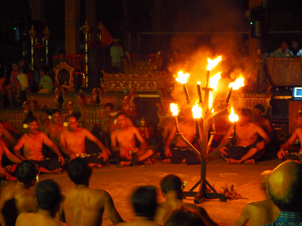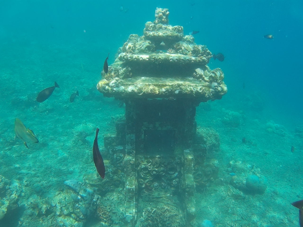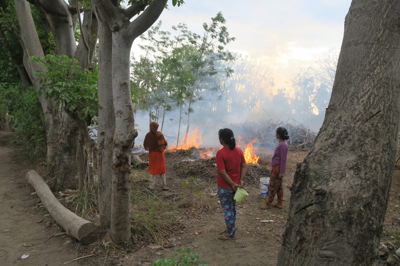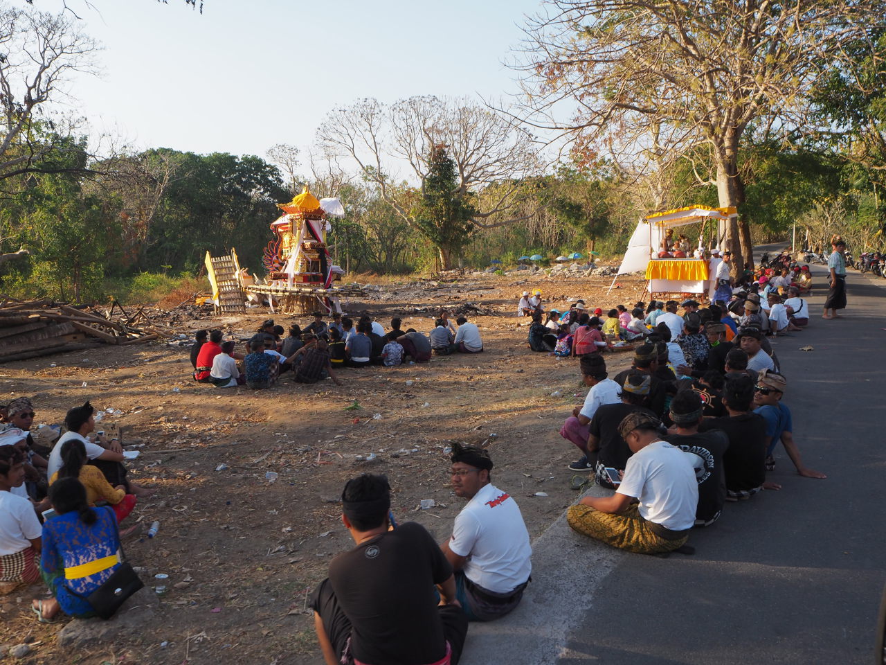 Cérémonies de crémation à Nusa Lembongan. Le « sarcophage » est à gauche sur la photo