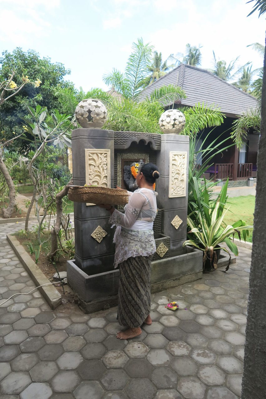 Une femme en train de déposer des offrandes – Nusa Lembongan