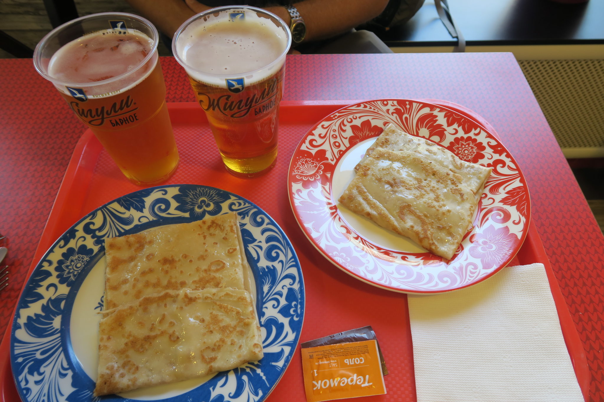 Russie Russie Le ciel menaçant renforce la beauté de la façade du couvent Smolny Vue sur la Neva à Saint Petersbourg Vue sur la Neva et le fort Pierre & Paul – Saint Petersbourg Cathédrale Saint Isaac, derrière le ballon FIFA Cupidon, collection de l’Hermitage – Saint Petersbourg La Cathédrale Saint-Sauveur-sur-le-sang-versé, avec ses domes majestueux Intérieur de la Cathédrale Saint-sauveur-sur-le-sang-versé, tout est mozaïque ! Portrait de Julien au jardin d’été – Saint-Petersbourg Façade du Palais d’hiver, LE musée de Saint Petersbourg Elise devant une Matrioska gonflable géante Cathédrale Saint Nicolas des marins – Saint Petersbourg Les magnifiques fontaines du Palais de Peterhof L’extérieur du palais de Peterhof, déjà rempli de fontaines Les colosses soutenant le nouvel Hermitage Station métro Ovtovo, une des plus belles (selon nous) Le Lapin du pont Saint Jean (Ile aux Lièvres, forteresse Pierre & Paul) Les nombreux mariés de Saint Petersbourg Des blinis et des bières Dumpling russes « Pelménis » Pause dans le parc à Saint Petersbourg Station de métro – Moscou Vendeuse de fleur à la sortie du métro Pirog sucrés Syrnikis, des blinis au fromage blanc (« cottage cheese ») Pirog salés (pains fourrés) Devant la Cathédrale-du-sauveur-sur-le-sang-versé Vitrine de Pirogs sucrés dans un café Petit Selfie sur la place rouge ! Le nom n’est pas lié à la couleur des briques 😉 L’énorme « magasin général » qui borde la place rouge. Surtout des boutiques de luxe