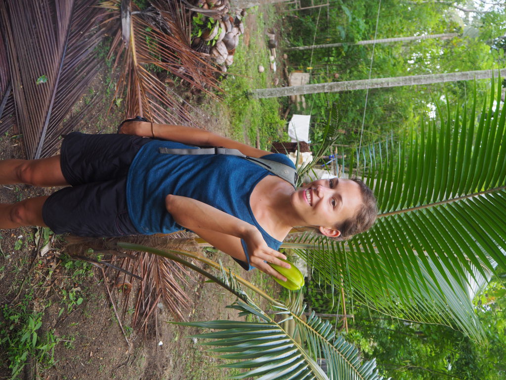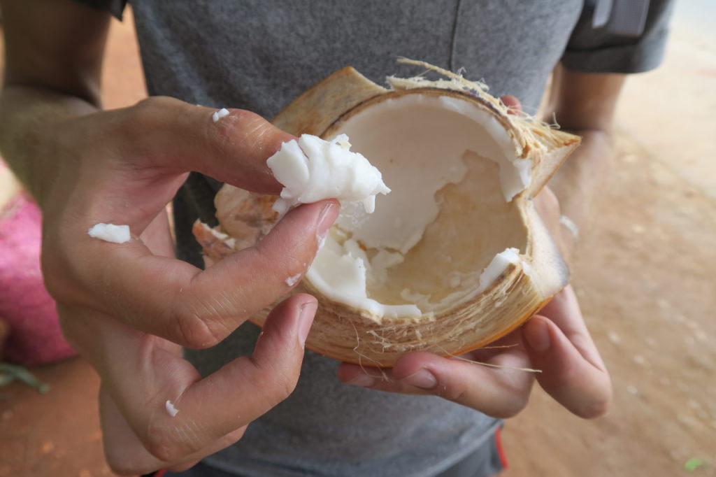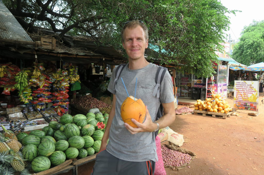 Julien avec une King Coconut prête à être savourée