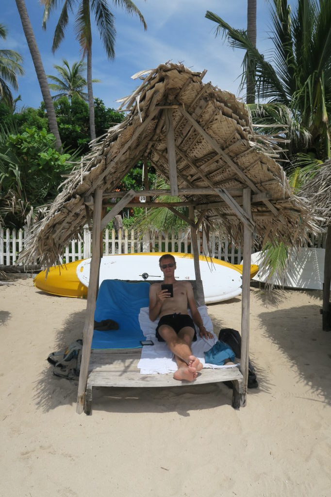 Julien repose ses pieds du sol brulant avec le peu d’ombre disponible…