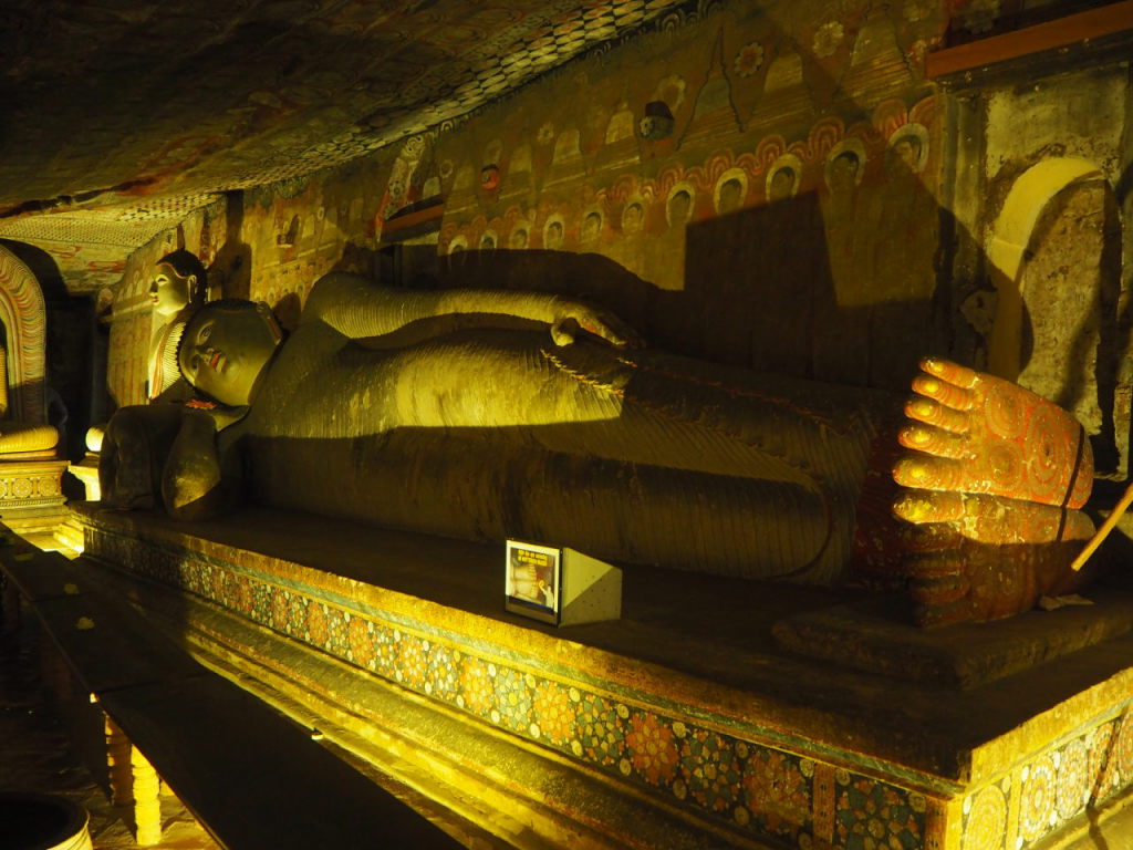 Buddha couché, caves du gold temple