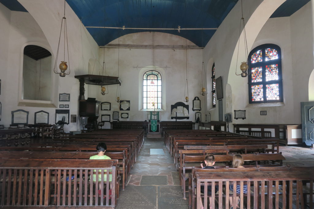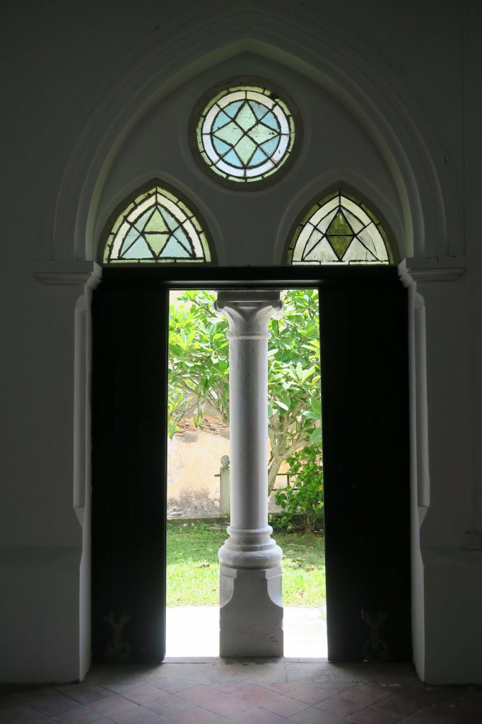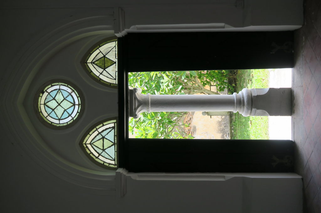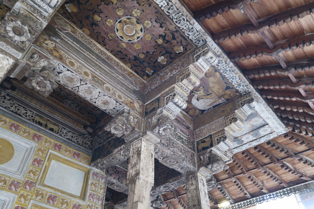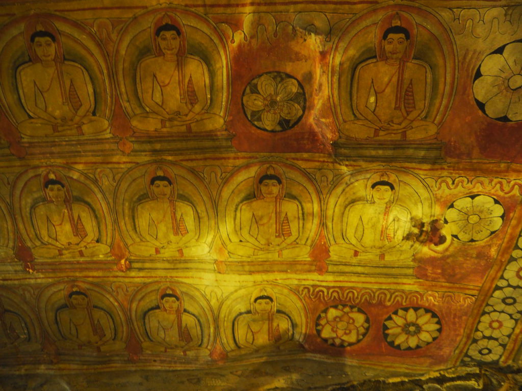 Vue sur le plafond du temple Thuparama ou se tenait un Bouddha géant (mur de droite), dont les yeux de sapphire étaient éclairés par la lucarne d’en face (mur de gauche)