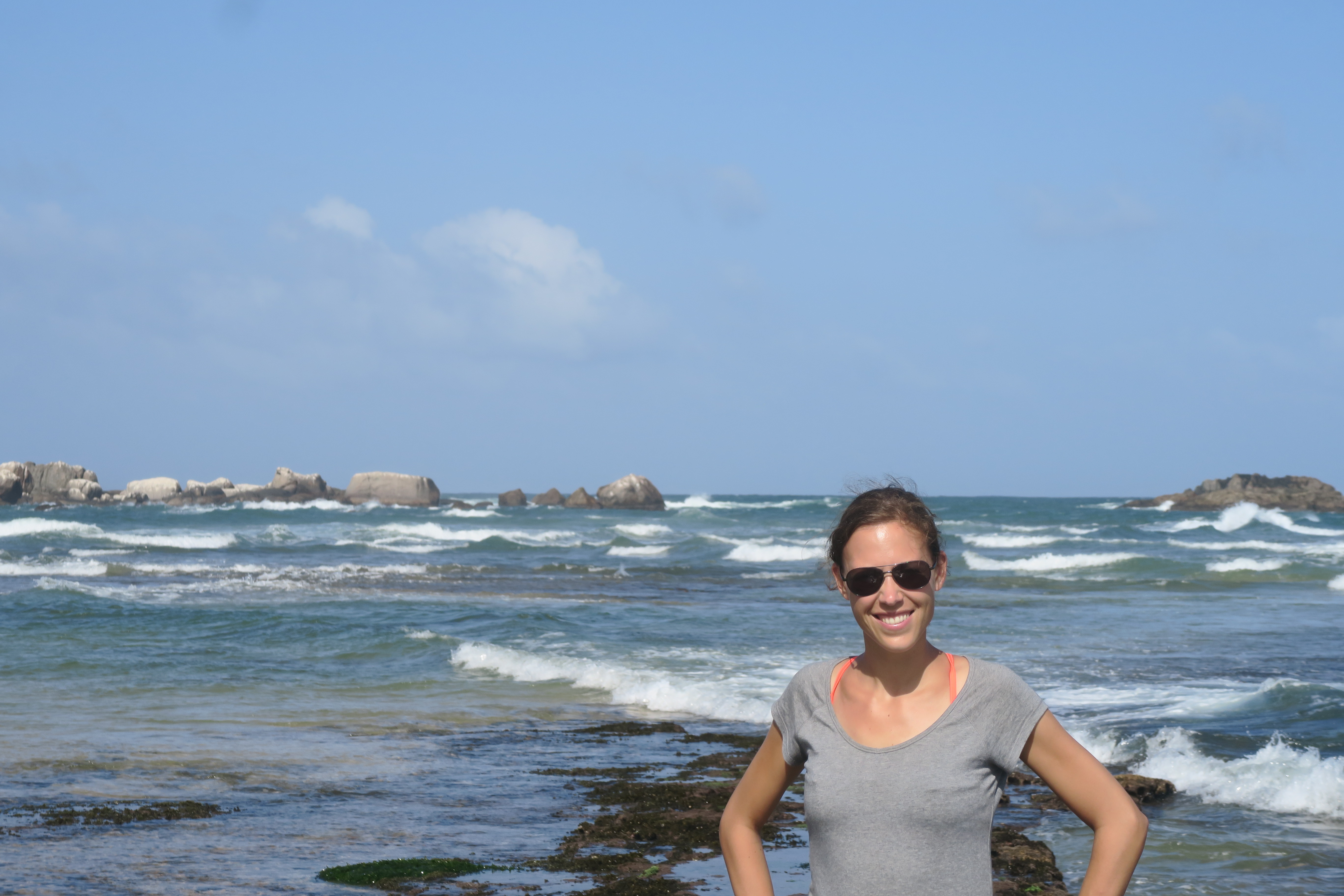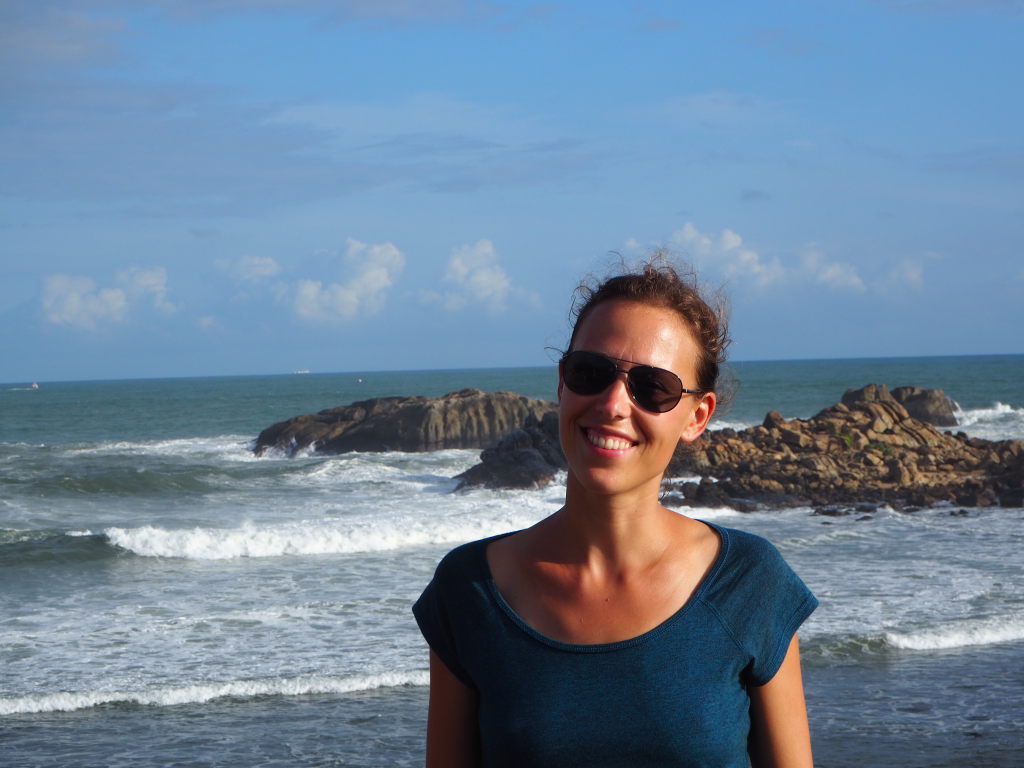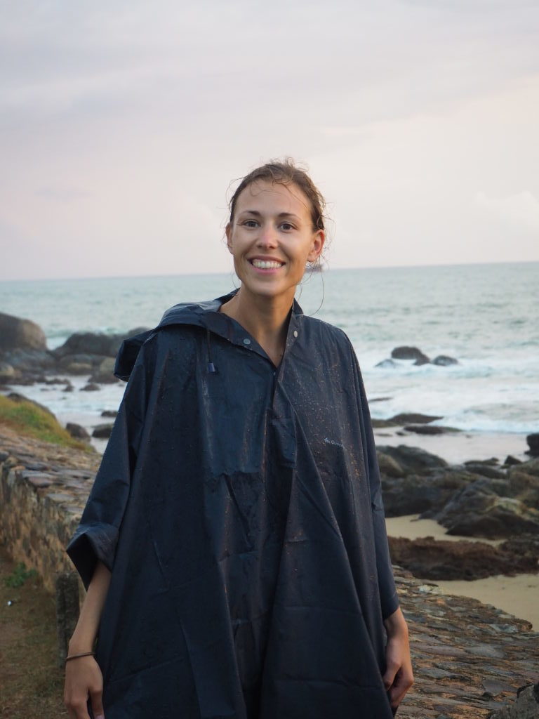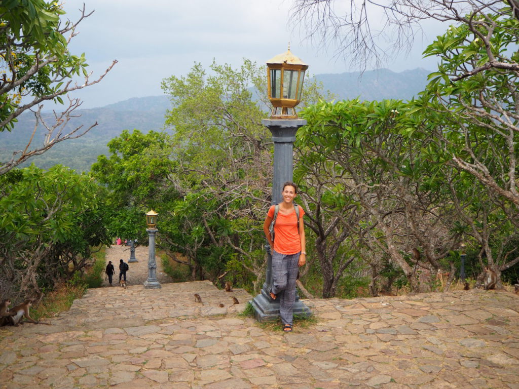 Elise devant la stupa grise du Rankot Vihara