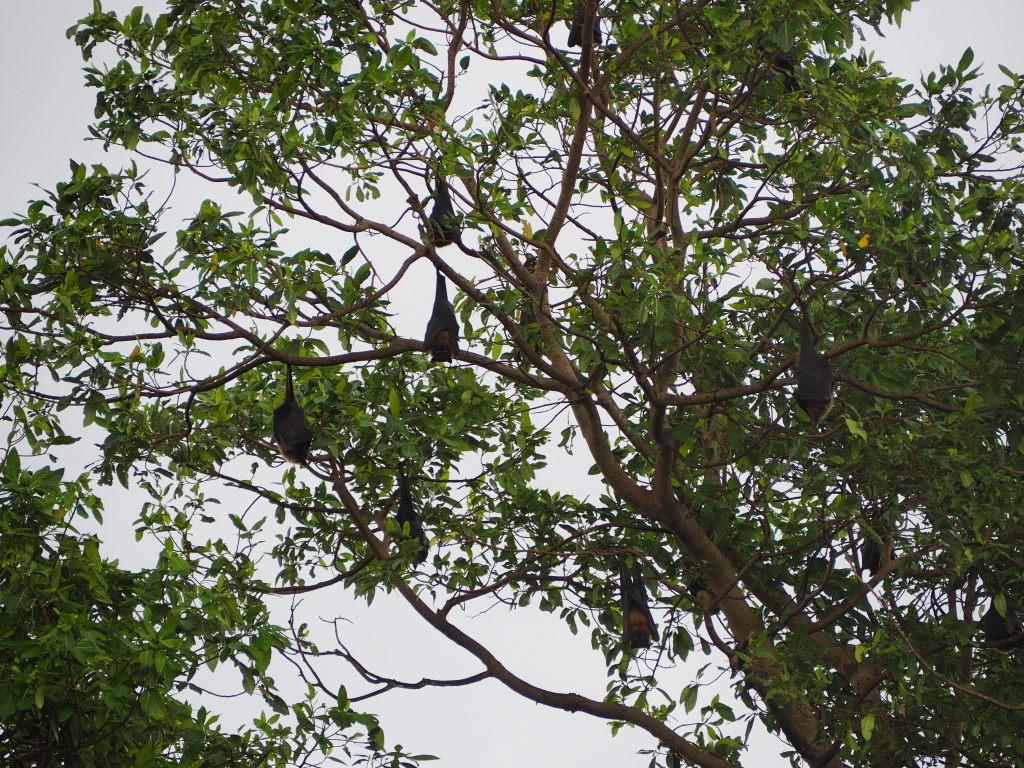 Des chauve-souris, impressionnantes par la taille, dans un arbre en plein jour