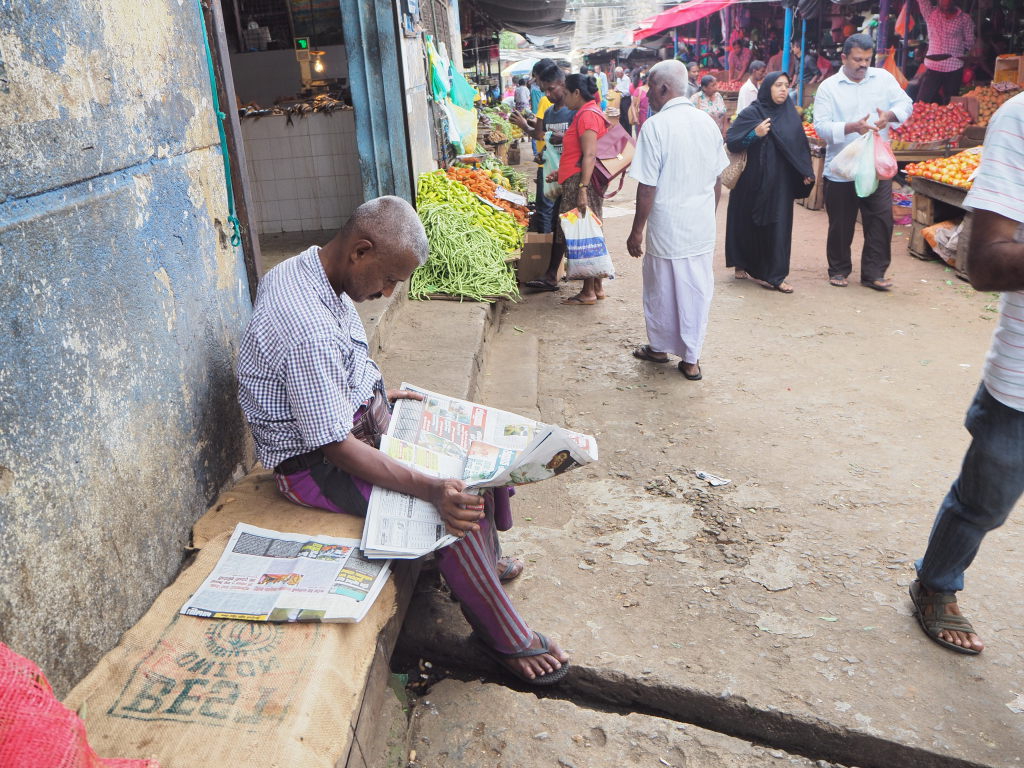 Lecture du journal – Marché de Kandy