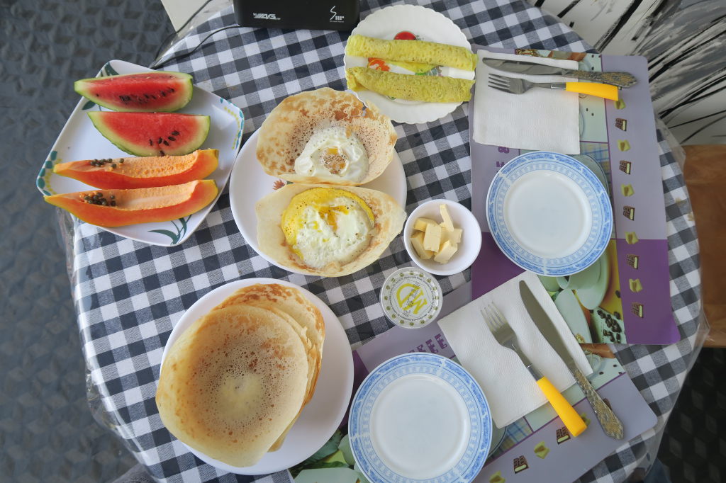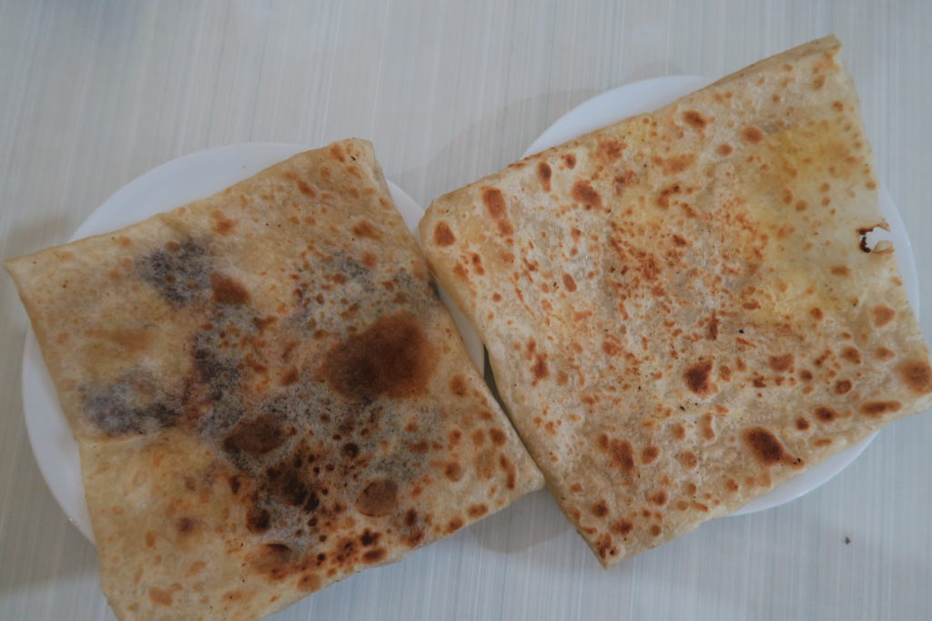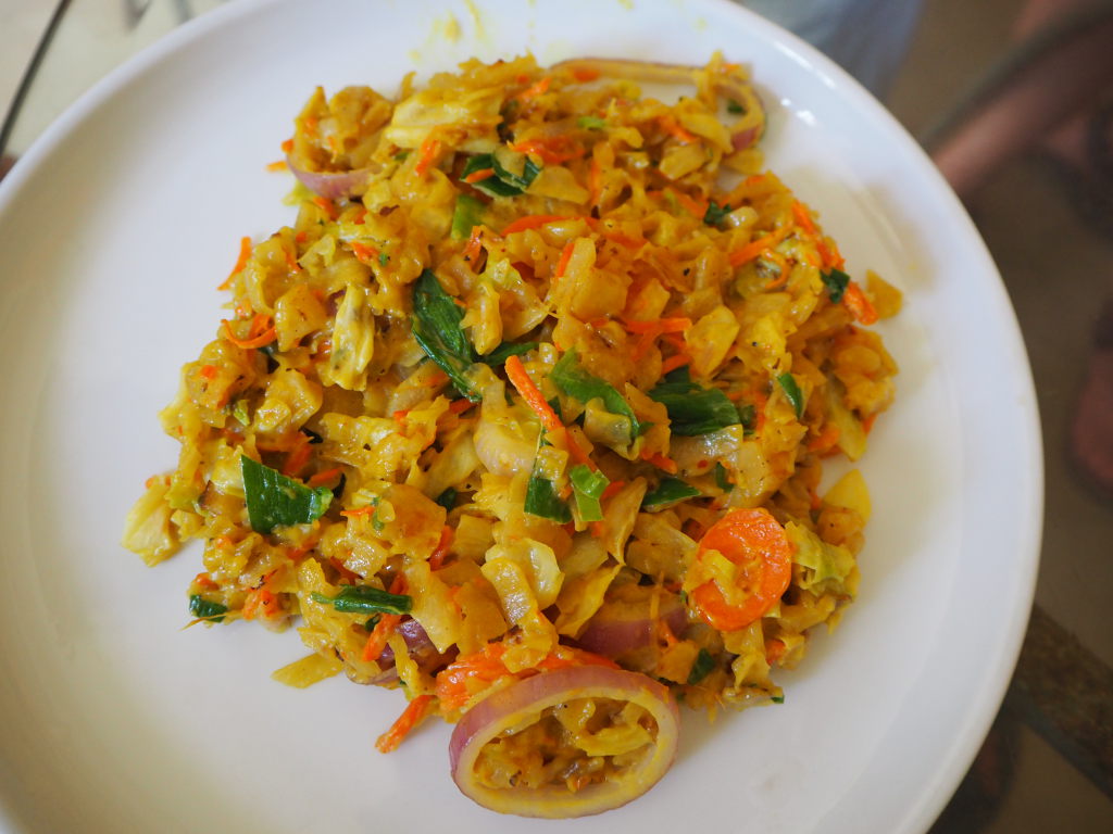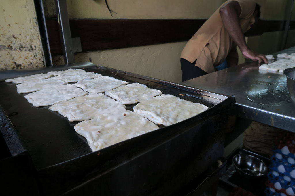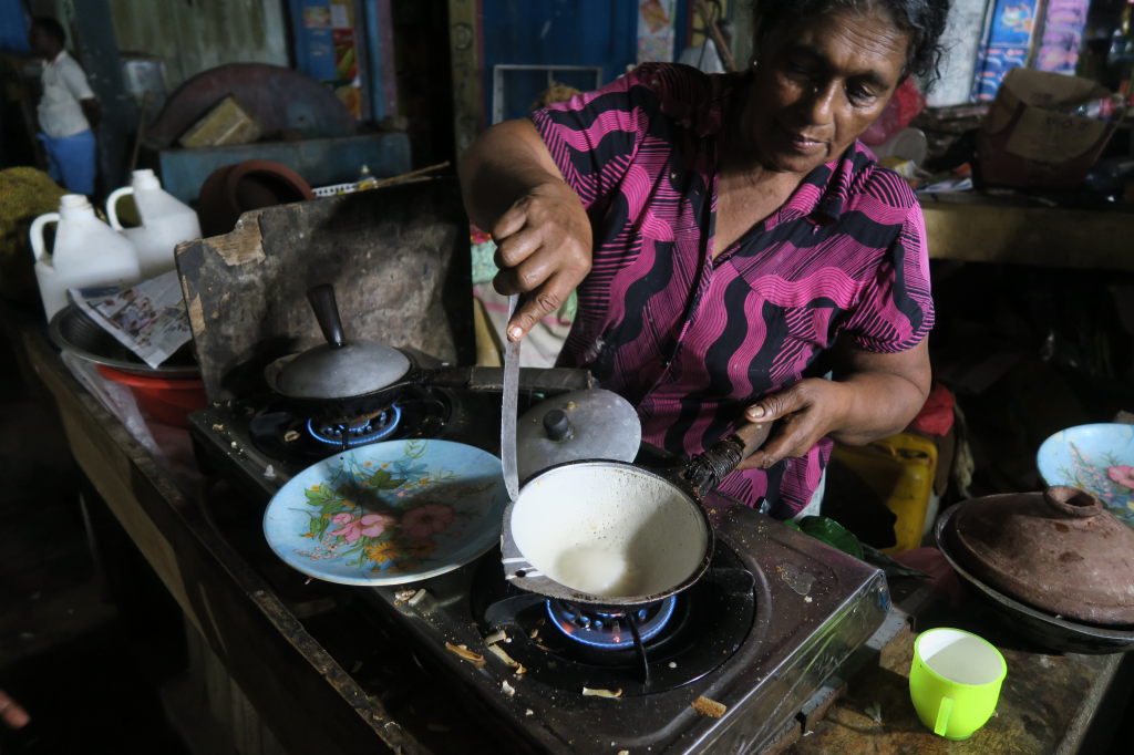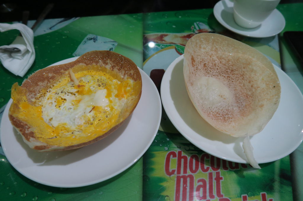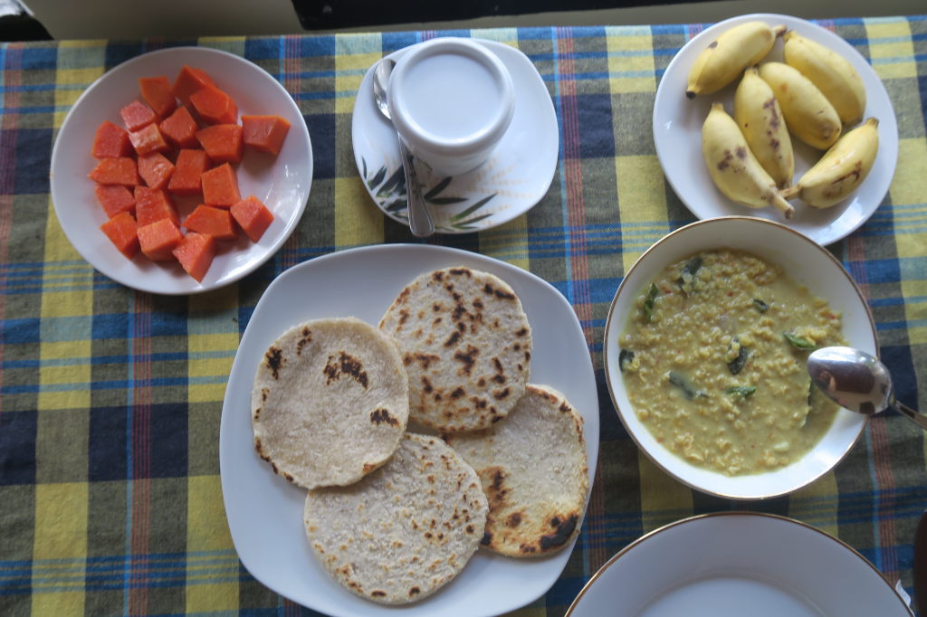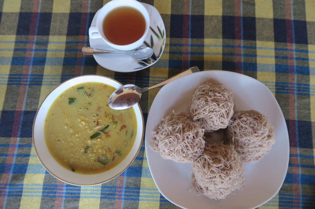 Petit déjeuner à Mirissa : coconut rottis et Curry de Dhal (lentilles), un délice !