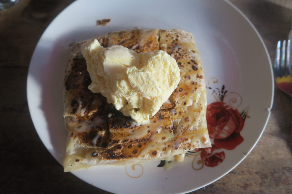Rotti sucré : Bonaffie (banane, chocolat, crumble de gateaux à la noix de coco, et boule de glace vanille)…une tuerie !