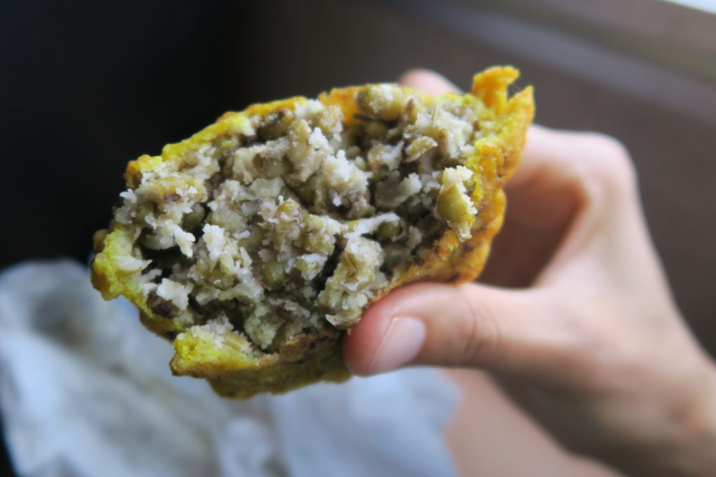 Un samossa avec des lentilles et de la noix de coco