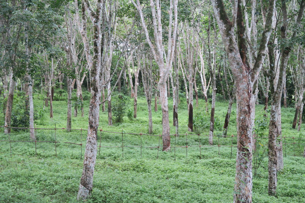 Caoutchoutier dans la plantation de thé