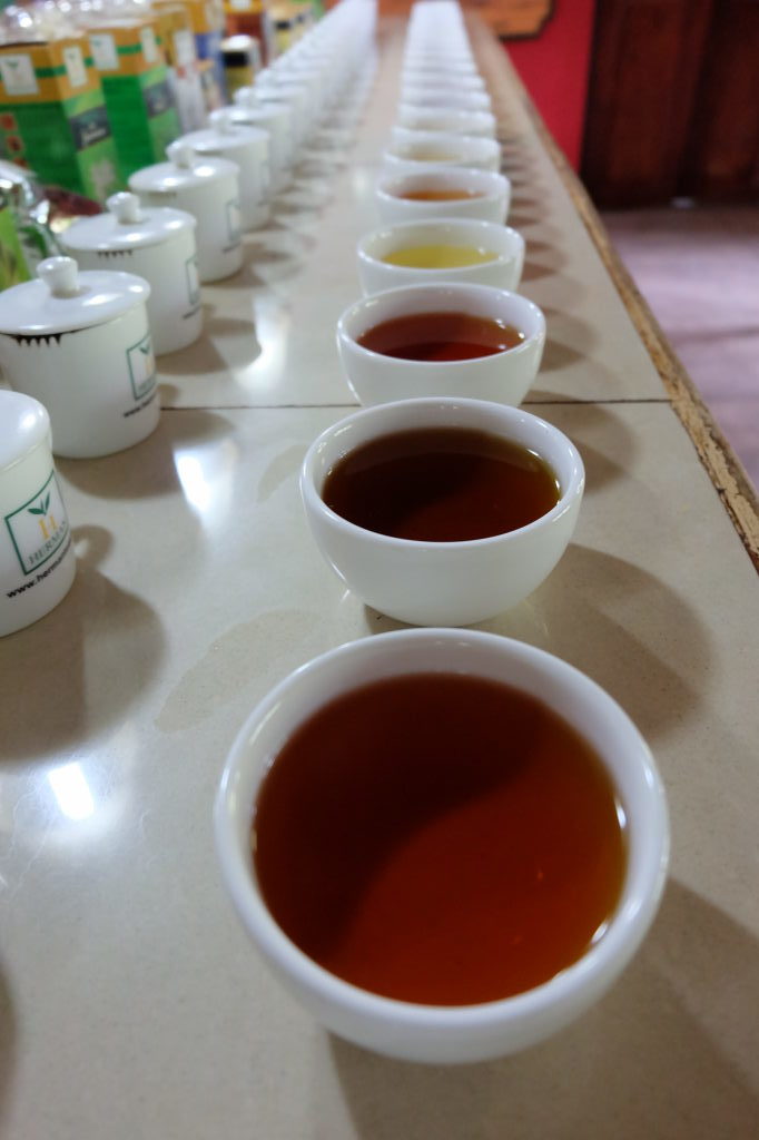 Dégustation de thés : il y en avait 40 sortes ! Du thé blanc au thé fumé (lapsang souchong), en passant par divers mélanges, dont un mélange au brandy !